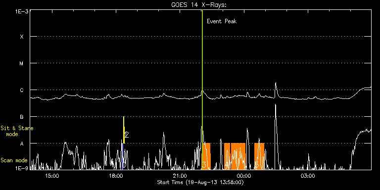 EIS Observation timeline overlay to GOES-Xray curve Code 1" 2" 40" 266" EIS Observations list for this event: STUDY ACRONYM ID DATE OBSERVED DESCRIPTION NOAA# TARGET 0 PRY_slot_contextLITE | 35693 | 2013/08/19 18:16:20 | Change of EIS pointing and alignment w | 1822 | Active Region TIMELINE ID DATE OBSERVED FITS FILE XCEN (+W/-E) YCEN (+N/-S) DUR ----------------------------------------------------------------------------------------------------------------- 35693 | 2013/08/19 18:16:20.000 | eis_l0_20130819_181620.fits.gz | -15.21 | -0.19 | 2m56s 1 Alignment_266 | 35694 | 2013/08/19 18:20:26 | Change of EIS pointing and alignment w | 1822 | Quiet Sun TIMELINE ID DATE OBSERVED FITS FILE XCEN (+W/-E) YCEN (+N/-S) DUR ----------------------------------------------------------------------------------------------------------------- 35694 | 2013/08/19 18:20:26.000 | eis_l0_20130819_182026.fits.gz | -132.57 | -0.35 | 1m22s 2 XRT_synop_AIA | 35695 | 2013/08/19 18:23:39 | Change of EIS pointing and alignment w | 1822 | Quiet Sun TIMELINE ID DATE OBSERVED FITS FILE XCEN (+W/-E) YCEN (+N/-S) DUR ----------------------------------------------------------------------------------------------------------------- 35695 | 2013/08/19 18:23:39.000 | eis_l0_20130819_182339.fits.gz | -132.49 | -0.42 | 11s 3 DRW_Alf_01 | 35703 | 2013/08/19 22:01:19 | Coordinated Observations with Hida Obs | | Active Region TIMELINE ID DATE OBSERVED FITS FILE XCEN (+W/-E) YCEN (+N/-S) DUR ----------------------------------------------------------------------------------------------------------------- 35703 | 2013/08/19 22:01:19.000 | eis_l0_20130819_220119.fits.gz | 793.17 | -159.40 | 1m9s 35703 | 2013/08/19 22:02:31.000 | eis_l0_20130819_220231.fits.gz | 793.25 | -159.24 | 1m8s 35703 | 2013/08/19 22:03:41.000 | eis_l0_20130819_220341.fits.gz | 793.32 | -159.17 | 1m9s 35703 | 2013/08/19 22:04:52.000 | eis_l0_20130819_220452.fits.gz | 793.48 | -159.17 | 1m9s 35703 | 2013/08/19 22:06:04.000 | eis_l0_20130819_220604.fits.gz | 793.48 | -159.32 | 1m8s 35703 | 2013/08/19 22:07:15.000 | eis_l0_20130819_220715.fits.gz | 793.63 | -159.17 | 1m8s 35703 | 2013/08/19 22:08:26.000 | eis_l0_20130819_220826.fits.gz | 793.79 | -159.17 | 1m8s 35703 | 2013/08/19 22:09:37.000 | eis_l0_20130819_220937.fits.gz | 793.94 | -159.32 | 1m9s 35703 | 2013/08/19 22:10:49.000 | eis_l0_20130819_221049.fits.gz | 794.02 | -159.01 | 1m8s 35703 | 2013/08/19 22:12:00.000 | eis_l0_20130819_221200.fits.gz | 794.17 | -159.17 | 1m9s 35703 | 2013/08/19 22:13:11.000 | eis_l0_20130819_221311.fits.gz | 794.17 | -159.24 | 1m9s 35703 | 2013/08/19 22:14:23.000 | eis_l0_20130819_221423.fits.gz | 794.25 | -159.09 | 1m8s 35703 | 2013/08/19 22:15:34.000 | eis_l0_20130819_221534.fits.gz | 794.25 | -159.09 | 1m8s 35703 | 2013/08/19 22:16:45.000 | eis_l0_20130819_221645.fits.gz | 794.41 | -159.17 | 1m9s 35703 | 2013/08/19 22:17:57.000 | eis_l0_20130819_221757.fits.gz | 794.48 | -159.09 | 1m8s 35703 | 2013/08/19 22:19:08.000 | eis_l0_20130819_221908.fits.gz | 794.64 | -159.17 | 1m8s 35703 | 2013/08/19 22:20:19.000 | eis_l0_20130819_222019.fits.gz | 794.71 | -159.01 | 1m8s 35703 | 2013/08/19 22:21:30.000 | eis_l0_20130819_222130.fits.gz | 794.79 | -159.01 | 1m9s 35703 | 2013/08/19 22:22:42.000 | eis_l0_20130819_222242.fits.gz | 794.95 | -159.01 | 1m8s 35703 | 2013/08/19 22:23:53.000 | eis_l0_20130819_222353.fits.gz | 795.02 | -159.01 | 1m8s 35703 | 2013/08/19 22:25:04.000 | eis_l0_20130819_222504.fits.gz | 795.10 | -159.09 | 1m8s 4 DRW_Alf_01 | 35704 | 2013/08/19 23:04:40 | Coordinated Observations with Hida Obs | | Active Region TIMELINE ID DATE OBSERVED FITS FILE XCEN (+W/-E) YCEN (+N/-S) DUR ----------------------------------------------------------------------------------------------------------------- 35704 | 2013/08/19 23:04:40.000 | eis_l0_20130819_230440.fits.gz | 798.27 | -158.39 | 1m8s 35704 | 2013/08/19 23:05:51.000 | eis_l0_20130819_230551.fits.gz | 798.42 | -158.32 | 1m9s 35704 | 2013/08/19 23:07:03.000 | eis_l0_20130819_230703.fits.gz | 798.50 | -158.32 | 1m8s 35704 | 2013/08/19 23:08:14.000 | eis_l0_20130819_230814.fits.gz | 798.73 | -158.39 | 1m8s 35704 | 2013/08/19 23:09:25.000 | eis_l0_20130819_230925.fits.gz | 798.73 | -158.39 | 1m8s 35704 | 2013/08/19 23:10:36.000 | eis_l0_20130819_231036.fits.gz | 798.81 | -158.39 | 1m9s 35704 | 2013/08/19 23:11:47.000 | eis_l0_20130819_231147.fits.gz | 798.96 | -158.32 | 1m9s 35704 | 2013/08/19 23:12:59.000 | eis_l0_20130819_231259.fits.gz | 798.96 | -158.16 | 1m8s 35704 | 2013/08/19 23:14:10.000 | eis_l0_20130819_231410.fits.gz | 799.04 | -158.24 | 1m8s 35704 | 2013/08/19 23:15:21.000 | eis_l0_20130819_231521.fits.gz | 799.19 | -158.24 | 1m8s 35704 | 2013/08/19 23:16:32.000 | eis_l0_20130819_231632.fits.gz | 799.19 | -158.16 | 1m9s 35704 | 2013/08/19 23:17:44.000 | eis_l0_20130819_231744.fits.gz | 799.35 | -158.16 | 1m8s 35704 | 2013/08/19 23:18:55.000 | eis_l0_20130819_231855.fits.gz | 799.50 | -158.16 | 1m8s 35704 | 2013/08/19 23:20:06.000 | eis_l0_20130819_232006.fits.gz | 799.50 | -158.09 | 1m8s 35704 | 2013/08/19 23:23:39.000 | eis_l0_20130819_232339.fits.gz | 799.89 | -158.16 | 1m9s 35704 | 2013/08/19 23:24:50.000 | eis_l0_20130819_232450.fits.gz | 799.97 | -158.01 | 1m9s 35704 | 2013/08/19 23:26:01.000 | eis_l0_20130819_232601.fits.gz | 800.12 | -158.09 | 1m9s 35704 | 2013/08/19 23:27:13.000 | eis_l0_20130819_232713.fits.gz | 800.12 | -157.93 | 1m8s 35704 | 2013/08/19 23:28:24.000 | eis_l0_20130819_232824.fits.gz | 800.35 | -158.01 | 1m8s 35704 | 2013/08/19 23:29:35.000 | eis_l0_20130819_232935.fits.gz | 800.35 | -157.93 | 1m8s 35704 | 2013/08/19 23:30:46.000 | eis_l0_20130819_233046.fits.gz | 800.43 | -157.93 | 1m8s 35704 | 2013/08/19 23:31:57.000 | eis_l0_20130819_233157.fits.gz | 800.51 | -157.93 | 1m8s 35704 | 2013/08/19 23:33:08.000 | eis_l0_20130819_233308.fits.gz | 800.66 | -157.93 | 1m9s 35704 | 2013/08/19 23:34:19.000 | eis_l0_20130819_233419.fits.gz | 800.74 | -157.93 | 1m9s 35704 | 2013/08/19 23:35:31.000 | ei