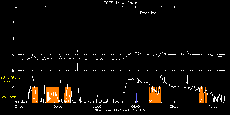 EIS Observation timeline overlay to GOES-Xray curve Code 1" 2" 40" 266" EIS Observations list for this event: STUDY ACRONYM ID DATE OBSERVED DESCRIPTION NOAA# TARGET 0 DRW_Alf_01 | 35703 | 2013/08/19 22:01:19 | Coordinated Observations with Hida Obs | | Active Region TIMELINE ID DATE OBSERVED FITS FILE XCEN (+W/-E) YCEN (+N/-S) DUR ----------------------------------------------------------------------------------------------------------------- 35703 | 2013/08/19 22:01:19.000 | eis_l0_20130819_220119.fits.gz | 793.17 | -159.40 | 1m9s 35703 | 2013/08/19 22:02:31.000 | eis_l0_20130819_220231.fits.gz | 793.25 | -159.24 | 1m8s 35703 | 2013/08/19 22:03:41.000 | eis_l0_20130819_220341.fits.gz | 793.32 | -159.17 | 1m9s 35703 | 2013/08/19 22:04:52.000 | eis_l0_20130819_220452.fits.gz | 793.48 | -159.17 | 1m9s 35703 | 2013/08/19 22:06:04.000 | eis_l0_20130819_220604.fits.gz | 793.48 | -159.32 | 1m8s 35703 | 2013/08/19 22:07:15.000 | eis_l0_20130819_220715.fits.gz | 793.63 | -159.17 | 1m8s 35703 | 2013/08/19 22:08:26.000 | eis_l0_20130819_220826.fits.gz | 793.79 | -159.17 | 1m8s 35703 | 2013/08/19 22:09:37.000 | eis_l0_20130819_220937.fits.gz | 793.94 | -159.32 | 1m9s 35703 | 2013/08/19 22:10:49.000 | eis_l0_20130819_221049.fits.gz | 794.02 | -159.01 | 1m8s 35703 | 2013/08/19 22:12:00.000 | eis_l0_20130819_221200.fits.gz | 794.17 | -159.17 | 1m9s 35703 | 2013/08/19 22:13:11.000 | eis_l0_20130819_221311.fits.gz | 794.17 | -159.24 | 1m9s 35703 | 2013/08/19 22:14:23.000 | eis_l0_20130819_221423.fits.gz | 794.25 | -159.09 | 1m8s 35703 | 2013/08/19 22:15:34.000 | eis_l0_20130819_221534.fits.gz | 794.25 | -159.09 | 1m8s 35703 | 2013/08/19 22:16:45.000 | eis_l0_20130819_221645.fits.gz | 794.41 | -159.17 | 1m9s 35703 | 2013/08/19 22:17:57.000 | eis_l0_20130819_221757.fits.gz | 794.48 | -159.09 | 1m8s 35703 | 2013/08/19 22:19:08.000 | eis_l0_20130819_221908.fits.gz | 794.64 | -159.17 | 1m8s 35703 | 2013/08/19 22:20:19.000 | eis_l0_20130819_222019.fits.gz | 794.71 | -159.01 | 1m8s 35703 | 2013/08/19 22:21:30.000 | eis_l0_20130819_222130.fits.gz | 794.79 | -159.01 | 1m9s 35703 | 2013/08/19 22:22:42.000 | eis_l0_20130819_222242.fits.gz | 794.95 | -159.01 | 1m8s 35703 | 2013/08/19 22:23:53.000 | eis_l0_20130819_222353.fits.gz | 795.02 | -159.01 | 1m8s 35703 | 2013/08/19 22:25:04.000 | eis_l0_20130819_222504.fits.gz | 795.10 | -159.09 | 1m8s 1 DRW_Alf_01 | 35704 | 2013/08/19 23:04:40 | Coordinated Observations with Hida Obs | | Active Region TIMELINE ID DATE OBSERVED FITS FILE XCEN (+W/-E) YCEN (+N/-S) DUR ----------------------------------------------------------------------------------------------------------------- 35704 | 2013/08/19 23:04:40.000 | eis_l0_20130819_230440.fits.gz | 798.27 | -158.39 | 1m8s 35704 | 2013/08/19 23:05:51.000 | eis_l0_20130819_230551.fits.gz | 798.42 | -158.32 | 1m9s 35704 | 2013/08/19 23:07:03.000 | eis_l0_20130819_230703.fits.gz | 798.50 | -158.32 | 1m8s 35704 | 2013/08/19 23:08:14.000 | eis_l0_20130819_230814.fits.gz | 798.73 | -158.39 | 1m8s 35704 | 2013/08/19 23:09:25.000 | eis_l0_20130819_230925.fits.gz | 798.73 | -158.39 | 1m8s 35704 | 2013/08/19 23:10:36.000 | eis_l0_20130819_231036.fits.gz | 798.81 | -158.39 | 1m9s 35704 | 2013/08/19 23:11:47.000 | eis_l0_20130819_231147.fits.gz | 798.96 | -158.32 | 1m9s 35704 | 2013/08/19 23:12:59.000 | eis_l0_20130819_231259.fits.gz | 798.96 | -158.16 | 1m8s 35704 | 2013/08/19 23:14:10.000 | eis_l0_20130819_231410.fits.gz | 799.04 | -158.24 | 1m8s 35704 | 2013/08/19 23:15:21.000 | eis_l0_20130819_231521.fits.gz | 799.19 | -158.24 | 1m8s 35704 | 2013/08/19 23:16:32.000 | eis_l0_20130819_231632.fits.gz | 799.19 | -158.16 | 1m9s 35704 | 2013/08/19 23:17:44.000 | eis_l0_20130819_231744.fits.gz | 799.35 | -158.16 | 1m8s 35704 | 2013/08/19 23:18:55.000 | eis_l0_20130819_231855.fits.gz | 799.50 | -158.16 | 1m8s 35704 | 2013/08/19 23:20:06.000 | eis_l0_20130819_232006.fits.gz | 799.50 | -158.09 | 1m8s 35704 | 2013/08/19 23:23:39.000 | eis_l0_20130819_232339.fits.gz | 799.89 | -158.16 | 1m9s 35704 | 2013/08/19 23:24:50.000 | eis_l0_20130819_232450.fits.gz | 799.97 | -158.01 | 1m9s 35704 | 2013/08/19 23:26:01.000 | eis_l0_20130819_232601.fits.gz | 800.12 | -158.09 | 1m9s 35704 | 2013/08/19 23:27:13.000 | eis_l0_20130819_232713.fits.gz | 800.12 | -157.93 | 1m8s 35704 | 2013/08/19 23:28:24.000 | eis_l0_20130819_232824.fits.gz | 800.35 | -158.01 | 1m8s 35704 | 2013/08/19 23:29:35.000 | eis_l0_20130819_232935.fits.gz | 800.35 | -157.93 | 1m8s 35704 | 2013/08/19 23:30:46.000 | eis_l0_20130819_233046.fits.gz | 800.43 | -157.93 | 1m8s 35704 | 2013/08/19 23:31:57.000 | eis_l0_20130819_233157.fits.gz | 800.51 | -157.93 | 1m8s 35704 | 2013/08/19 23:33:08.000 | eis_l0_20130819_233308.fits.gz | 800.66 | -157.93 | 1m9s 35704 | 2013/08/19 23:34:19.000 | eis_l0_20130819_233419.fits.gz | 800.74 | -157.93 | 1m9s 35704 | 2013/08/19 23:35:31.000 | eis_l0_20130819_233531.fits.gz | 800.82 | -157.93 | 1m8s 35704 | 2013/08/19 23:36:42.000 | eis_l0_20130819_233642.fits.gz | 800.89 | -158.01 | 1m9s 35704 | 2013/08/19 23:37:53.000 | eis_l0_20130819_233753.fits.gz | 801.05 | -157.93 | 1m9s 35704 | 2013/08/19 23:39:05.000 | eis_l0_20130819_233905.fits.gz | 801.12 | -157.85 | 1m8s 35704 | 2013/08/19 23:40:16.000 | eis_l0_20130819_234016.fits.gz | 801.12 | -157.78 | 1m8s 35704 | 2013/08/19 23:41:27.000 | eis_l0_20130819_234127.fits.gz | 801.28 | -157.78 | 1m9s 35704 | 2013/08/19 23:42:39.000 | eis_l0_20130819_234239.fits.gz | 801.43 | -157.78 | 1m8s 35704 | 2013/08/19 23:43:50.000 | eis_l0_20130819_234350.fits.gz | 801.43 | -157.85 | 1m9s 35704 | 2013/08/19 23:45:01.000 | eis_l0_20130819_234501.fits.gz | 801.59 | -157.62 | 1m9s 35704 | 2013/08/19 23:46:12.000 | eis_l0_20130819_234612.fits.gz | 801.67 | -157.78 | 1m9s 35704 | 2013/08/19 23:47:24.000 | eis_l0_20130819_234724.fits.gz | 801.82 | -157.70 | 1m8s 35704 | 2013/08/19 23:48:35.000 | eis_l0_20130819_234835.fits.gz | 801.90 | -157.62 | 1m8s 35704 | 2013/08/19 23:49:46.000 | eis_l0_20130819_234946.fits.gz | 802.05 | -157.62