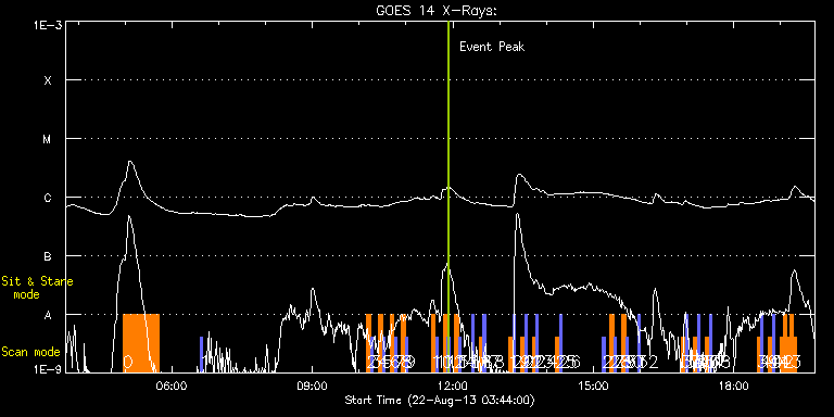EIS Observation timeline overlay to GOES-Xray curve Code 1" 2" 40" 266" EIS Observations list for this event: STUDY ACRONYM ID DATE OBSERVED DESCRIPTION NOAA# TARGET 0 DRW_Alf_01 | 35783 | 2013/08/22 04:57:13 | HOP 128: Corrdinated Observations with | | Active Region TIMELINE ID DATE OBSERVED FITS FILE XCEN (+W/-E) YCEN (+N/-S) DUR ----------------------------------------------------------------------------------------------------------------- 35783 | 2013/08/22 04:57:13.000 | eis_l0_20130822_045713.fits.gz | 175.88 | -249.78 | 1m8s 35783 | 2013/08/22 04:58:24.000 | eis_l0_20130822_045824.fits.gz | 175.96 | -249.78 | 1m9s 35783 | 2013/08/22 04:59:36.000 | eis_l0_20130822_045936.fits.gz | 176.12 | -249.62 | 1m8s 35783 | 2013/08/22 05:00:47.000 | eis_l0_20130822_050047.fits.gz | 176.19 | -249.62 | 1m8s 35783 | 2013/08/22 05:01:58.000 | eis_l0_20130822_050158.fits.gz | 176.42 | -249.62 | 1m8s 35783 | 2013/08/22 05:03:09.000 | eis_l0_20130822_050309.fits.gz | 176.58 | -249.70 | 1m9s 35783 | 2013/08/22 05:04:20.000 | eis_l0_20130822_050420.fits.gz | 176.81 | -249.62 | 1m9s 35783 | 2013/08/22 05:05:32.000 | eis_l0_20130822_050532.fits.gz | 177.12 | -249.78 | 1m8s 35783 | 2013/08/22 05:06:43.000 | eis_l0_20130822_050643.fits.gz | 177.12 | -249.62 | 1m8s 35783 | 2013/08/22 05:07:54.000 | eis_l0_20130822_050754.fits.gz | 177.43 | -249.70 | 1m9s 35783 | 2013/08/22 05:09:05.000 | eis_l0_20130822_050905.fits.gz | 177.58 | -249.62 | 1m9s 35783 | 2013/08/22 05:10:17.000 | eis_l0_20130822_051017.fits.gz | 177.74 | -249.78 | 1m8s 35783 | 2013/08/22 05:11:28.000 | eis_l0_20130822_051128.fits.gz | 177.89 | -249.55 | 1m8s 35783 | 2013/08/22 05:12:39.000 | eis_l0_20130822_051239.fits.gz | 178.12 | -249.70 | 1m8s 35783 | 2013/08/22 05:13:50.000 | eis_l0_20130822_051350.fits.gz | 178.35 | -249.70 | 1m8s 35783 | 2013/08/22 05:15:01.000 | eis_l0_20130822_051501.fits.gz | 178.43 | -249.62 | 1m8s 35783 | 2013/08/22 05:16:12.000 | eis_l0_20130822_051612.fits.gz | 178.59 | -249.78 | 1m9s 35783 | 2013/08/22 05:17:23.000 | eis_l0_20130822_051723.fits.gz | 178.82 | -249.62 | 1m9s 35783 | 2013/08/22 05:18:35.000 | eis_l0_20130822_051835.fits.gz | 178.90 | -249.85 | 1m8s 35783 | 2013/08/22 05:19:46.000 | eis_l0_20130822_051946.fits.gz | 179.13 | -249.55 | 1m8s 35783 | 2013/08/22 05:20:57.000 | eis_l0_20130822_052057.fits.gz | 179.36 | -249.70 | 1m9s 35783 | 2013/08/22 05:22:08.000 | eis_l0_20130822_052208.fits.gz | 179.44 | -249.62 | 1m9s 35783 | 2013/08/22 05:23:19.000 | eis_l0_20130822_052319.fits.gz | 179.74 | -249.78 | 1m9s 35783 | 2013/08/22 05:24:31.000 | eis_l0_20130822_052431.fits.gz | 179.90 | -249.55 | 1m8s 35783 | 2013/08/22 05:25:42.000 | eis_l0_20130822_052542.fits.gz | 179.98 | -249.78 | 1m8s 35783 | 2013/08/22 05:26:53.000 | eis_l0_20130822_052653.fits.gz | 180.13 | -249.62 | 1m9s 35783 | 2013/08/22 05:28:04.000 | eis_l0_20130822_052804.fits.gz | 180.52 | -249.62 | 1m9s 35783 | 2013/08/22 05:29:16.000 | eis_l0_20130822_052916.fits.gz | 180.60 | -249.70 | 1m9s 35783 | 2013/08/22 05:30:27.000 | eis_l0_20130822_053027.fits.gz | 180.75 | -249.70 | 1m9s 35783 | 2013/08/22 05:31:39.000 | eis_l0_20130822_053139.fits.gz | 180.90 | -249.70 | 1m8s 35783 | 2013/08/22 05:32:50.000 | eis_l0_20130822_053250.fits.gz | 181.06 | -249.78 | 1m8s 35783 | 2013/08/22 05:34:01.000 | eis_l0_20130822_053401.fits.gz | 181.29 | -249.70 | 1m8s 35783 | 2013/08/22 05:35:12.000 | eis_l0_20130822_053512.fits.gz | 181.45 | -249.85 | 1m8s 35783 | 2013/08/22 05:36:23.000 | eis_l0_20130822_053623.fits.gz | 181.60 | -249.85 | 1m9s 35783 | 2013/08/22 05:37:34.000 | eis_l0_20130822_053734.fits.gz | 181.75 | -249.85 | 1m9s 35783 | 2013/08/22 05:38:45.000 | eis_l0_20130822_053845.fits.gz | 181.91 | -249.62 | 1m9s 35783 | 2013/08/22 05:39:57.000 | eis_l0_20130822_053957.fits.gz | 182.14 | -249.70 | 1m8s 35783 | 2013/08/22 05:41:08.000 | eis_l0_20130822_054108.fits.gz | 182.29 | -249.70 | 1m8s 35783 | 2013/08/22 05:42:19.000 | eis_l0_20130822_054219.fits.gz | 182.45 | -249.47 | 1m8s 1 PRY_slot_context_v3 | 35799 | 2013/08/22 06:36:19 | EIS Spectral Atlas | 1823 | Active Region TIMELINE ID DATE OBSERVED FITS FILE XCEN (+W/-E) YCEN (+N/-S) DUR ----------------------------------------------------------------------------------------------------------------- 35799 | 2013/08/22 06:36:19.000 | eis_l0_20130822_063619.fits.gz | -15.37 | -0.58 | 2m56s 2 SK_DEEP_10x512_SLIT2 | 35873 | 2013/08/22 10:09:42 | HOP 79 | | Quiet Sun TIMELINE ID DATE OBSERVED FITS FILE XCEN (+W/-E) YCEN (+N/-S) DUR ----------------------------------------------------------------------------------------------------------------- 35873 | 2013/08/22 10:09:42.000 | eis_l0_20130822_100942.fits.gz | -9869.95 | -9963.20 | 5m7s 3 PRY_slot_contextLITE | 35874 | 2013/08/22 10:15:01 | HOP 79 | | Active Region TIMELINE ID DATE OBSERVED FITS FILE XCEN (+W/-E) YCEN (+N/-S) DUR ----------------------------------------------------------------------------------------------------------------- 35874 | 2013/08/22 10:15:01.000 | eis_l0_20130822_101501.fits.gz | -9884.69 | -9963.20 | 2m57s 4 SK_DEEP_10x512_SLIT2 | 35825 | 2013/08/22 10:24:35 | HOP 79 | | Quiet Sun TIMELINE ID DATE OBSERVED FITS FILE XCEN (+W/-E) YCEN (+N/-S) DUR ----------------------------------------------------------------------------------------------------------------- 35825 | 2013/08/22 10:24:35.000 | eis_l0_20130822_102435.fits.gz | -762.52 | 155.23 | 5m7s 5 PRY_slot_contextLITE | 35826 | 2013/08/22 10:29:54 | HOP 79 | 1828 | Active Region TIMELINE ID DATE OBSERVED FITS FILE XCEN (+W/-E) YCEN (+N/-S) DUR ----------------------------------------------------------------------------------------------------------------- 35826 | 2013/08/22 10:29:54.000 | eis_l0_20130822_102954.fits.gz | -777.34 | 155.31 | 2m57s 6 SK_DEEP_10x512_SLIT2 | 35827 | 2013/08/22 10:39:34 | HOP 79 | | Quiet Sun TIMELINE ID DATE OBSERVED FITS FILE XCEN (+W/-E) YCEN (+N/-S) DUR --------------------------------------------------------------------------------------