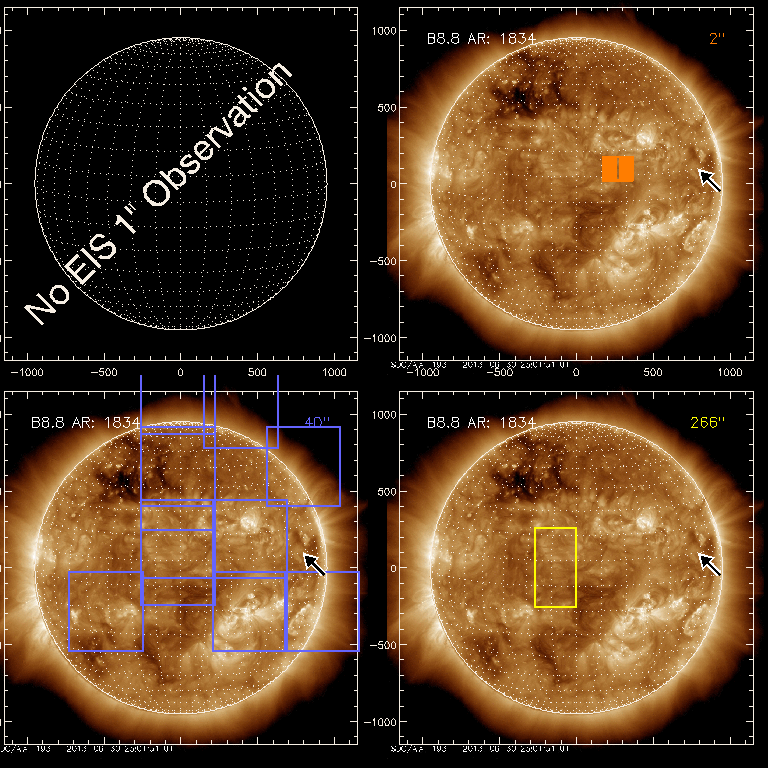 EIS Observation timeline overlay to GOES-Xray curve Code 1" 2" 40" 266" EIS Observations list for this event: STUDY ACRONYM ID DATE OBSERVED DESCRIPTION NOAA# TARGET 0 HH_Flare_162x152 | 36041 | 2013/09/03 07:25:12 | HOP236 - Collaboration with IRIS-SST o | | Flare TIMELINE ID DATE OBSERVED FITS FILE XCEN (+W/-E) YCEN (+N/-S) DUR ----------------------------------------------------------------------------------------------------------------- 36041 | 2013/09/03 07:25:12.000 | eis_l0_20130903_072512.fits.gz | 230.08 | 92.15 | 4m11s 36041 | 2013/09/03 07:29:26.000 | eis_l0_20130903_072926.fits.gz | 230.62 | 92.39 | 4m10s 36041 | 2013/09/03 07:33:39.000 | eis_l0_20130903_073339.fits.gz | 231.31 | 92.31 | 4m11s 36041 | 2013/09/03 07:37:53.000 | eis_l0_20130903_073753.fits.gz | 231.93 | 92.39 | 4m11s 36041 | 2013/09/03 07:42:07.000 | eis_l0_20130903_074207.fits.gz | 232.63 | 92.15 | 4m10s 36041 | 2013/09/03 07:46:20.000 | eis_l0_20130903_074620.fits.gz | 233.09 | 92.39 | 4m10s 36041 | 2013/09/03 07:50:33.000 | eis_l0_20130903_075033.fits.gz | 233.79 | 92.15 | 4m11s 36041 | 2013/09/03 07:54:47.000 | eis_l0_20130903_075447.fits.gz | 234.40 | 92.39 | 4m10s 36041 | 2013/09/03 07:59:00.000 | eis_l0_20130903_075900.fits.gz | 234.94 | 92.39 | 4m11s 36041 | 2013/09/03 08:03:14.000 | eis_l0_20130903_080314.fits.gz | 235.64 | 92.39 | 4m10s 36041 | 2013/09/03 08:07:27.000 | eis_l0_20130903_080727.fits.gz | 236.26 | 92.31 | 4m11s 36041 | 2013/09/03 08:11:40.000 | eis_l0_20130903_081140.fits.gz | 236.88 | 92.31 | 4m11s 36041 | 2013/09/03 08:15:54.000 | eis_l0_20130903_081554.fits.gz | 237.49 | 92.39 | 4m11s 36041 | 2013/09/03 08:20:07.000 | eis_l0_20130903_082007.fits.gz | 238.11 | 92.31 | 4m11s 36041 | 2013/09/03 08:24:20.000 | eis_l0_20130903_082420.fits.gz | 238.73 | 92.39 | 4m11s 1 HH_Flare_162x152 | 36042 | 2013/09/03 09:01:42 | HOP236 - Collaboration with IRIS-SST o | | Flare TIMELINE ID DATE OBSERVED FITS FILE XCEN (+W/-E) YCEN (+N/-S) DUR ----------------------------------------------------------------------------------------------------------------- 36042 | 2013/09/03 09:01:42.000 | eis_l0_20130903_090142.fits.gz | 244.21 | 92.54 | 4m11s 36042 | 2013/09/03 09:05:55.000 | eis_l0_20130903_090555.fits.gz | 244.75 | 92.62 | 4m11s 36042 | 2013/09/03 09:10:09.000 | eis_l0_20130903_091009.fits.gz | 245.37 | 92.77 | 4m11s 36042 | 2013/09/03 09:14:22.000 | eis_l0_20130903_091422.fits.gz | 245.99 | 92.85 | 4m11s 2 HH_Flare_162x152 | 36081 | 2013/09/03 10:53:14 | HOP236 - Collaboration with IRIS-SST o | | Flare TIMELINE ID DATE OBSERVED FITS FILE XCEN (+W/-E) YCEN (+N/-S) DUR ----------------------------------------------------------------------------------------------------------------- 36081 | 2013/09/03 10:53:14.000 | eis_l0_20130903_105314.fits.gz | 251.82 | 92.19 | 4m11s 36081 | 2013/09/03 10:57:28.000 | eis_l0_20130903_105728.fits.gz | 252.44 | 92.19 | 4m10s 36081 | 2013/09/03 11:01:41.000 | eis_l0_20130903_110141.fits.gz | 253.05 | 92.19 | 4m11s 36081 | 2013/09/03 11:10:08.000 | eis_l0_20130903_111008.fits.gz | 254.37 | 92.50 | 4m11s 36081 | 2013/09/03 11:14:21.000 | eis_l0_20130903_111421.fits.gz | 254.91 | 92.27 | 4m11s 36081 | 2013/09/03 11:18:35.000 | eis_l0_20130903_111835.fits.gz | 255.60 | 92.19 | 4m10s 36081 | 2013/09/03 11:22:48.000 | eis_l0_20130903_112248.fits.gz | 256.14 | 92.27 | 4m11s 36081 | 2013/09/03 11:27:02.000 | eis_l0_20130903_112702.fits.gz | 256.76 | 92.27 | 4m10s 36081 | 2013/09/03 11:31:15.000 | eis_l0_20130903_113115.fits.gz | 257.38 | 92.42 | 4m10s 36081 | 2013/09/03 11:35:28.000 | eis_l0_20130903_113528.fits.gz | 258.00 | 92.42 | 4m11s 36081 | 2013/09/03 11:39:42.000 | eis_l0_20130903_113942.fits.gz | 258.69 | 92.34 | 4m11s 36081 | 2013/09/03 11:48:09.000 | eis_l0_20130903_114809.fits.gz | 259.85 | 92.42 | 4m10s 36081 | 2013/09/03 11:52:22.000 | eis_l0_20130903_115222.fits.gz | 260.39 | 92.58 | 4m11s 36081 | 2013/09/03 11:56:35.000 | eis_l0_20130903_115635.fits.gz | 261.09 | 92.50 | 4m11s 36081 | 2013/09/03 12:00:49.000 | eis_l0_20130903_120049.fits.gz | 261.71 | 92.58 | 4m11s 36081 | 2013/09/03 12:13:18.000 | eis_l0_20130903_121318.fits.gz | 263.48 | 92.73 | 8s 36081 | 2013/09/03 12:13:29.000 | eis_l0_20130903_121329.fits.gz | 263.48 | 92.73 | 4m10s 36081 | 2013/09/03 12:21:55.000 | eis_l0_20130903_122155.fits.gz | 264.72 | 92.81 | 4m11s 36081 | 2013/09/03 12:26:09.000 | eis_l0_20130903_122609.fits.gz | 265.26 | 92.73 | 12s 36081 | 2013/09/03 12:34:11.000 | eis_l0_20130903_123411.fits.gz | 266.57 | 92.81 | 22s 36081 | 2013/09/03 12:34:36.000 | eis_l0_20130903_123436.fits.gz | 266.57 | 92.73 | 4m10s 36081 | 2013/09/03 12:38:49.000 | eis_l0_20130903_123849.fits.gz | 267.11 | 92.81 | 4m11s 36081 | 2013/09/03 12:43:03.000 | eis_l0_20130903_124303.fits.gz | 267.81 | 92.73 | 4m10s 36081 | 2013/09/03 12:47:16.000 | eis_l0_20130903_124716.fits.gz | 268.43 | 92.81 | 4m10s 36081 | 2013/09/03 12:51:29.000 | eis_l0_20130903_125129.fits.gz | 269.05 | 92.73 | 4m11s 36081 | 2013/09/03 13:04:10.000 | eis_l0_20130903_130410.fits.gz | 270.90 | 92.89 | 4m10s 36081 | 2013/09/03 13:08:23.000 | eis_l0_20130903_130823.fits.gz | 271.52 | 92.89 | 4m11s 36081 | 2013/09/03 13:12:36.000 | eis_l0_20130903_131236.fits.gz | 272.14 | 92.89 | 4m11s 36081 | 2013/09/03 13:16:50.000 | eis_l0_20130903_131650.fits.gz | 272.68 | 93.04 | 4m10s 36081 | 2013/09/03 13:21:03.000 | eis_l0_20130903_132103.fits.gz | 273.29 | 92.96 | 4m11s 36081 | 2013/09/03 13:25:16.000 | eis_l0_20130903_132516.fits.gz | 273.99 | 92.96 | 4m11s 36081 | 2013/09/03 13:29:30.000 | eis_l0_20130903_132930.fits.gz | 274.53 | 93.04 | 4m11s 36081 | 2013/09/03 13:33:44.000 | eis_l0_20130903_133344.fits.gz | 275.07 | 93.12 | 4m10s 36081 | 2013/09/03 13:37:57.000 | eis_l0_20130903_133757.fits.gz | 275.69 | 93.12 | 4m10s 36081 | 2013/09/03 13:42:10.000 | eis_l0_20130903_134210.fits.gz | 276.38 | 93.04 | 4m11s 3 HH_Flare_162x152 | 36082 | 2013/09/03 14:17:43 | HOP236 - Collaboration with IRIS-SST o | | Flare TIMELINE ID DATE OBSERVED FITS FILE XCEN 
