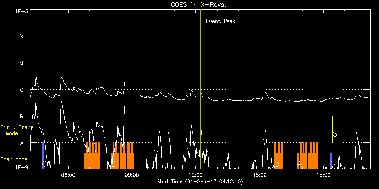 EIS Observation timeline overlay to GOES-Xray curve Code 1" 2" 40" 266" EIS Observations list for this event: STUDY ACRONYM ID DATE OBSERVED DESCRIPTION NOAA# TARGET 0 PRY_slot_context_v3 | 36095 | 2013/09/04 04:47:20 | Spectral Atlas Synoptic Program - QS | 1837 | Active Region TIMELINE ID DATE OBSERVED FITS FILE XCEN (+W/-E) YCEN (+N/-S) DUR ----------------------------------------------------------------------------------------------------------------- 36095 | 2013/09/04 04:47:20.000 | eis_l0_20130904_044720.fits.gz | 340.84 | -180.29 | 2m56s 1 HH_Flare_162x152 | 36080 | 2013/09/04 06:46:57 | HOP236 - Collaboration with IRIS-SST o | 1836 | Flare TIMELINE ID DATE OBSERVED FITS FILE XCEN (+W/-E) YCEN (+N/-S) DUR ----------------------------------------------------------------------------------------------------------------- 36080 | 2013/09/04 06:46:57.000 | eis_l0_20130904_064657.fits.gz | 420.06 | 99.91 | 4m11s 36080 | 2013/09/04 06:51:11.000 | eis_l0_20130904_065111.fits.gz | 420.68 | 99.84 | 4m10s 36080 | 2013/09/04 06:55:24.000 | eis_l0_20130904_065524.fits.gz | 421.30 | 99.99 | 4m10s 36080 | 2013/09/04 06:59:37.000 | eis_l0_20130904_065937.fits.gz | 421.84 | 99.91 | 4m11s 36080 | 2013/09/04 07:03:51.000 | eis_l0_20130904_070351.fits.gz | 422.38 | 99.99 | 4m11s 36080 | 2013/09/04 07:08:04.000 | eis_l0_20130904_070804.fits.gz | 423.00 | 100.15 | 4m11s 36080 | 2013/09/04 07:12:18.000 | eis_l0_20130904_071218.fits.gz | 423.46 | 100.22 | 4m11s 36080 | 2013/09/04 07:16:32.000 | eis_l0_20130904_071632.fits.gz | 424.16 | 100.38 | 4m11s 36080 | 2013/09/04 07:20:45.000 | eis_l0_20130904_072045.fits.gz | 424.70 | 100.22 | 4m11s 36080 | 2013/09/04 07:24:59.000 | eis_l0_20130904_072459.fits.gz | 425.24 | 100.15 | 4m10s 2 HH_Flare_162x152 | 36085 | 2013/09/04 08:01:43 | HOP236 - Collaboration with IRIS-SST o | 1836 | Flare TIMELINE ID DATE OBSERVED FITS FILE XCEN (+W/-E) YCEN (+N/-S) DUR ----------------------------------------------------------------------------------------------------------------- 36085 | 2013/09/04 08:01:43.000 | eis_l0_20130904_080143.fits.gz | 430.18 | 100.53 | 4m11s 36085 | 2013/09/04 08:05:56.000 | eis_l0_20130904_080556.fits.gz | 430.72 | 100.61 | 4m11s 36085 | 2013/09/04 08:10:09.000 | eis_l0_20130904_081009.fits.gz | 431.27 | 100.76 | 4m11s 36085 | 2013/09/04 08:14:23.000 | eis_l0_20130904_081423.fits.gz | 431.88 | 100.69 | 4m11s 36085 | 2013/09/04 08:18:36.000 | eis_l0_20130904_081836.fits.gz | 432.50 | 100.69 | 4m11s 36085 | 2013/09/04 08:27:03.000 | eis_l0_20130904_082703.fits.gz | 433.66 | 100.84 | 4m11s 36085 | 2013/09/04 08:31:17.000 | eis_l0_20130904_083117.fits.gz | 434.20 | 100.84 | 4m10s 36085 | 2013/09/04 08:35:30.000 | eis_l0_20130904_083530.fits.gz | 434.74 | 100.84 | 4m11s 36085 | 2013/09/04 08:39:43.000 | eis_l0_20130904_083943.fits.gz | 435.20 | 100.92 | 4m11s 36085 | 2013/09/04 08:48:10.000 | eis_l0_20130904_084810.fits.gz | 436.36 | 101.07 | 4m11s 36085 | 2013/09/04 08:52:24.000 | eis_l0_20130904_085224.fits.gz | 436.98 | 101.00 | 4m10s 36085 | 2013/09/04 08:56:37.000 | eis_l0_20130904_085637.fits.gz | 437.52 | 101.15 | 4m11s 36085 | 2013/09/04 09:00:50.000 | eis_l0_20130904_090050.fits.gz | 438.06 | 101.07 | 4m11s 3 HH_Flare_162x152 | 36072 | 2013/09/04 15:42:41 | HOP236 - Collaboration with IRIS on AR | | Flare TIMELINE ID DATE OBSERVED FITS FILE XCEN (+W/-E) YCEN (+N/-S) DUR ----------------------------------------------------------------------------------------------------------------- 36072 | 2013/09/04 15:42:41.000 | eis_l0_20130904_154241.fits.gz | 502.85 | 78.50 | 4m11s 36072 | 2013/09/04 15:46:55.000 | eis_l0_20130904_154655.fits.gz | 503.31 | 78.58 | 4m10s 36072 | 2013/09/04 15:51:08.000 | eis_l0_20130904_155108.fits.gz | 503.85 | 78.65 | 4m11s 36072 | 2013/09/04 15:55:22.000 | eis_l0_20130904_155522.fits.gz | 504.55 | 78.58 | 4m10s 36072 | 2013/09/04 15:59:35.000 | eis_l0_20130904_155935.fits.gz | 505.01 | 78.65 | 4m11s 4 HH_Flare_162x152 | 36086 | 2013/09/04 16:44:14 | HOP236 - Collaboration with IRIS on AR | | Flare TIMELINE ID DATE OBSERVED FITS FILE XCEN (+W/-E) YCEN (+N/-S) DUR ----------------------------------------------------------------------------------------------------------------- 36086 | 2013/09/04 16:44:14.000 | eis_l0_20130904_164414.fits.gz | 510.73 | 79.12 | 4m10s 36086 | 2013/09/04 16:52:40.000 | eis_l0_20130904_165240.fits.gz | 511.81 | 79.20 | 4m11s 36086 | 2013/09/04 16:56:54.000 | eis_l0_20130904_165654.fits.gz | 512.35 | 79.20 | 4m11s 36086 | 2013/09/04 17:01:07.000 | eis_l0_20130904_170107.fits.gz | 512.89 | 79.35 | 4m11s 36086 | 2013/09/04 17:05:21.000 | eis_l0_20130904_170521.fits.gz | 513.35 | 79.35 | 4m10s 36086 | 2013/09/04 17:09:34.000 | eis_l0_20130904_170934.fits.gz | 513.97 | 79.50 | 4m11s 36086 | 2013/09/04 17:18:01.000 | eis_l0_20130904_171801.fits.gz | 515.13 | 79.58 | 4m11s 36086 | 2013/09/04 17:22:14.000 | eis_l0_20130904_172214.fits.gz | 515.67 | 79.50 | 4m11s 36086 | 2013/09/04 17:26:28.000 | eis_l0_20130904_172628.fits.gz | 516.14 | 79.66 | 4m11s 36086 | 2013/09/04 17:30:41.000 | eis_l0_20130904_173041.fits.gz | 516.75 | 79.66 | 4m11s 36086 | 2013/09/04 17:34:55.000 | eis_l0_20130904_173455.fits.gz | 517.22 | 79.81 | 4m11s 36086 | 2013/09/04 17:39:09.000 | eis_l0_20130904_173909.fits.gz | 517.76 | 79.74 | 4m10s 5 PRY_slot_contextLITE | 36077 | 2013/09/04 18:18:51 | EIS-AIA alignment | | Active Region TIMELINE ID DATE OBSERVED FITS FILE XCEN (+W/-E) YCEN (+N/-S) DUR ----------------------------------------------------------------------------------------------------------------- 36077 | 2013/09/04 18:18:51.000 | eis_l0_20130904_181851.fits.gz | -15.29 | -0.50 | 2m57s 6 XRT_synop_AIA | 36079 | 2013/09/04 18:24:13 | EIS-AIA alignment | | Quiet Sun TIMELINE ID DATE OBSERVED FITS FILE XCEN (+W/-E) YCEN (+N/-S) DUR ----------------------------------------------------------------------------------------------------------------- 36079 | 2013/09/04 18:24:13.000 | eis_l0_20130904_182413.fits.gz | -132.64 | -0