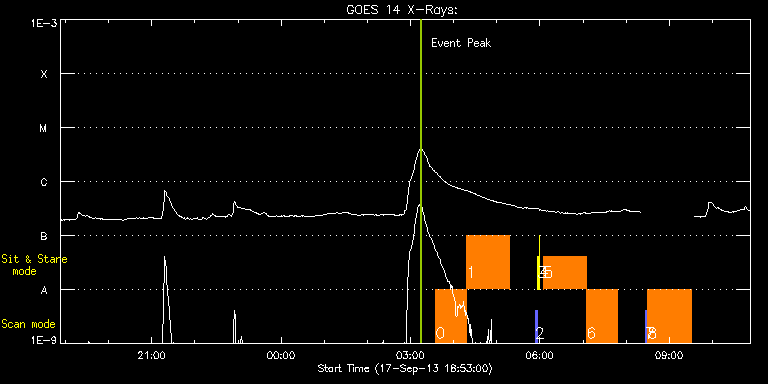 EIS Observation timeline overlay to GOES-Xray curve Code 1" 2" 40" 266" EIS Observations list for this event: STUDY ACRONYM ID DATE OBSERVED DESCRIPTION NOAA# TARGET 0 eis_tornadoes_scan | 36307 | 2013/09/18 03:34:50 | HOP237 spectroscopic study of magnetic | | Filament TIMELINE ID DATE OBSERVED FITS FILE XCEN (+W/-E) YCEN (+N/-S) DUR ----------------------------------------------------------------------------------------------------------------- 36307 | 2013/09/18 03:34:50.000 | eis_l0_20130918_033450.fits.gz | 857.94 | 364.24 | 43m2s 1 eis_tornadoes_sns | 36308 | 2013/09/18 04:17:57 | HOP237 spectroscopic study of magnetic | | Filament TIMELINE ID DATE OBSERVED FITS FILE XCEN (+W/-E) YCEN (+N/-S) DUR ----------------------------------------------------------------------------------------------------------------- 36308 | 2013/09/18 04:17:57.000 | eis_l0_20130918_041757.fits.gz | 869.16 | 364.94 | 59m52s 2 PRY_slot_contextLITE | 36258 | 2013/09/18 05:53:20 | EIS pointing and alignment | 1841 | Active Region TIMELINE ID DATE OBSERVED FITS FILE XCEN (+W/-E) YCEN (+N/-S) DUR ----------------------------------------------------------------------------------------------------------------- 36258 | 2013/09/18 05:53:20.000 | eis_l0_20130918_055320.fits.gz | -15.37 | -0.50 | 2m56s 3 Alignment_266 | 36259 | 2013/09/18 05:56:35 | EIS pointing and alignment | 1843 | Quiet Sun TIMELINE ID DATE OBSERVED FITS FILE XCEN (+W/-E) YCEN (+N/-S) DUR ----------------------------------------------------------------------------------------------------------------- 36259 | 2013/09/18 05:56:35.000 | eis_l0_20130918_055635.fits.gz | -132.57 | -0.50 | 1m22s 4 XRT_synop_AIA | 36260 | 2013/09/18 05:59:09 | EIS pointing and alignment | 1843 | Quiet Sun TIMELINE ID DATE OBSERVED FITS FILE XCEN (+W/-E) YCEN (+N/-S) DUR ----------------------------------------------------------------------------------------------------------------- 36260 | 2013/09/18 05:59:09.000 | eis_l0_20130918_055909.fits.gz | -132.57 | -0.42 | 10s 5 eis_tornadoes_sns | 36321 | 2013/09/18 06:05:20 | HOP237 spectroscopic study of magnetic | | Filament TIMELINE ID DATE OBSERVED FITS FILE XCEN (+W/-E) YCEN (+N/-S) DUR ----------------------------------------------------------------------------------------------------------------- 36321 | 2013/09/18 06:05:20.000 | eis_l0_20130918_060520.fits.gz | 864.03 | 366.95 | 59m52s 6 eis_tornadoes_scan | 36322 | 2013/09/18 07:05:17 | HOP237 spectroscopic study of magnetic | | Filament TIMELINE ID DATE OBSERVED FITS FILE XCEN (+W/-E) YCEN (+N/-S) DUR ----------------------------------------------------------------------------------------------------------------- 36322 | 2013/09/18 07:05:17.000 | eis_l0_20130918_070517.fits.gz | 873.49 | 367.80 | 43m3s 7 PRY_slot_context_v3 | 36317 | 2013/09/18 08:26:20 | HOP236 SST/IRIS/Hinode campaign | 1841 | Active Region TIMELINE ID DATE OBSERVED FITS FILE XCEN (+W/-E) YCEN (+N/-S) DUR ----------------------------------------------------------------------------------------------------------------- 36317 | 2013/09/18 08:26:20.000 | eis_l0_20130918_082620.fits.gz | -21.03 | 19.37 | 2m56s 8 Atlas_60 | 36318 | 2013/09/18 08:29:41 | HOP236 SST/IRIS/Hinode campaign | | Quiet Sun TIMELINE ID DATE OBSERVED FITS FILE XCEN (+W/-E) YCEN (+N/-S) DUR ----------------------------------------------------------------------------------------------------------------- 36318 | 2013/09/18 08:29:41.000 | eis_l0_20130918_082941.fits.gz | -6.21 | 19.45 | 1h1m40s : Check study information : Download file : View thumbnails For this event, also check for: