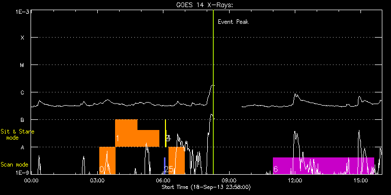 EIS Observation timeline overlay to GOES-Xray curve Code 1" 2" 40" 266" EIS Observations list for this event: STUDY ACRONYM ID DATE OBSERVED DESCRIPTION NOAA# TARGET 0 eis_tornadoes_scan | 36311 | 2013/09/19 03:05:33 | HOP237 spectroscopic study of magnetic | | Filament TIMELINE ID DATE OBSERVED FITS FILE XCEN (+W/-E) YCEN (+N/-S) DUR ----------------------------------------------------------------------------------------------------------------- 36311 | 2013/09/19 03:05:33.000 | eis_l0_20130919_030533.fits.gz | 856.56 | 393.47 | 43m2s 1 eis_tornadoes_sns | 36312 | 2013/09/19 03:49:07 | HOP237 spectroscopic study of magnetic | | Filament TIMELINE ID DATE OBSERVED FITS FILE XCEN (+W/-E) YCEN (+N/-S) DUR ----------------------------------------------------------------------------------------------------------------- 36312 | 2013/09/19 03:49:07.000 | eis_l0_20130919_034907.fits.gz | 856.56 | 393.39 | 59m53s 36312 | 2013/09/19 04:49:02.000 | eis_l0_20130919_044902.fits.gz | 856.56 | 393.47 | 59m53s 2 PRY_slot_contextLITE | 36264 | 2013/09/19 06:02:19 | EIS pointing and alignment | 1843 | Active Region TIMELINE ID DATE OBSERVED FITS FILE XCEN (+W/-E) YCEN (+N/-S) DUR ----------------------------------------------------------------------------------------------------------------- 36264 | 2013/09/19 06:02:19.000 | eis_l0_20130919_060219.fits.gz | -15.29 | -0.58 | 2m56s 3 Alignment_266 | 36265 | 2013/09/19 06:05:34 | EIS pointing and alignment | | Quiet Sun TIMELINE ID DATE OBSERVED FITS FILE XCEN (+W/-E) YCEN (+N/-S) DUR ----------------------------------------------------------------------------------------------------------------- 36265 | 2013/09/19 06:05:34.000 | eis_l0_20130919_060534.fits.gz | -132.49 | -0.58 | 1m22s 4 XRT_synop_AIA | 36266 | 2013/09/19 06:08:08 | EIS pointing and alignment | | Quiet Sun TIMELINE ID DATE OBSERVED FITS FILE XCEN (+W/-E) YCEN (+N/-S) DUR ----------------------------------------------------------------------------------------------------------------- 36266 | 2013/09/19 06:08:08.000 | eis_l0_20130919_060808.fits.gz | -132.49 | -0.50 | 10s 5 eis_tornadoes_scan | 36323 | 2013/09/19 06:15:19 | HOP237 spectroscopic study of magnetic | | Filament TIMELINE ID DATE OBSERVED FITS FILE XCEN (+W/-E) YCEN (+N/-S) DUR ----------------------------------------------------------------------------------------------------------------- 36323 | 2013/09/19 06:15:19.000 | eis_l0_20130919_061519.fits.gz | 856.56 | 393.62 | 43m2s 6 SK_CH_DIAG_320x384 | 36333 | 2013/09/19 11:00:27 | HOP206 N-polar map | | Coronal Hole TIMELINE ID DATE OBSERVED FITS FILE XCEN (+W/-E) YCEN (+N/-S) DUR ----------------------------------------------------------------------------------------------------------------- 36333 | 2013/09/19 11:00:27.000 | eis_l0_20130919_110027.fits.gz | -13.80 | 875.33 | 4h35m37s : Check study information : Download file : View thumbnails For this event, also check for: