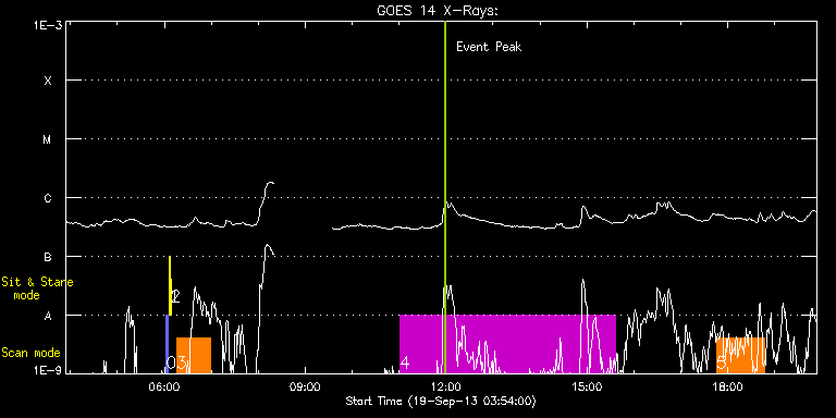 EIS Observation timeline overlay to GOES-Xray curve Code 1" 2" 40" 266" EIS Observations list for this event: STUDY ACRONYM ID DATE OBSERVED DESCRIPTION NOAA# TARGET 0 PRY_slot_contextLITE | 36264 | 2013/09/19 06:02:19 | EIS pointing and alignment | 1843 | Active Region TIMELINE ID DATE OBSERVED FITS FILE XCEN (+W/-E) YCEN (+N/-S) DUR ----------------------------------------------------------------------------------------------------------------- 36264 | 2013/09/19 06:02:19.000 | eis_l0_20130919_060219.fits.gz | -15.29 | -0.58 | 2m56s 1 Alignment_266 | 36265 | 2013/09/19 06:05:34 | EIS pointing and alignment | | Quiet Sun TIMELINE ID DATE OBSERVED FITS FILE XCEN (+W/-E) YCEN (+N/-S) DUR ----------------------------------------------------------------------------------------------------------------- 36265 | 2013/09/19 06:05:34.000 | eis_l0_20130919_060534.fits.gz | -132.49 | -0.58 | 1m22s 2 XRT_synop_AIA | 36266 | 2013/09/19 06:08:08 | EIS pointing and alignment | | Quiet Sun TIMELINE ID DATE OBSERVED FITS FILE XCEN (+W/-E) YCEN (+N/-S) DUR ----------------------------------------------------------------------------------------------------------------- 36266 | 2013/09/19 06:08:08.000 | eis_l0_20130919_060808.fits.gz | -132.49 | -0.50 | 10s 3 eis_tornadoes_scan | 36323 | 2013/09/19 06:15:19 | HOP237 spectroscopic study of magnetic | | Filament TIMELINE ID DATE OBSERVED FITS FILE XCEN (+W/-E) YCEN (+N/-S) DUR ----------------------------------------------------------------------------------------------------------------- 36323 | 2013/09/19 06:15:19.000 | eis_l0_20130919_061519.fits.gz | 856.56 | 393.62 | 43m2s 4 SK_CH_DIAG_320x384 | 36333 | 2013/09/19 11:00:27 | HOP206 N-polar map | | Coronal Hole TIMELINE ID DATE OBSERVED FITS FILE XCEN (+W/-E) YCEN (+N/-S) DUR ----------------------------------------------------------------------------------------------------------------- 36333 | 2013/09/19 11:00:27.000 | eis_l0_20130919_110027.fits.gz | -13.80 | 875.33 | 4h35m37s 5 Atlas_60 | 36382 | 2013/09/19 17:45:27 | HOP219 emerging region NOAA 11843 | | Quiet Sun TIMELINE ID DATE OBSERVED FITS FILE XCEN (+W/-E) YCEN (+N/-S) DUR ----------------------------------------------------------------------------------------------------------------- 36382 | 2013/09/19 17:45:27.000 | eis_l0_20130919_174527.fits.gz | 316.34 | -84.03 | 1h1m40s : Check study information : Download file : View thumbnails For this event, also check for: