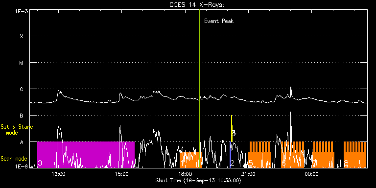 EIS Observation timeline overlay to GOES-Xray curve Code 1" 2" 40" 266" EIS Observations list for this event: STUDY ACRONYM ID DATE OBSERVED DESCRIPTION NOAA# TARGET 0 SK_CH_DIAG_320x384 | 36333 | 2013/09/19 11:00:27 | HOP206 N-polar map | | Coronal Hole TIMELINE ID DATE OBSERVED FITS FILE XCEN (+W/-E) YCEN (+N/-S) DUR ----------------------------------------------------------------------------------------------------------------- 36333 | 2013/09/19 11:00:27.000 | eis_l0_20130919_110027.fits.gz | -13.80 | 875.33 | 4h35m37s 1 Atlas_60 | 36382 | 2013/09/19 17:45:27 | HOP219 emerging region NOAA 11843 | | Quiet Sun TIMELINE ID DATE OBSERVED FITS FILE XCEN (+W/-E) YCEN (+N/-S) DUR ----------------------------------------------------------------------------------------------------------------- 36382 | 2013/09/19 17:45:27.000 | eis_l0_20130919_174527.fits.gz | 316.34 | -84.03 | 1h1m40s 2 PRY_slot_contextLITE | 36324 | 2013/09/19 20:07:20 | EIS pointing and alignment | 1843 | Active Region TIMELINE ID DATE OBSERVED FITS FILE XCEN (+W/-E) YCEN (+N/-S) DUR ----------------------------------------------------------------------------------------------------------------- 36324 | 2013/09/19 20:07:20.000 | eis_l0_20130919_200720.fits.gz | -15.29 | -0.27 | 2m56s 3 Alignment_266 | 36325 | 2013/09/19 20:10:34 | EIS pointing and alignment | | Quiet Sun TIMELINE ID DATE OBSERVED FITS FILE XCEN (+W/-E) YCEN (+N/-S) DUR ----------------------------------------------------------------------------------------------------------------- 36325 | 2013/09/19 20:10:34.000 | eis_l0_20130919_201034.fits.gz | -132.57 | -0.42 | 1m23s 4 XRT_synop_AIA | 36326 | 2013/09/19 20:13:09 | EIS pointing and alignment | | Quiet Sun TIMELINE ID DATE OBSERVED FITS FILE XCEN (+W/-E) YCEN (+N/-S) DUR ----------------------------------------------------------------------------------------------------------------- 36326 | 2013/09/19 20:13:09.000 | eis_l0_20130919_201309.fits.gz | -132.57 | -0.42 | 10s 5 HH_Flare_162x152 | 36385 | 2013/09/19 21:00:20 | AR near the SE limb (NOAA 11846) | 1845 | Flare TIMELINE ID DATE OBSERVED FITS FILE XCEN (+W/-E) YCEN (+N/-S) DUR ----------------------------------------------------------------------------------------------------------------- 36385 | 2013/09/19 21:00:20.000 | eis_l0_20130919_210020.fits.gz | -736.02 | -334.39 | 4m10s 36385 | 2013/09/19 21:04:33.000 | eis_l0_20130919_210433.fits.gz | -735.71 | -334.39 | 4m11s 36385 | 2013/09/19 21:08:46.000 | eis_l0_20130919_210846.fits.gz | -735.40 | -334.62 | 4m11s 36385 | 2013/09/19 21:13:00.000 | eis_l0_20130919_211300.fits.gz | -735.09 | -334.54 | 4m10s 36385 | 2013/09/19 21:17:13.000 | eis_l0_20130919_211713.fits.gz | -734.78 | -334.77 | 4m11s 36385 | 2013/09/19 21:21:27.000 | eis_l0_20130919_212127.fits.gz | -734.47 | -334.70 | 4m10s 36385 | 2013/09/19 21:25:40.000 | eis_l0_20130919_212540.fits.gz | -734.16 | -334.77 | 4m11s 36385 | 2013/09/19 21:29:54.000 | eis_l0_20130919_212954.fits.gz | -733.93 | -334.93 | 4m10s 36385 | 2013/09/19 21:34:07.000 | eis_l0_20130919_213407.fits.gz | -733.54 | -334.85 | 4m10s 36385 | 2013/09/19 21:38:20.000 | eis_l0_20130919_213820.fits.gz | -733.23 | -335.00 | 4m11s 36385 | 2013/09/19 21:42:34.000 | eis_l0_20130919_214234.fits.gz | -732.85 | -335.16 | 4m10s 36385 | 2013/09/19 21:46:47.000 | eis_l0_20130919_214647.fits.gz | -732.54 | -335.31 | 4m11s 36385 | 2013/09/19 21:51:01.000 | eis_l0_20130919_215101.fits.gz | -732.31 | -335.16 | 4m10s 36385 | 2013/09/19 21:55:14.000 | eis_l0_20130919_215514.fits.gz | -731.92 | -335.23 | 4m10s 36385 | 2013/09/19 21:59:27.000 | eis_l0_20130919_215927.fits.gz | -731.69 | -335.39 | 4m11s 6 HH_Flare_162x152 | 36386 | 2013/09/19 22:33:13 | AR near the SE limb (NOAA 11846) | 1845 | Flare TIMELINE ID DATE OBSERVED FITS FILE XCEN (+W/-E) YCEN (+N/-S) DUR ----------------------------------------------------------------------------------------------------------------- 36386 | 2013/09/19 22:33:13.000 | eis_l0_20130919_223313.fits.gz | -739.12 | -356.01 | 4m11s 36386 | 2013/09/19 22:37:27.000 | eis_l0_20130919_223727.fits.gz | -738.82 | -355.85 | 4m11s 36386 | 2013/09/19 22:41:40.000 | eis_l0_20130919_224140.fits.gz | -738.51 | -356.01 | 4m11s 36386 | 2013/09/19 22:45:54.000 | eis_l0_20130919_224554.fits.gz | -738.20 | -356.16 | 4m10s 36386 | 2013/09/19 22:50:07.000 | eis_l0_20130919_225007.fits.gz | -737.89 | -356.08 | 4m11s 36386 | 2013/09/19 22:54:21.000 | eis_l0_20130919_225421.fits.gz | -737.66 | -356.24 | 4m10s 36386 | 2013/09/19 22:58:34.000 | eis_l0_20130919_225834.fits.gz | -737.27 | -356.32 | 4m10s 36386 | 2013/09/19 23:02:47.000 | eis_l0_20130919_230247.fits.gz | -736.96 | -356.32 | 4m11s 36386 | 2013/09/19 23:07:01.000 | eis_l0_20130919_230701.fits.gz | -736.65 | -356.24 | 4m10s 36386 | 2013/09/19 23:11:14.000 | eis_l0_20130919_231114.fits.gz | -736.34 | -356.47 | 4m11s 36386 | 2013/09/19 23:15:28.000 | eis_l0_20130919_231528.fits.gz | -735.96 | -356.47 | 4m10s 36386 | 2013/09/19 23:19:41.000 | eis_l0_20130919_231941.fits.gz | -735.73 | -356.55 | 4m11s 36386 | 2013/09/19 23:23:54.000 | eis_l0_20130919_232354.fits.gz | -735.42 | -356.47 | 4m11s 36386 | 2013/09/19 23:28:08.000 | eis_l0_20130919_232808.fits.gz | -735.03 | -356.78 | 4m11s 36386 | 2013/09/19 23:32:21.000 | eis_l0_20130919_233221.fits.gz | -734.72 | -356.63 | 4m11s 7 HH_Flare_162x152 | 36387 | 2013/09/20 00:00:13 | AR near the SE limb (NOAA 11846) | 1846 | Flare TIMELINE ID DATE OBSERVED FITS FILE XCEN (+W/-E) YCEN (+N/-S) DUR ----------------------------------------------------------------------------------------------------------------- 36387 | 2013/09/20 00:00:13.000 | eis_l0_20130920_000013.fits.gz | -732.56 | -337.24 | 4m11s 36387 | 2013/09/20 00:04:27.000 | eis_l0_20130920_000427.fits.gz | -732.25 | -337.17 | 4m10s 36387 | 2013/09/20 00:08:40.000 | eis_l0_20130920_000840.fits.gz | -732.02 | -337.24 | 4m11s 36387 | 2013/09/20 00:12:53.000 | eis_l0_20130920_001253.fits.gz | -731.71 | -337.32 | 4m11s 36387 | 2013/09