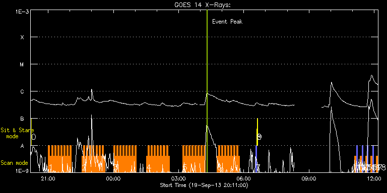 EIS Observation timeline overlay to GOES-Xray curve Code 1" 2" 40" 266" EIS Observations list for this event: STUDY ACRONYM ID DATE OBSERVED DESCRIPTION NOAA# TARGET 0 XRT_synop_AIA | 36326 | 2013/09/19 20:13:09 | EIS pointing and alignment | | Quiet Sun TIMELINE ID DATE OBSERVED FITS FILE XCEN (+W/-E) YCEN (+N/-S) DUR ----------------------------------------------------------------------------------------------------------------- 36326 | 2013/09/19 20:13:09.000 | eis_l0_20130919_201309.fits.gz | -132.57 | -0.42 | 10s 1 HH_Flare_162x152 | 36385 | 2013/09/19 21:00:20 | AR near the SE limb (NOAA 11846) | 1845 | Flare TIMELINE ID DATE OBSERVED FITS FILE XCEN (+W/-E) YCEN (+N/-S) DUR ----------------------------------------------------------------------------------------------------------------- 36385 | 2013/09/19 21:00:20.000 | eis_l0_20130919_210020.fits.gz | -736.02 | -334.39 | 4m10s 36385 | 2013/09/19 21:04:33.000 | eis_l0_20130919_210433.fits.gz | -735.71 | -334.39 | 4m11s 36385 | 2013/09/19 21:08:46.000 | eis_l0_20130919_210846.fits.gz | -735.40 | -334.62 | 4m11s 36385 | 2013/09/19 21:13:00.000 | eis_l0_20130919_211300.fits.gz | -735.09 | -334.54 | 4m10s 36385 | 2013/09/19 21:17:13.000 | eis_l0_20130919_211713.fits.gz | -734.78 | -334.77 | 4m11s 36385 | 2013/09/19 21:21:27.000 | eis_l0_20130919_212127.fits.gz | -734.47 | -334.70 | 4m10s 36385 | 2013/09/19 21:25:40.000 | eis_l0_20130919_212540.fits.gz | -734.16 | -334.77 | 4m11s 36385 | 2013/09/19 21:29:54.000 | eis_l0_20130919_212954.fits.gz | -733.93 | -334.93 | 4m10s 36385 | 2013/09/19 21:34:07.000 | eis_l0_20130919_213407.fits.gz | -733.54 | -334.85 | 4m10s 36385 | 2013/09/19 21:38:20.000 | eis_l0_20130919_213820.fits.gz | -733.23 | -335.00 | 4m11s 36385 | 2013/09/19 21:42:34.000 | eis_l0_20130919_214234.fits.gz | -732.85 | -335.16 | 4m10s 36385 | 2013/09/19 21:46:47.000 | eis_l0_20130919_214647.fits.gz | -732.54 | -335.31 | 4m11s 36385 | 2013/09/19 21:51:01.000 | eis_l0_20130919_215101.fits.gz | -732.31 | -335.16 | 4m10s 36385 | 2013/09/19 21:55:14.000 | eis_l0_20130919_215514.fits.gz | -731.92 | -335.23 | 4m10s 36385 | 2013/09/19 21:59:27.000 | eis_l0_20130919_215927.fits.gz | -731.69 | -335.39 | 4m11s 2 HH_Flare_162x152 | 36386 | 2013/09/19 22:33:13 | AR near the SE limb (NOAA 11846) | 1845 | Flare TIMELINE ID DATE OBSERVED FITS FILE XCEN (+W/-E) YCEN (+N/-S) DUR ----------------------------------------------------------------------------------------------------------------- 36386 | 2013/09/19 22:33:13.000 | eis_l0_20130919_223313.fits.gz | -739.12 | -356.01 | 4m11s 36386 | 2013/09/19 22:37:27.000 | eis_l0_20130919_223727.fits.gz | -738.82 | -355.85 | 4m11s 36386 | 2013/09/19 22:41:40.000 | eis_l0_20130919_224140.fits.gz | -738.51 | -356.01 | 4m11s 36386 | 2013/09/19 22:45:54.000 | eis_l0_20130919_224554.fits.gz | -738.20 | -356.16 | 4m10s 36386 | 2013/09/19 22:50:07.000 | eis_l0_20130919_225007.fits.gz | -737.89 | -356.08 | 4m11s 36386 | 2013/09/19 22:54:21.000 | eis_l0_20130919_225421.fits.gz | -737.66 | -356.24 | 4m10s 36386 | 2013/09/19 22:58:34.000 | eis_l0_20130919_225834.fits.gz | -737.27 | -356.32 | 4m10s 36386 | 2013/09/19 23:02:47.000 | eis_l0_20130919_230247.fits.gz | -736.96 | -356.32 | 4m11s 36386 | 2013/09/19 23:07:01.000 | eis_l0_20130919_230701.fits.gz | -736.65 | -356.24 | 4m10s 36386 | 2013/09/19 23:11:14.000 | eis_l0_20130919_231114.fits.gz | -736.34 | -356.47 | 4m11s 36386 | 2013/09/19 23:15:28.000 | eis_l0_20130919_231528.fits.gz | -735.96 | -356.47 | 4m10s 36386 | 2013/09/19 23:19:41.000 | eis_l0_20130919_231941.fits.gz | -735.73 | -356.55 | 4m11s 36386 | 2013/09/19 23:23:54.000 | eis_l0_20130919_232354.fits.gz | -735.42 | -356.47 | 4m11s 36386 | 2013/09/19 23:28:08.000 | eis_l0_20130919_232808.fits.gz | -735.03 | -356.78 | 4m11s 36386 | 2013/09/19 23:32:21.000 | eis_l0_20130919_233221.fits.gz | -734.72 | -356.63 | 4m11s 3 HH_Flare_162x152 | 36387 | 2013/09/20 00:00:13 | AR near the SE limb (NOAA 11846) | 1846 | Flare TIMELINE ID DATE OBSERVED FITS FILE XCEN (+W/-E) YCEN (+N/-S) DUR ----------------------------------------------------------------------------------------------------------------- 36387 | 2013/09/20 00:00:13.000 | eis_l0_20130920_000013.fits.gz | -732.56 | -337.24 | 4m11s 36387 | 2013/09/20 00:04:27.000 | eis_l0_20130920_000427.fits.gz | -732.25 | -337.17 | 4m10s 36387 | 2013/09/20 00:08:40.000 | eis_l0_20130920_000840.fits.gz | -732.02 | -337.24 | 4m11s 36387 | 2013/09/20 00:12:53.000 | eis_l0_20130920_001253.fits.gz | -731.71 | -337.32 | 4m11s 36387 | 2013/09/20 00:17:07.000 | eis_l0_20130920_001707.fits.gz | -731.24 | -337.40 | 4m10s 36387 | 2013/09/20 00:21:20.000 | eis_l0_20130920_002120.fits.gz | -731.01 | -337.48 | 4m11s 36387 | 2013/09/20 00:25:34.000 | eis_l0_20130920_002534.fits.gz | -730.78 | -337.55 | 4m11s 36387 | 2013/09/20 00:29:47.000 | eis_l0_20130920_002947.fits.gz | -730.40 | -337.71 | 4m11s 36387 | 2013/09/20 00:34:00.000 | eis_l0_20130920_003400.fits.gz | -730.09 | -337.55 | 4m11s 36387 | 2013/09/20 00:38:14.000 | eis_l0_20130920_003814.fits.gz | -729.70 | -337.78 | 4m11s 36387 | 2013/09/20 00:42:27.000 | eis_l0_20130920_004227.fits.gz | -729.39 | -337.78 | 4m11s 36387 | 2013/09/20 00:46:41.000 | eis_l0_20130920_004641.fits.gz | -729.08 | -337.86 | 4m10s 36387 | 2013/09/20 00:50:54.000 | eis_l0_20130920_005054.fits.gz | -728.70 | -337.94 | 4m11s 36387 | 2013/09/20 00:55:08.000 | eis_l0_20130920_005508.fits.gz | -728.31 | -338.09 | 4m10s 36387 | 2013/09/20 00:59:21.000 | eis_l0_20130920_005921.fits.gz | -728.08 | -338.02 | 4m11s 4 HH_Flare_162x152 | 36388 | 2013/09/20 01:31:08 | AR near the SE limb (NOAA 11846) | 1846 | Flare TIMELINE ID DATE OBSERVED FITS FILE XCEN (+W/-E) YCEN (+N/-S) DUR ----------------------------------------------------------------------------------------------------------------- 36388 | 2013/09/20 01:31:08.000 | eis_l0_20130920_013108.fits.gz | -725.61 | -338.56 | 4m11s 36388 | 2013/09/20 01:35:22.000 | eis_l0_20130920_013522.fits.gz | -725.30 | -338.