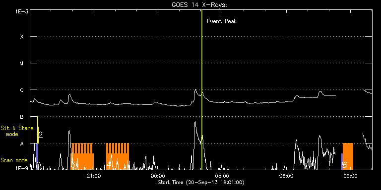 EIS Observation timeline overlay to GOES-Xray curve Code 1" 2" 40" 266" EIS Observations list for this event: STUDY ACRONYM ID DATE OBSERVED DESCRIPTION NOAA# TARGET 0 PRY_slot_contextLITE | 36330 | 2013/09/20 18:18:39 | EIS pointing and alignment | | Active Region TIMELINE ID DATE OBSERVED FITS FILE XCEN (+W/-E) YCEN (+N/-S) DUR ----------------------------------------------------------------------------------------------------------------- 36330 | 2013/09/20 18:18:39.000 | eis_l0_20130920_181839.fits.gz | -15.14 | -0.35 | 2m56s 1 Alignment_266 | 36331 | 2013/09/20 18:21:53 | EIS pointing and alignment | | Quiet Sun TIMELINE ID DATE OBSERVED FITS FILE XCEN (+W/-E) YCEN (+N/-S) DUR ----------------------------------------------------------------------------------------------------------------- 36331 | 2013/09/20 18:21:53.000 | eis_l0_20130920_182153.fits.gz | -132.41 | -0.42 | 1m22s 2 XRT_synop_AIA | 36332 | 2013/09/20 18:24:26 | EIS pointing and alignment | | Quiet Sun TIMELINE ID DATE OBSERVED FITS FILE XCEN (+W/-E) YCEN (+N/-S) DUR ----------------------------------------------------------------------------------------------------------------- 36332 | 2013/09/20 18:24:26.000 | eis_l0_20130920_182426.fits.gz | -132.49 | -0.50 | 10s 3 HH_Flare_162x152 | 36391 | 2013/09/20 19:55:19 | AR near the SE limb (NOAA 11846) | 1845 | Flare TIMELINE ID DATE OBSERVED FITS FILE XCEN (+W/-E) YCEN (+N/-S) DUR ----------------------------------------------------------------------------------------------------------------- 36391 | 2013/09/20 19:55:19.000 | eis_l0_20130920_195519.fits.gz | -536.79 | -353.93 | 4m10s 36391 | 2013/09/20 19:59:32.000 | eis_l0_20130920_195932.fits.gz | -536.40 | -354.01 | 4m11s 36391 | 2013/09/20 20:03:46.000 | eis_l0_20130920_200346.fits.gz | -536.02 | -353.93 | 4m10s 36391 | 2013/09/20 20:07:59.000 | eis_l0_20130920_200759.fits.gz | -535.55 | -354.08 | 4m11s 36391 | 2013/09/20 20:12:12.000 | eis_l0_20130920_201212.fits.gz | -535.17 | -354.08 | 4m11s 36391 | 2013/09/20 20:16:26.000 | eis_l0_20130920_201626.fits.gz | -534.78 | -354.16 | 4m10s 36391 | 2013/09/20 20:20:39.000 | eis_l0_20130920_202039.fits.gz | -534.40 | -354.24 | 4m11s 36391 | 2013/09/20 20:24:53.000 | eis_l0_20130920_202453.fits.gz | -533.93 | -354.24 | 4m10s 36391 | 2013/09/20 20:29:06.000 | eis_l0_20130920_202906.fits.gz | -533.54 | -354.39 | 4m11s 36391 | 2013/09/20 20:33:19.000 | eis_l0_20130920_203319.fits.gz | -533.08 | -354.39 | 4m11s 36391 | 2013/09/20 20:37:33.000 | eis_l0_20130920_203733.fits.gz | -532.62 | -354.32 | 4m11s 36391 | 2013/09/20 20:41:47.000 | eis_l0_20130920_204147.fits.gz | -532.31 | -354.55 | 4m10s 36391 | 2013/09/20 20:46:00.000 | eis_l0_20130920_204600.fits.gz | -531.85 | -354.47 | 4m10s 36391 | 2013/09/20 20:50:13.000 | eis_l0_20130920_205013.fits.gz | -531.38 | -354.55 | 4m11s 36391 | 2013/09/20 20:54:27.000 | eis_l0_20130920_205427.fits.gz | -531.07 | -354.55 | 4m10s 4 HH_Flare_162x152 | 36392 | 2013/09/20 21:35:13 | AR near the SE limb (NOAA 11846) | 1845 | Flare TIMELINE ID DATE OBSERVED FITS FILE XCEN (+W/-E) YCEN (+N/-S) DUR ----------------------------------------------------------------------------------------------------------------- 36392 | 2013/09/20 21:35:13.000 | eis_l0_20130920_213513.fits.gz | -526.98 | -355.17 | 4m10s 36392 | 2013/09/20 21:39:26.000 | eis_l0_20130920_213926.fits.gz | -526.67 | -355.24 | 4m11s 36392 | 2013/09/20 21:43:40.000 | eis_l0_20130920_214340.fits.gz | -526.13 | -355.40 | 4m10s 36392 | 2013/09/20 21:47:53.000 | eis_l0_20130920_214753.fits.gz | -525.82 | -355.24 | 4m11s 36392 | 2013/09/20 21:52:07.000 | eis_l0_20130920_215207.fits.gz | -525.43 | -355.24 | 4m10s 36392 | 2013/09/20 21:56:20.000 | eis_l0_20130920_215620.fits.gz | -524.97 | -355.40 | 4m11s 36392 | 2013/09/20 22:00:33.000 | eis_l0_20130920_220033.fits.gz | -524.51 | -355.47 | 4m11s 36392 | 2013/09/20 22:04:47.000 | eis_l0_20130920_220447.fits.gz | -524.12 | -355.55 | 4m10s 36392 | 2013/09/20 22:09:00.000 | eis_l0_20130920_220900.fits.gz | -523.66 | -355.63 | 4m11s 36392 | 2013/09/20 22:13:14.000 | eis_l0_20130920_221314.fits.gz | -523.19 | -355.78 | 4m10s 36392 | 2013/09/20 22:17:27.000 | eis_l0_20130920_221727.fits.gz | -522.81 | -355.78 | 4m11s 36392 | 2013/09/20 22:21:41.000 | eis_l0_20130920_222141.fits.gz | -522.50 | -355.63 | 4m11s 36392 | 2013/09/20 22:25:54.000 | eis_l0_20130920_222554.fits.gz | -521.96 | -355.78 | 4m11s 36392 | 2013/09/20 22:30:08.000 | eis_l0_20130920_223008.fits.gz | -521.49 | -355.78 | 4m10s 36392 | 2013/09/20 22:34:21.000 | eis_l0_20130920_223421.fits.gz | -521.19 | -355.86 | 4m11s 5 PRY_slot_context_v3 | 36394 | 2013/09/21 08:35:19 | HOP236 SST/IRIS/Hinode campaign | | Active Region TIMELINE ID DATE OBSERVED FITS FILE XCEN (+W/-E) YCEN (+N/-S) DUR ----------------------------------------------------------------------------------------------------------------- 36394 | 2013/09/21 08:35:19.000 | eis_l0_20130921_083519.fits.gz | 338.09 | 267.73 | 2m56s 6 Atlas_60 | 36395 | 2013/09/21 08:38:39 | HOP236 SST/IRIS/Hinode campaign | | Quiet Sun TIMELINE ID DATE OBSERVED FITS FILE XCEN (+W/-E) YCEN (+N/-S) DUR ----------------------------------------------------------------------------------------------------------------- 36395 | 2013/09/21 08:38:39.000 | eis_l0_20130921_083839.fits.gz | 378.76 | 249.88 | 28m45s : Check study information : Download file : View thumbnails For this event, also check for: