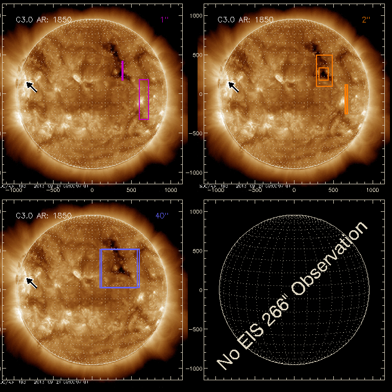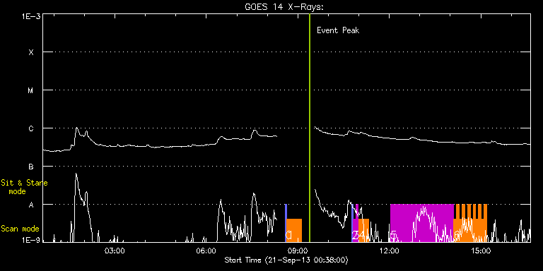 EIS Observation timeline overlay to GOES-Xray curve Code 1" 2" 40" 266" EIS Observations list for this event: STUDY ACRONYM ID DATE OBSERVED DESCRIPTION NOAA# TARGET 0 PRY_slot_context_v3 | 36394 | 2013/09/21 08:35:19 | HOP236 SST/IRIS/Hinode campaign | | Active Region TIMELINE ID DATE OBSERVED FITS FILE XCEN (+W/-E) YCEN (+N/-S) DUR ----------------------------------------------------------------------------------------------------------------- 36394 | 2013/09/21 08:35:19.000 | eis_l0_20130921_083519.fits.gz | 338.09 | 267.73 | 2m56s 1 Atlas_60 | 36395 | 2013/09/21 08:38:39 | HOP236 SST/IRIS/Hinode campaign | | Quiet Sun TIMELINE ID DATE OBSERVED FITS FILE XCEN (+W/-E) YCEN (+N/-S) DUR ----------------------------------------------------------------------------------------------------------------- 36395 | 2013/09/21 08:38:39.000 | eis_l0_20130921_083839.fits.gz | 378.76 | 249.88 | 28m45s 2 PRY_slot_contextLITE | 36413 | 2013/09/21 10:45:20 | Context image | | Active Region TIMELINE ID DATE OBSERVED FITS FILE XCEN (+W/-E) YCEN (+N/-S) DUR ----------------------------------------------------------------------------------------------------------------- 36413 | 2013/09/21 10:45:20.000 | eis_l0_20130921_104520.fits.gz | 360.36 | 273.50 | 2m57s 3 DRW001_HI_BRT_V3 | 36414 | 2013/09/21 10:48:28 | High cadence small FOV raster for coor | | Quiet Sun TIMELINE ID DATE OBSERVED FITS FILE XCEN (+W/-E) YCEN (+N/-S) DUR ----------------------------------------------------------------------------------------------------------------- 36414 | 2013/09/21 10:48:28.000 | eis_l0_20130921_104828.fits.gz | 387.71 | 290.73 | 5m15s 36414 | 2013/09/21 10:53:47.000 | eis_l0_20130921_105347.fits.gz | 388.40 | 290.65 | 5m16s 4 cam_artb_cds_a_lite | 36419 | 2013/09/21 10:59:20 | Large FOV scan in 20 mins to match IRI | | Active Region TIMELINE ID DATE OBSERVED FITS FILE XCEN (+W/-E) YCEN (+N/-S) DUR ----------------------------------------------------------------------------------------------------------------- 36419 | 2013/09/21 10:59:20.000 | eis_l0_20130921_105920.fits.gz | 388.86 | 290.81 | 19m25s 5 HPW021_VEL_240x512v1 | 36411 | 2013/09/21 12:02:27 | Scan of IRIS AR target | 1841 | Active Region TIMELINE ID DATE OBSERVED FITS FILE XCEN (+W/-E) YCEN (+N/-S) DUR ----------------------------------------------------------------------------------------------------------------- 36411 | 2013/09/21 12:02:27.000 | eis_l0_20130921_120227.fits.gz | 659.14 | -75.50 | 2h3m48s 6 IUU_SCAN_STEPS_002 | 36412 | 2013/09/21 14:06:32 | Fast scans of IRIS AR target | | Active Region TIMELINE ID DATE OBSERVED FITS FILE XCEN (+W/-E) YCEN (+N/-S) DUR ----------------------------------------------------------------------------------------------------------------- 36412 | 2013/09/21 14:06:32.000 | eis_l0_20130921_140632.fits.gz | 662.90 | -73.96 | 5m24s 36412 | 2013/09/21 14:11:59.000 | eis_l0_20130921_141159.fits.gz | 663.52 | -73.88 | 5m24s 36412 | 2013/09/21 14:17:26.000 | eis_l0_20130921_141726.fits.gz | 664.14 | -73.80 | 5m23s 36412 | 2013/09/21 14:22:53.000 | eis_l0_20130921_142253.fits.gz | 664.75 | -73.80 | 5m23s 36412 | 2013/09/21 14:28:19.000 | eis_l0_20130921_142819.fits.gz | 665.29 | -73.73 | 5m24s 36412 | 2013/09/21 14:33:46.000 | eis_l0_20130921_143346.fits.gz | 665.99 | -73.65 | 5m24s 36412 | 2013/09/21 14:39:13.000 | eis_l0_20130921_143913.fits.gz | 666.53 | -73.57 | 5m23s 36412 | 2013/09/21 14:44:40.000 | eis_l0_20130921_144440.fits.gz | 667.07 | -73.26 | 5m23s 36412 | 2013/09/21 14:50:06.000 | eis_l0_20130921_145006.fits.gz | 667.77 | -73.34 | 5m24s 36412 | 2013/09/21 14:55:33.000 | eis_l0_20130921_145533.fits.gz | 668.38 | -73.34 | 5m23s 36412 | 2013/09/21 15:01:00.000 | eis_l0_20130921_150100.fits.gz | 668.92 | -73.34 | 5m23s 36412 | 2013/09/21 15:06:26.000 | eis_l0_20130921_150626.fits.gz | 669.54 | -73.11 | 5m24s : Check study information : Download file : View thumbnails For this event, also check for: