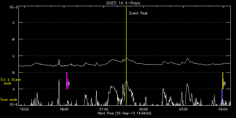 EIS Observation timeline overlay to GOES-Xray curve Code 1" 2" 40" 266" EIS Observations list for this event: STUDY ACRONYM ID DATE OBSERVED DESCRIPTION NOAA# TARGET 0 regcal071 | 36424 | 2013/09/25 18:10:11 | Dark exposures, CCD bottom rows (100s | | Engineering TIMELINE ID DATE OBSERVED FITS FILE XCEN (+W/-E) YCEN (+N/-S) DUR ----------------------------------------------------------------------------------------------------------------- 36424 | 2013/09/25 18:10:11.000 | eis_l0_20130925_181011.fits.gz | 14.59 | -305.50 | 3m22s 1 regcal072 | 36425 | 2013/09/25 18:16:41 | Dark exposures, top CCD rows (100s exp | | Engineering TIMELINE ID DATE OBSERVED FITS FILE XCEN (+W/-E) YCEN (+N/-S) DUR ----------------------------------------------------------------------------------------------------------------- 36425 | 2013/09/25 18:16:41.000 | eis_l0_20130925_181641.fits.gz | 7.64 | 227.67 | 3m22s 2 PRY_slot_contextLITE | 36428 | 2013/09/26 05:54:03 | Daily pointing monitoring | 1850 | Active Region TIMELINE ID DATE OBSERVED FITS FILE XCEN (+W/-E) YCEN (+N/-S) DUR ----------------------------------------------------------------------------------------------------------------- 36428 | 2013/09/26 05:54:03.000 | eis_l0_20130926_055403.fits.gz | -15.37 | -0.65 | 2m56s 3 Alignment_266 | 36429 | 2013/09/26 05:57:17 | Daily pointing monitoring | | Quiet Sun TIMELINE ID DATE OBSERVED FITS FILE XCEN (+W/-E) YCEN (+N/-S) DUR ----------------------------------------------------------------------------------------------------------------- 36429 | 2013/09/26 05:57:17.000 | eis_l0_20130926_055717.fits.gz | -132.57 | -0.50 | 1m22s 4 XRT_synop_AIA | 36430 | 2013/09/26 05:59:52 | Daily pointing monitoring | | Quiet Sun TIMELINE ID DATE OBSERVED FITS FILE XCEN (+W/-E) YCEN (+N/-S) DUR ----------------------------------------------------------------------------------------------------------------- 36430 | 2013/09/26 05:59:52.000 | eis_l0_20130926_055952.fits.gz | -132.57 | -0.42 | 10s : Check study information : Download file : View thumbnails For this event, also check for: