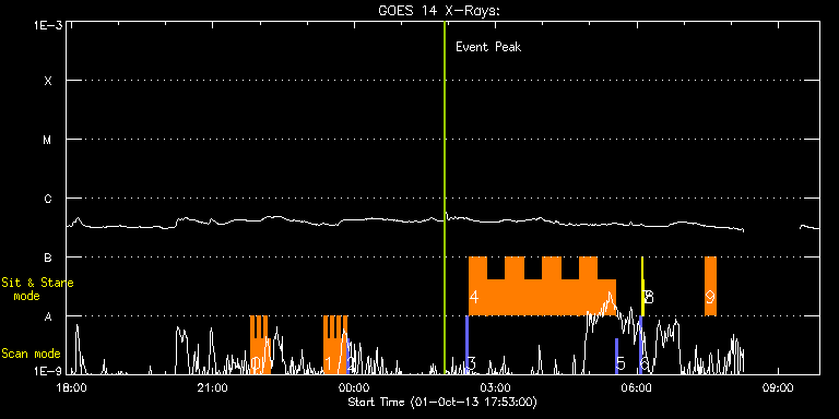 EIS Observation timeline overlay to GOES-Xray curve Code 1" 2" 40" 266" EIS Observations list for this event: STUDY ACRONYM ID DATE OBSERVED DESCRIPTION NOAA# TARGET 0 HH_Flare_162x152 | 36558 | 2013/10/01 21:48:02 | AR11850 obs near/on W-limb | 1850 | Flare TIMELINE ID DATE OBSERVED FITS FILE XCEN (+W/-E) YCEN (+N/-S) DUR ----------------------------------------------------------------------------------------------------------------- 36558 | 2013/10/01 21:48:02.000 | eis_l0_20131001_214802.fits.gz | -9815.29 | -9948.20 | 4m11s 36558 | 2013/10/01 21:52:16.000 | eis_l0_20131001_215216.fits.gz | -9815.29 | -9948.20 | 4m10s 36558 | 2013/10/01 21:56:29.000 | eis_l0_20131001_215629.fits.gz | -9815.29 | -9948.20 | 4m11s 36558 | 2013/10/01 22:00:43.000 | eis_l0_20131001_220043.fits.gz | -9815.29 | -9948.20 | 4m10s 36558 | 2013/10/01 22:04:56.000 | eis_l0_20131001_220456.fits.gz | -9815.29 | -9948.20 | 4m11s 36558 | 2013/10/01 22:09:09.000 | eis_l0_20131001_220909.fits.gz | -9815.29 | -9948.20 | 4m11s 1 HH_Flare_162x152 | 36554 | 2013/10/01 23:20:43 | AR11850 obs near/on W-limb | 1850 | Flare TIMELINE ID DATE OBSERVED FITS FILE XCEN (+W/-E) YCEN (+N/-S) DUR ----------------------------------------------------------------------------------------------------------------- 36554 | 2013/10/01 23:20:43.000 | eis_l0_20131001_232043.fits.gz | -9814.29 | -9948.20 | 4m11s 36554 | 2013/10/01 23:24:57.000 | eis_l0_20131001_232457.fits.gz | -9814.29 | -9948.20 | 4m10s 36554 | 2013/10/01 23:29:10.000 | eis_l0_20131001_232910.fits.gz | -9814.29 | -9948.20 | 4m10s 36554 | 2013/10/01 23:33:23.000 | eis_l0_20131001_233323.fits.gz | -9814.29 | -9948.20 | 4m10s 36554 | 2013/10/01 23:37:36.000 | eis_l0_20131001_233736.fits.gz | -9814.29 | -9948.20 | 4m11s 36554 | 2013/10/01 23:41:50.000 | eis_l0_20131001_234150.fits.gz | -9814.29 | -9948.20 | 4m10s 36554 | 2013/10/01 23:46:03.000 | eis_l0_20131001_234603.fits.gz | -9814.29 | -9948.20 | 4m11s 2 PRY_slot_context_v3 | 36559 | 2013/10/01 23:50:24 | AR11850 obs near/on W-limb | 1850 | Active Region TIMELINE ID DATE OBSERVED FITS FILE XCEN (+W/-E) YCEN (+N/-S) DUR ----------------------------------------------------------------------------------------------------------------- 36559 | 2013/10/01 23:50:24.000 | eis_l0_20131001_235024.fits.gz | -9870.71 | -9948.20 | 2m57s 3 PRY_slot_context_v3 | 36541 | 2013/10/02 02:22:39 | HOP228 W-limb AR11850 (off-limb, sit-a | 1850 | Active Region TIMELINE ID DATE OBSERVED FITS FILE XCEN (+W/-E) YCEN (+N/-S) DUR ----------------------------------------------------------------------------------------------------------------- 36541 | 2013/10/02 02:22:39.000 | eis_l0_20131002_022239.fits.gz | 912.93 | 124.65 | 2m56s 4 arm_loop_ne_slit | 36542 | 2013/10/02 02:25:59 | HOP228 W-limb AR11850 (off-limb, sit-a | | Polar region TIMELINE ID DATE OBSERVED FITS FILE XCEN (+W/-E) YCEN (+N/-S) DUR ----------------------------------------------------------------------------------------------------------------- 36542 | 2013/10/02 02:25:59.000 | eis_l0_20131002_022559.fits.gz | 1027.59 | 124.73 | 23m19s 36542 | 2013/10/02 02:49:22.000 | eis_l0_20131002_024922.fits.gz | 1027.59 | 124.58 | 23m18s 36542 | 2013/10/02 03:12:44.000 | eis_l0_20131002_031244.fits.gz | 1027.59 | 124.73 | 23m19s 36542 | 2013/10/02 03:36:06.000 | eis_l0_20131002_033606.fits.gz | 1027.51 | 124.65 | 23m19s 36542 | 2013/10/02 03:59:29.000 | eis_l0_20131002_035929.fits.gz | 1027.51 | 124.73 | 23m18s 36542 | 2013/10/02 04:22:51.000 | eis_l0_20131002_042251.fits.gz | 1027.59 | 124.73 | 23m18s 36542 | 2013/10/02 04:46:13.000 | eis_l0_20131002_044613.fits.gz | 1027.59 | 124.81 | 23m19s 36542 | 2013/10/02 05:09:35.000 | eis_l0_20131002_050935.fits.gz | 1027.59 | 124.73 | 23m19s 5 PRY_slot_context_v3 | 36543 | 2013/10/02 05:33:05 | HOP228 W-limb AR11850 (off-limb, sit-a | 1850 | Active Region TIMELINE ID DATE OBSERVED FITS FILE XCEN (+W/-E) YCEN (+N/-S) DUR ----------------------------------------------------------------------------------------------------------------- 36543 | 2013/10/02 05:33:05.000 | eis_l0_20131002_053305.fits.gz | 913.01 | 124.58 | 2m57s 6 PRY_slot_contextLITE | 36571 | 2013/10/02 06:03:14 | EIS-AIA alignment | | Active Region TIMELINE ID DATE OBSERVED FITS FILE XCEN (+W/-E) YCEN (+N/-S) DUR ----------------------------------------------------------------------------------------------------------------- 36571 | 2013/10/02 06:03:14.000 | eis_l0_20131002_060314.fits.gz | -15.29 | -0.58 | 2m56s 7 Alignment_266 | 36572 | 2013/10/02 06:06:28 | EIS-AIA alignment | | Quiet Sun TIMELINE ID DATE OBSERVED FITS FILE XCEN (+W/-E) YCEN (+N/-S) DUR ----------------------------------------------------------------------------------------------------------------- 36572 | 2013/10/02 06:06:28.000 | eis_l0_20131002_060628.fits.gz | -132.57 | -0.42 | 1m22s 8 XRT_synop_AIA | 36573 | 2013/10/02 06:09:16 | EIS-AIA alignment | | Quiet Sun TIMELINE ID DATE OBSERVED FITS FILE XCEN (+W/-E) YCEN (+N/-S) DUR ----------------------------------------------------------------------------------------------------------------- 36573 | 2013/10/02 06:09:16.000 | eis_l0_20131002_060916.fits.gz | -132.57 | -0.50 | 10s 9 madj_qs_sns_15m | 36552 | 2013/10/02 07:27:22 | HOP236 (with IRIS, N-limb, sit-and-sta | | Quiet Sun TIMELINE ID DATE OBSERVED FITS FILE XCEN (+W/-E) YCEN (+N/-S) DUR ----------------------------------------------------------------------------------------------------------------- 36552 | 2013/10/02 07:27:22.000 | eis_l0_20131002_072722.fits.gz | 65.61 | 920.61 | 13m8s : Check study information : Download file : View thumbnails For this event, also check for: