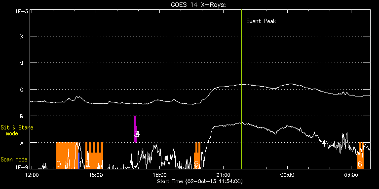 EIS Observation timeline overlay to GOES-Xray curve Code 1" 2" 40" 266" EIS Observations list for this event: STUDY ACRONYM ID DATE OBSERVED DESCRIPTION NOAA# TARGET 0 Atlas_60 | 36577 | 2013/10/02 13:08:26 | new emerging flux AR near CM | | Quiet Sun TIMELINE ID DATE OBSERVED FITS FILE XCEN (+W/-E) YCEN (+N/-S) DUR ----------------------------------------------------------------------------------------------------------------- 36577 | 2013/10/02 13:08:26.000 | eis_l0_20131002_130826.fits.gz | 52.79 | -328.71 | 1h1m39s 1 PRY_slot_contextLITE | 36579 | 2013/10/02 14:10:16 | new emerging flux AR near CM | 1855 | Active Region TIMELINE ID DATE OBSERVED FITS FILE XCEN (+W/-E) YCEN (+N/-S) DUR ----------------------------------------------------------------------------------------------------------------- 36579 | 2013/10/02 14:10:16.000 | eis_l0_20131002_141016.fits.gz | 55.56 | -328.87 | 2m56s 2 IUU_SCAN_STEPS_002 | 36580 | 2013/10/02 14:30:32 | new emerging flux AR near CM | | Active Region TIMELINE ID DATE OBSERVED FITS FILE XCEN (+W/-E) YCEN (+N/-S) DUR ----------------------------------------------------------------------------------------------------------------- 36580 | 2013/10/02 14:30:32.000 | eis_l0_20131002_143032.fits.gz | 72.06 | -328.71 | 5m24s 36580 | 2013/10/02 14:35:59.000 | eis_l0_20131002_143559.fits.gz | 72.84 | -328.79 | 5m24s 36580 | 2013/10/02 14:41:26.000 | eis_l0_20131002_144126.fits.gz | 73.69 | -328.71 | 5m23s 36580 | 2013/10/02 14:46:53.000 | eis_l0_20131002_144653.fits.gz | 74.54 | -328.71 | 5m23s 36580 | 2013/10/02 14:52:19.000 | eis_l0_20131002_145219.fits.gz | 75.31 | -328.71 | 5m24s 36580 | 2013/10/02 14:57:46.000 | eis_l0_20131002_145746.fits.gz | 76.08 | -328.63 | 5m24s 36580 | 2013/10/02 15:03:13.000 | eis_l0_20131002_150313.fits.gz | 76.93 | -328.63 | 5m23s 36580 | 2013/10/02 15:08:40.000 | eis_l0_20131002_150840.fits.gz | 77.70 | -328.63 | 5m23s 36580 | 2013/10/02 15:14:07.000 | eis_l0_20131002_151407.fits.gz | 78.48 | -328.63 | 5m23s 3 regcal071 | 36568 | 2013/10/02 16:47:51 | Dark exposures, CCD bottom rows (100s | | Engineering TIMELINE ID DATE OBSERVED FITS FILE XCEN (+W/-E) YCEN (+N/-S) DUR ----------------------------------------------------------------------------------------------------------------- 36568 | 2013/10/02 16:47:51.000 | eis_l0_20131002_164751.fits.gz | 94.62 | -648.56 | 3m22s 4 regcal072 | 36569 | 2013/10/02 16:51:40 | Dark exposures, top CCD rows (100s exp | | Engineering TIMELINE ID DATE OBSERVED FITS FILE XCEN (+W/-E) YCEN (+N/-S) DUR ----------------------------------------------------------------------------------------------------------------- 36569 | 2013/10/02 16:51:40.000 | eis_l0_20131002_165140.fits.gz | 95.08 | -137.32 | 3m22s 5 HH_Flare_162x152 | 36581 | 2013/10/02 19:37:03 | new emerging flux AR near CM | | Flare TIMELINE ID DATE OBSERVED FITS FILE XCEN (+W/-E) YCEN (+N/-S) DUR ----------------------------------------------------------------------------------------------------------------- 36581 | 2013/10/02 19:37:03.000 | eis_l0_20131002_193703.fits.gz | 110.15 | -328.02 | 4m10s 36581 | 2013/10/02 19:41:16.000 | eis_l0_20131002_194116.fits.gz | 110.77 | -327.94 | 4m10s 36581 | 2013/10/02 19:45:29.000 | eis_l0_20131002_194529.fits.gz | 111.46 | -327.94 | 4m11s 36581 | 2013/10/02 19:49:42.000 | eis_l0_20131002_194942.fits.gz | 112.01 | -327.94 | 4m11s 6 HH_Flare_162x152 | 36582 | 2013/10/03 03:18:08 | new emerging flux AR near CM | 1855 | Flare TIMELINE ID DATE OBSERVED FITS FILE XCEN (+W/-E) YCEN (+N/-S) DUR ----------------------------------------------------------------------------------------------------------------- 36582 | 2013/10/03 03:18:08.000 | eis_l0_20131003_031808.fits.gz | -9864.46 | -9948.20 | 4m11s 36582 | 2013/10/03 03:22:22.000 | eis_l0_20131003_032222.fits.gz | -9864.46 | -9948.20 | 4m10s 36582 | 2013/10/03 03:26:35.000 | eis_l0_20131003_032635.fits.gz | -9864.46 | -9948.20 | 4m10s 36582 | 2013/10/03 03:30:48.000 | eis_l0_20131003_033048.fits.gz | -9864.46 | -9948.20 | 4m11s : Check study information : Download file : View thumbnails For this event, also check for: