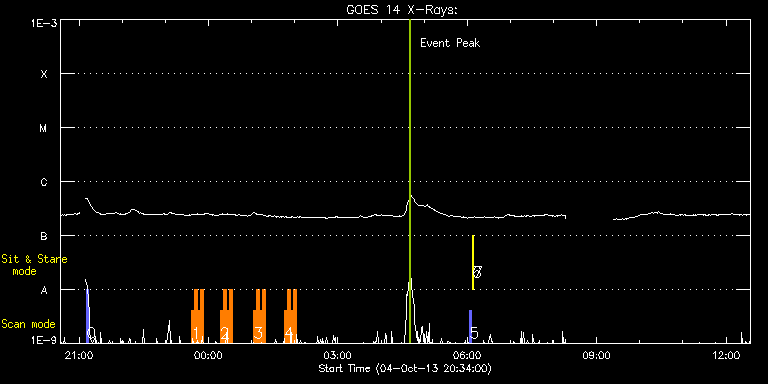 EIS Observation timeline overlay to GOES-Xray curve Code 1" 2" 40" 266" EIS Observations list for this event: STUDY ACRONYM ID DATE OBSERVED DESCRIPTION NOAA# TARGET 0 PRY_slot_context_v3 | 36598 | 2013/10/04 21:10:16 | HOP228 (W-limb AR 11851) | | Active Region TIMELINE ID DATE OBSERVED FITS FILE XCEN (+W/-E) YCEN (+N/-S) DUR ----------------------------------------------------------------------------------------------------------------- 36598 | 2013/10/04 21:10:16.000 | eis_l0_20131004_211016.fits.gz | 919.05 | -185.57 | 2m57s 1 HH_Flare_162x152 | 36608 | 2013/10/04 23:36:14 | W-limb AR raster scan obs | 1856 | Flare TIMELINE ID DATE OBSERVED FITS FILE XCEN (+W/-E) YCEN (+N/-S) DUR ----------------------------------------------------------------------------------------------------------------- 36608 | 2013/10/04 23:36:14.000 | eis_l0_20131004_233614.fits.gz | -710.94 | 51.42 | 4m10s 36608 | 2013/10/04 23:40:27.000 | eis_l0_20131004_234027.fits.gz | -710.56 | 51.35 | 4m11s 36608 | 2013/10/04 23:44:41.000 | eis_l0_20131004_234441.fits.gz | -710.09 | 51.35 | 4m10s 36608 | 2013/10/04 23:48:54.000 | eis_l0_20131004_234854.fits.gz | -709.63 | 51.12 | 4m11s 2 HH_Flare_162x152 | 36619 | 2013/10/05 00:16:09 | W-limb AR raster scan obs | 1856 | Flare TIMELINE ID DATE OBSERVED FITS FILE XCEN (+W/-E) YCEN (+N/-S) DUR ----------------------------------------------------------------------------------------------------------------- 36619 | 2013/10/05 00:16:09.000 | eis_l0_20131005_001609.fits.gz | -706.85 | 50.81 | 4m10s 36619 | 2013/10/05 00:20:22.000 | eis_l0_20131005_002022.fits.gz | -706.54 | 50.73 | 4m11s 36619 | 2013/10/05 00:24:36.000 | eis_l0_20131005_002436.fits.gz | -706.00 | 50.57 | 4m10s 36619 | 2013/10/05 00:28:49.000 | eis_l0_20131005_002849.fits.gz | -705.61 | 50.65 | 4m11s 3 HH_Flare_162x152 | 36620 | 2013/10/05 01:02:35 | W-limb AR raster scan obs | 1856 | Flare TIMELINE ID DATE OBSERVED FITS FILE XCEN (+W/-E) YCEN (+N/-S) DUR ----------------------------------------------------------------------------------------------------------------- 36620 | 2013/10/05 01:02:35.000 | eis_l0_20131005_010235.fits.gz | -702.21 | 50.34 | 4m11s 36620 | 2013/10/05 01:06:49.000 | eis_l0_20131005_010649.fits.gz | -701.83 | 50.27 | 4m10s 36620 | 2013/10/05 01:11:02.000 | eis_l0_20131005_011102.fits.gz | -701.36 | 50.19 | 4m10s 36620 | 2013/10/05 01:15:15.000 | eis_l0_20131005_011515.fits.gz | -700.98 | 50.03 | 4m11s 4 HH_Flare_162x152 | 36621 | 2013/10/05 01:45:16 | W-limb AR raster scan obs | 1856 | Flare TIMELINE ID DATE OBSERVED FITS FILE XCEN (+W/-E) YCEN (+N/-S) DUR ----------------------------------------------------------------------------------------------------------------- 36621 | 2013/10/05 01:45:16.000 | eis_l0_20131005_014516.fits.gz | -706.05 | 49.65 | 4m11s 36621 | 2013/10/05 01:49:30.000 | eis_l0_20131005_014930.fits.gz | -705.58 | 49.57 | 4m11s 36621 | 2013/10/05 01:53:44.000 | eis_l0_20131005_015344.fits.gz | -705.20 | 49.57 | 4m10s 36621 | 2013/10/05 01:57:57.000 | eis_l0_20131005_015757.fits.gz | -704.73 | 49.49 | 4m10s 5 PRY_slot_contextLITE | 36599 | 2013/10/05 06:03:19 | EIS-AIA alignment | | Active Region TIMELINE ID DATE OBSERVED FITS FILE XCEN (+W/-E) YCEN (+N/-S) DUR ----------------------------------------------------------------------------------------------------------------- 36599 | 2013/10/05 06:03:19.000 | eis_l0_20131005_060319.fits.gz | -15.14 | -0.50 | 2m56s 6 Alignment_266 | 36600 | 2013/10/05 06:06:33 | EIS-AIA alignment | | Quiet Sun TIMELINE ID DATE OBSERVED FITS FILE XCEN (+W/-E) YCEN (+N/-S) DUR ----------------------------------------------------------------------------------------------------------------- 36600 | 2013/10/05 06:06:33.000 | eis_l0_20131005_060633.fits.gz | -132.49 | -0.42 | 1m22s 7 XRT_synop_AIA | 36601 | 2013/10/05 06:08:40 | EIS-AIA alignment | | Quiet Sun TIMELINE ID DATE OBSERVED FITS FILE XCEN (+W/-E) YCEN (+N/-S) DUR ----------------------------------------------------------------------------------------------------------------- 36601 | 2013/10/05 06:08:40.000 | eis_l0_20131005_060840.fits.gz | -132.49 | -0.50 | 10s : Check study information : Download file : View thumbnails For this event, also check for:
