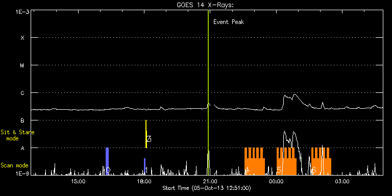 EIS Observation timeline overlay to GOES-Xray curve Code 1" 2" 40" 266" EIS Observations list for this event: STUDY ACRONYM ID DATE OBSERVED DESCRIPTION NOAA# TARGET 0 CHW_Context2_SI004 | 36669 | 2013/10/05 16:15:22 | N-pole polarity reversal obs. | | Coronal Hole TIMELINE ID DATE OBSERVED FITS FILE XCEN (+W/-E) YCEN (+N/-S) DUR ----------------------------------------------------------------------------------------------------------------- 36669 | 2013/10/05 16:15:22.000 | eis_l0_20131005_161522.fits.gz | -25.53 | 897.35 | 7m 1 PRY_slot_contextLITE | 36657 | 2013/10/05 18:00:10 | daily pointing monitoring | | Active Region TIMELINE ID DATE OBSERVED FITS FILE XCEN (+W/-E) YCEN (+N/-S) DUR ----------------------------------------------------------------------------------------------------------------- 36657 | 2013/10/05 18:00:10.000 | eis_l0_20131005_180010.fits.gz | -15.14 | -0.50 | 2m57s 2 Alignment_266 | 36658 | 2013/10/05 18:04:27 | daily pointing monitoring | | Quiet Sun TIMELINE ID DATE OBSERVED FITS FILE XCEN (+W/-E) YCEN (+N/-S) DUR ----------------------------------------------------------------------------------------------------------------- 36658 | 2013/10/05 18:04:27.000 | eis_l0_20131005_180427.fits.gz | -132.49 | -0.50 | 1m22s 3 XRT_synop_AIA | 36659 | 2013/10/05 18:07:16 | daily pointing monitoring | | Quiet Sun TIMELINE ID DATE OBSERVED FITS FILE XCEN (+W/-E) YCEN (+N/-S) DUR ----------------------------------------------------------------------------------------------------------------- 36659 | 2013/10/05 18:07:16.000 | eis_l0_20131005_180716.fits.gz | -132.57 | -0.42 | 10s 4 HH_Flare+AR_180x152H | 36626 | 2013/10/05 22:34:08 | AR 11856 obs | 1856 | Flare TIMELINE ID DATE OBSERVED FITS FILE XCEN (+W/-E) YCEN (+N/-S) DUR ----------------------------------------------------------------------------------------------------------------- 36626 | 2013/10/05 22:34:08.000 | eis_l0_20131005_223408.fits.gz | -564.89 | 37.59 | 5m18s 36626 | 2013/10/05 22:39:29.000 | eis_l0_20131005_223929.fits.gz | -564.27 | 37.51 | 5m18s 36626 | 2013/10/05 22:44:50.000 | eis_l0_20131005_224450.fits.gz | -563.58 | 37.51 | 5m17s 36626 | 2013/10/05 22:50:10.000 | eis_l0_20131005_225010.fits.gz | -562.81 | 37.28 | 5m19s 36626 | 2013/10/05 22:55:31.000 | eis_l0_20131005_225531.fits.gz | -562.27 | 37.28 | 5m18s 36626 | 2013/10/05 23:00:52.000 | eis_l0_20131005_230052.fits.gz | -561.65 | 37.28 | 5m17s 36626 | 2013/10/05 23:06:12.000 | eis_l0_20131005_230612.fits.gz | -560.88 | 37.20 | 5m19s 36626 | 2013/10/05 23:11:33.000 | eis_l0_20131005_231133.fits.gz | -560.33 | 37.36 | 5m18s 36626 | 2013/10/05 23:16:54.000 | eis_l0_20131005_231654.fits.gz | -559.64 | 37.20 | 5m18s 36626 | 2013/10/05 23:22:14.000 | eis_l0_20131005_232214.fits.gz | -559.02 | 37.20 | 5m19s 5 HH_Flare+AR_180x152H | 36627 | 2013/10/06 00:01:06 | AR 11856 obs | 1856 | Flare TIMELINE ID DATE OBSERVED FITS FILE XCEN (+W/-E) YCEN (+N/-S) DUR ----------------------------------------------------------------------------------------------------------------- 36627 | 2013/10/06 00:01:06.000 | eis_l0_20131006_000106.fits.gz | -554.08 | 36.82 | 5m18s 36627 | 2013/10/06 00:06:26.000 | eis_l0_20131006_000626.fits.gz | -553.46 | 36.66 | 5m18s 36627 | 2013/10/06 00:11:47.000 | eis_l0_20131006_001147.fits.gz | -552.69 | 36.43 | 5m19s 36627 | 2013/10/06 00:17:09.000 | eis_l0_20131006_001709.fits.gz | -552.07 | 36.51 | 5m17s 36627 | 2013/10/06 00:22:29.000 | eis_l0_20131006_002229.fits.gz | -551.45 | 36.43 | 5m18s 36627 | 2013/10/06 00:27:50.000 | eis_l0_20131006_002750.fits.gz | -550.83 | 36.43 | 5m18s 36627 | 2013/10/06 00:33:11.000 | eis_l0_20131006_003311.fits.gz | -550.06 | 36.20 | 5m19s 36627 | 2013/10/06 00:38:32.000 | eis_l0_20131006_003832.fits.gz | -549.36 | 36.20 | 5m18s 36627 | 2013/10/06 00:43:53.000 | eis_l0_20131006_004353.fits.gz | -548.82 | 36.28 | 5m18s 36627 | 2013/10/06 00:49:14.000 | eis_l0_20131006_004914.fits.gz | -548.13 | 36.20 | 5m18s 6 HH_Flare+AR_180x152H | 36628 | 2013/10/06 01:35:38 | AR 11856 obs | 1856 | Flare TIMELINE ID DATE OBSERVED FITS FILE XCEN (+W/-E) YCEN (+N/-S) DUR ----------------------------------------------------------------------------------------------------------------- 36628 | 2013/10/06 01:35:38.000 | eis_l0_20131006_013538.fits.gz | -542.18 | 35.97 | 5m18s 36628 | 2013/10/06 01:40:59.000 | eis_l0_20131006_014059.fits.gz | -541.49 | 35.97 | 5m18s 36628 | 2013/10/06 01:46:20.000 | eis_l0_20131006_014620.fits.gz | -540.79 | 35.73 | 5m17s 36628 | 2013/10/06 01:51:40.000 | eis_l0_20131006_015140.fits.gz | -540.17 | 35.66 | 5m18s 36628 | 2013/10/06 01:57:01.000 | eis_l0_20131006_015701.fits.gz | -539.55 | 35.66 | 5m18s 36628 | 2013/10/06 02:02:22.000 | eis_l0_20131006_020222.fits.gz | -538.86 | 35.43 | 5m17s 36628 | 2013/10/06 02:07:42.000 | eis_l0_20131006_020742.fits.gz | -538.16 | 35.43 | 5m17s 36628 | 2013/10/06 02:13:02.000 | eis_l0_20131006_021302.fits.gz | -537.47 | 35.50 | 5m18s 36628 | 2013/10/06 02:18:23.000 | eis_l0_20131006_021823.fits.gz | -536.70 | 35.27 | 5m18s 36628 | 2013/10/06 02:23:44.000 | eis_l0_20131006_022344.fits.gz | -536.08 | 35.43 | 5m18s : Check study information : Download file : View thumbnails For this event, also check for:
