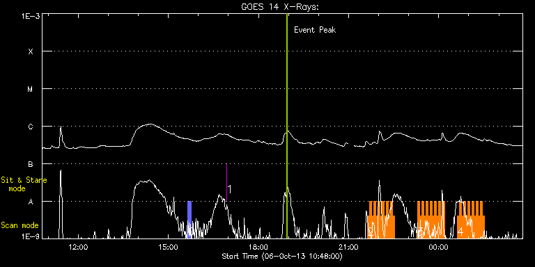 EIS Observation timeline overlay to GOES-Xray curve Code 1" 2" 40" 266" EIS Observations list for this event: STUDY ACRONYM ID DATE OBSERVED DESCRIPTION NOAA# TARGET 0 CHW_Context2_SI004 | 36679 | 2013/10/06 15:38:57 | N-pole polarity reversal obs. | | Coronal Hole TIMELINE ID DATE OBSERVED FITS FILE XCEN (+W/-E) YCEN (+N/-S) DUR ----------------------------------------------------------------------------------------------------------------- 36679 | 2013/10/06 15:38:57.000 | eis_l0_20131006_153857.fits.gz | -25.61 | 897.27 | 7m1s 1 regcal076 | 36634 | 2013/10/06 16:56:08 | Flatfield, 1 exposure, led 100ms, ccd | | Engineering TIMELINE ID DATE OBSERVED FITS FILE XCEN (+W/-E) YCEN (+N/-S) DUR ----------------------------------------------------------------------------------------------------------------- 36634 | 2013/10/06 16:56:08.000 | eis_l0_20131006_165608.fits.gz | -0.55 | 829.20 | 1s 2 HH_Flare_162x152 | 36678 | 2013/10/06 21:37:12 | AR 11856 obs | | Flare TIMELINE ID DATE OBSERVED FITS FILE XCEN (+W/-E) YCEN (+N/-S) DUR ----------------------------------------------------------------------------------------------------------------- 36678 | 2013/10/06 21:37:12.000 | eis_l0_20131006_213712.fits.gz | -367.33 | 36.08 | 4m11s 36678 | 2013/10/06 21:41:25.000 | eis_l0_20131006_214125.fits.gz | -366.71 | 36.23 | 4m11s 36678 | 2013/10/06 21:45:39.000 | eis_l0_20131006_214539.fits.gz | -366.10 | 36.23 | 4m10s 36678 | 2013/10/06 21:49:52.000 | eis_l0_20131006_214952.fits.gz | -365.40 | 36.16 | 4m11s 36678 | 2013/10/06 21:54:06.000 | eis_l0_20131006_215406.fits.gz | -364.94 | 36.23 | 4m10s 36678 | 2013/10/06 21:58:19.000 | eis_l0_20131006_215819.fits.gz | -364.32 | 36.08 | 4m11s 36678 | 2013/10/06 22:02:32.000 | eis_l0_20131006_220232.fits.gz | -363.70 | 36.16 | 4m11s 36678 | 2013/10/06 22:06:46.000 | eis_l0_20131006_220646.fits.gz | -363.08 | 36.08 | 4m11s 36678 | 2013/10/06 22:10:59.000 | eis_l0_20131006_221059.fits.gz | -362.46 | 36.00 | 4m11s 36678 | 2013/10/06 22:15:13.000 | eis_l0_20131006_221513.fits.gz | -361.85 | 36.08 | 4m11s 36678 | 2013/10/06 22:19:26.000 | eis_l0_20131006_221926.fits.gz | -361.38 | 36.08 | 4m11s 36678 | 2013/10/06 22:23:40.000 | eis_l0_20131006_222340.fits.gz | -360.69 | 36.00 | 4m10s 36678 | 2013/10/06 22:27:53.000 | eis_l0_20131006_222753.fits.gz | -360.07 | 35.92 | 4m11s 3 HH_Flare_162x152 | 36637 | 2013/10/06 23:17:16 | AR 11856 obs | | Flare TIMELINE ID DATE OBSERVED FITS FILE XCEN (+W/-E) YCEN (+N/-S) DUR ----------------------------------------------------------------------------------------------------------------- 36637 | 2013/10/06 23:17:16.000 | eis_l0_20131006_231716.fits.gz | -353.04 | 35.62 | 4m10s 36637 | 2013/10/06 23:21:29.000 | eis_l0_20131006_232129.fits.gz | -352.50 | 35.62 | 4m11s 36637 | 2013/10/06 23:25:43.000 | eis_l0_20131006_232543.fits.gz | -351.88 | 35.54 | 4m11s 36637 | 2013/10/06 23:29:57.000 | eis_l0_20131006_232957.fits.gz | -351.34 | 35.54 | 4m10s 36637 | 2013/10/06 23:34:09.000 | eis_l0_20131006_233409.fits.gz | -350.65 | 35.46 | 4m11s 36637 | 2013/10/06 23:38:23.000 | eis_l0_20131006_233823.fits.gz | -350.18 | 35.62 | 4m11s 36637 | 2013/10/06 23:42:37.000 | eis_l0_20131006_234237.fits.gz | -349.49 | 35.54 | 4m10s 36637 | 2013/10/06 23:46:50.000 | eis_l0_20131006_234650.fits.gz | -348.87 | 35.38 | 4m10s 36637 | 2013/10/06 23:51:03.000 | eis_l0_20131006_235103.fits.gz | -348.25 | 35.46 | 4m11s 36637 | 2013/10/06 23:55:17.000 | eis_l0_20131006_235517.fits.gz | -347.71 | 35.46 | 4m10s 36637 | 2013/10/06 23:59:30.000 | eis_l0_20131006_235930.fits.gz | -347.02 | 35.31 | 4m11s 36637 | 2013/10/07 00:03:44.000 | eis_l0_20131007_000344.fits.gz | -346.40 | 35.38 | 4m10s 36637 | 2013/10/07 00:07:57.000 | eis_l0_20131007_000757.fits.gz | -345.78 | 35.38 | 4m10s 4 HH_Flare_162x152 | 36638 | 2013/10/07 00:36:53 | AR 11856 obs | 1856 | Flare TIMELINE ID DATE OBSERVED FITS FILE XCEN (+W/-E) YCEN (+N/-S) DUR ----------------------------------------------------------------------------------------------------------------- 36638 | 2013/10/07 00:36:53.000 | eis_l0_20131007_003653.fits.gz | -341.69 | 35.15 | 4m10s 36638 | 2013/10/07 00:41:06.000 | eis_l0_20131007_004106.fits.gz | -341.07 | 35.23 | 4m10s 36638 | 2013/10/07 00:45:19.000 | eis_l0_20131007_004519.fits.gz | -340.45 | 35.23 | 4m11s 36638 | 2013/10/07 00:49:32.000 | eis_l0_20131007_004932.fits.gz | -339.91 | 35.07 | 4m11s 36638 | 2013/10/07 00:53:46.000 | eis_l0_20131007_005346.fits.gz | -339.29 | 35.00 | 4m11s 36638 | 2013/10/07 00:58:00.000 | eis_l0_20131007_005800.fits.gz | -338.75 | 35.07 | 4m11s 36638 | 2013/10/07 01:02:13.000 | eis_l0_20131007_010213.fits.gz | -338.13 | 35.00 | 4m11s 36638 | 2013/10/07 01:06:27.000 | eis_l0_20131007_010627.fits.gz | -337.51 | 35.07 | 4m10s 36638 | 2013/10/07 01:10:40.000 | eis_l0_20131007_011040.fits.gz | -336.82 | 34.84 | 4m11s 36638 | 2013/10/07 01:14:54.000 | eis_l0_20131007_011454.fits.gz | -336.28 | 34.84 | 4m10s 36638 | 2013/10/07 01:19:07.000 | eis_l0_20131007_011907.fits.gz | -335.66 | 34.77 | 4m11s 36638 | 2013/10/07 01:23:20.000 | eis_l0_20131007_012320.fits.gz | -334.96 | 34.84 | 4m11s 36638 | 2013/10/07 01:27:34.000 | eis_l0_20131007_012734.fits.gz | -334.35 | 34.84 | 4m11s : Check study information : Download file : View thumbnails For this event, also check for:
