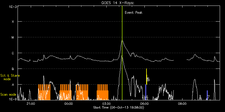 EIS Observation timeline overlay to GOES-Xray curve Code 1" 2" 40" 266" EIS Observations list for this event: STUDY ACRONYM ID DATE OBSERVED DESCRIPTION NOAA# TARGET 0 HH_Flare_162x152 | 36678 | 2013/10/06 21:37:12 | AR 11856 obs | | Flare TIMELINE ID DATE OBSERVED FITS FILE XCEN (+W/-E) YCEN (+N/-S) DUR ----------------------------------------------------------------------------------------------------------------- 36678 | 2013/10/06 21:37:12.000 | eis_l0_20131006_213712.fits.gz | -367.33 | 36.08 | 4m11s 36678 | 2013/10/06 21:41:25.000 | eis_l0_20131006_214125.fits.gz | -366.71 | 36.23 | 4m11s 36678 | 2013/10/06 21:45:39.000 | eis_l0_20131006_214539.fits.gz | -366.10 | 36.23 | 4m10s 36678 | 2013/10/06 21:49:52.000 | eis_l0_20131006_214952.fits.gz | -365.40 | 36.16 | 4m11s 36678 | 2013/10/06 21:54:06.000 | eis_l0_20131006_215406.fits.gz | -364.94 | 36.23 | 4m10s 36678 | 2013/10/06 21:58:19.000 | eis_l0_20131006_215819.fits.gz | -364.32 | 36.08 | 4m11s 36678 | 2013/10/06 22:02:32.000 | eis_l0_20131006_220232.fits.gz | -363.70 | 36.16 | 4m11s 36678 | 2013/10/06 22:06:46.000 | eis_l0_20131006_220646.fits.gz | -363.08 | 36.08 | 4m11s 36678 | 2013/10/06 22:10:59.000 | eis_l0_20131006_221059.fits.gz | -362.46 | 36.00 | 4m11s 36678 | 2013/10/06 22:15:13.000 | eis_l0_20131006_221513.fits.gz | -361.85 | 36.08 | 4m11s 36678 | 2013/10/06 22:19:26.000 | eis_l0_20131006_221926.fits.gz | -361.38 | 36.08 | 4m11s 36678 | 2013/10/06 22:23:40.000 | eis_l0_20131006_222340.fits.gz | -360.69 | 36.00 | 4m10s 36678 | 2013/10/06 22:27:53.000 | eis_l0_20131006_222753.fits.gz | -360.07 | 35.92 | 4m11s 1 HH_Flare_162x152 | 36637 | 2013/10/06 23:17:16 | AR 11856 obs | | Flare TIMELINE ID DATE OBSERVED FITS FILE XCEN (+W/-E) YCEN (+N/-S) DUR ----------------------------------------------------------------------------------------------------------------- 36637 | 2013/10/06 23:17:16.000 | eis_l0_20131006_231716.fits.gz | -353.04 | 35.62 | 4m10s 36637 | 2013/10/06 23:21:29.000 | eis_l0_20131006_232129.fits.gz | -352.50 | 35.62 | 4m11s 36637 | 2013/10/06 23:25:43.000 | eis_l0_20131006_232543.fits.gz | -351.88 | 35.54 | 4m11s 36637 | 2013/10/06 23:29:57.000 | eis_l0_20131006_232957.fits.gz | -351.34 | 35.54 | 4m10s 36637 | 2013/10/06 23:34:09.000 | eis_l0_20131006_233409.fits.gz | -350.65 | 35.46 | 4m11s 36637 | 2013/10/06 23:38:23.000 | eis_l0_20131006_233823.fits.gz | -350.18 | 35.62 | 4m11s 36637 | 2013/10/06 23:42:37.000 | eis_l0_20131006_234237.fits.gz | -349.49 | 35.54 | 4m10s 36637 | 2013/10/06 23:46:50.000 | eis_l0_20131006_234650.fits.gz | -348.87 | 35.38 | 4m10s 36637 | 2013/10/06 23:51:03.000 | eis_l0_20131006_235103.fits.gz | -348.25 | 35.46 | 4m11s 36637 | 2013/10/06 23:55:17.000 | eis_l0_20131006_235517.fits.gz | -347.71 | 35.46 | 4m10s 36637 | 2013/10/06 23:59:30.000 | eis_l0_20131006_235930.fits.gz | -347.02 | 35.31 | 4m11s 36637 | 2013/10/07 00:03:44.000 | eis_l0_20131007_000344.fits.gz | -346.40 | 35.38 | 4m10s 36637 | 2013/10/07 00:07:57.000 | eis_l0_20131007_000757.fits.gz | -345.78 | 35.38 | 4m10s 2 HH_Flare_162x152 | 36638 | 2013/10/07 00:36:53 | AR 11856 obs | 1856 | Flare TIMELINE ID DATE OBSERVED FITS FILE XCEN (+W/-E) YCEN (+N/-S) DUR ----------------------------------------------------------------------------------------------------------------- 36638 | 2013/10/07 00:36:53.000 | eis_l0_20131007_003653.fits.gz | -341.69 | 35.15 | 4m10s 36638 | 2013/10/07 00:41:06.000 | eis_l0_20131007_004106.fits.gz | -341.07 | 35.23 | 4m10s 36638 | 2013/10/07 00:45:19.000 | eis_l0_20131007_004519.fits.gz | -340.45 | 35.23 | 4m11s 36638 | 2013/10/07 00:49:32.000 | eis_l0_20131007_004932.fits.gz | -339.91 | 35.07 | 4m11s 36638 | 2013/10/07 00:53:46.000 | eis_l0_20131007_005346.fits.gz | -339.29 | 35.00 | 4m11s 36638 | 2013/10/07 00:58:00.000 | eis_l0_20131007_005800.fits.gz | -338.75 | 35.07 | 4m11s 36638 | 2013/10/07 01:02:13.000 | eis_l0_20131007_010213.fits.gz | -338.13 | 35.00 | 4m11s 36638 | 2013/10/07 01:06:27.000 | eis_l0_20131007_010627.fits.gz | -337.51 | 35.07 | 4m10s 36638 | 2013/10/07 01:10:40.000 | eis_l0_20131007_011040.fits.gz | -336.82 | 34.84 | 4m11s 36638 | 2013/10/07 01:14:54.000 | eis_l0_20131007_011454.fits.gz | -336.28 | 34.84 | 4m10s 36638 | 2013/10/07 01:19:07.000 | eis_l0_20131007_011907.fits.gz | -335.66 | 34.77 | 4m11s 36638 | 2013/10/07 01:23:20.000 | eis_l0_20131007_012320.fits.gz | -334.96 | 34.84 | 4m11s 36638 | 2013/10/07 01:27:34.000 | eis_l0_20131007_012734.fits.gz | -334.35 | 34.84 | 4m11s 3 HH_Flare_162x152 | 36639 | 2013/10/07 02:13:27 | AR 11856 obs | 1856 | Flare TIMELINE ID DATE OBSERVED FITS FILE XCEN (+W/-E) YCEN (+N/-S) DUR ----------------------------------------------------------------------------------------------------------------- 36639 | 2013/10/07 02:13:27.000 | eis_l0_20131007_021327.fits.gz | -327.86 | 34.77 | 4m10s 36639 | 2013/10/07 02:17:40.000 | eis_l0_20131007_021740.fits.gz | -327.16 | 34.61 | 4m11s 36639 | 2013/10/07 02:21:54.000 | eis_l0_20131007_022154.fits.gz | -326.62 | 34.69 | 4m10s 36639 | 2013/10/07 02:26:07.000 | eis_l0_20131007_022607.fits.gz | -326.01 | 34.53 | 4m11s 36639 | 2013/10/07 02:30:21.000 | eis_l0_20131007_023021.fits.gz | -325.39 | 34.46 | 4m10s 36639 | 2013/10/07 02:34:34.000 | eis_l0_20131007_023434.fits.gz | -324.77 | 34.38 | 4m11s 36639 | 2013/10/07 02:38:47.000 | eis_l0_20131007_023847.fits.gz | -324.15 | 34.46 | 4m11s 36639 | 2013/10/07 02:43:01.000 | eis_l0_20131007_024301.fits.gz | -323.61 | 34.46 | 4m10s 36639 | 2013/10/07 02:47:14.000 | eis_l0_20131007_024714.fits.gz | -322.99 | 34.46 | 4m11s 36639 | 2013/10/07 02:51:28.000 | eis_l0_20131007_025128.fits.gz | -322.37 | 34.53 | 4m10s 36639 | 2013/10/07 02:55:41.000 | eis_l0_20131007_025541.fits.gz | -321.76 | 34.38 | 4m10s 36639 | 2013/10/07 02:59:54.000 | eis_l0_20131007_025954.fits.gz | -321.14 | 34.30 | 4m11s 36639 | 2013/10/07 03:04:08.000 | eis_l0_20131007_030408.fits.gz | -320.52 | 34.22 | 4m11s 4 PRY_slot_contextLITE | 36663 | 2013/10/07 06:04:56 | daily pointing monito
