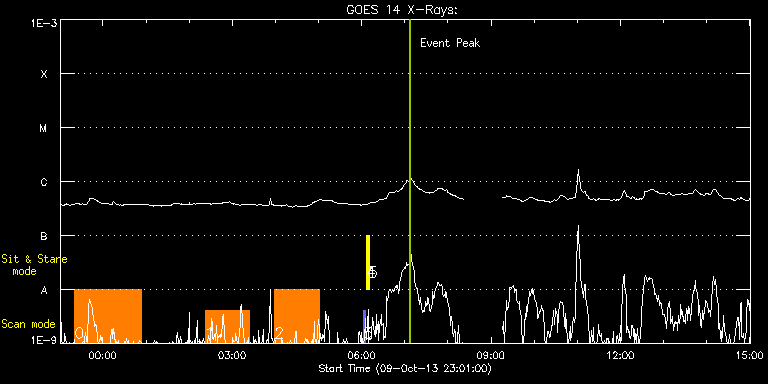 EIS Observation timeline overlay to GOES-Xray curve Code 1" 2" 40" 266" EIS Observations list for this event: STUDY ACRONYM ID DATE OBSERVED DESCRIPTION NOAA# TARGET 0 FullSunSlit_SI | 36725 | 2013/10/09 23:20:56 | AR 11856 & 11857 obs. | 1856 | Quiet Sun TIMELINE ID DATE OBSERVED FITS FILE XCEN (+W/-E) YCEN (+N/-S) DUR ----------------------------------------------------------------------------------------------------------------- 36725 | 2013/10/09 23:20:56.000 | eis_l0_20131009_232056.fits.gz | 325.74 | -81.91 | 1h33m25s 1 sta_plume_context | 36726 | 2013/10/10 02:22:30 | AR 11856 & 11857 obs. | 1856 | Coronal Hole TIMELINE ID DATE OBSERVED FITS FILE XCEN (+W/-E) YCEN (+N/-S) DUR ----------------------------------------------------------------------------------------------------------------- 36726 | 2013/10/10 02:22:30.000 | eis_l0_20131010_022230.fits.gz | 371.01 | -80.75 | 1h1m52s 2 sta_plume_context | 36727 | 2013/10/10 03:59:13 | AR 11856 & 11857 obs. | 1856 | Coronal Hole TIMELINE ID DATE OBSERVED FITS FILE XCEN (+W/-E) YCEN (+N/-S) DUR ----------------------------------------------------------------------------------------------------------------- 36727 | 2013/10/10 03:59:13.000 | eis_l0_20131010_035913.fits.gz | 384.45 | -79.74 | 1h1m52s 3 PRY_slot_contextLITE | 36721 | 2013/10/10 06:02:19 | Daily pointing monitoring | | Active Region TIMELINE ID DATE OBSERVED FITS FILE XCEN (+W/-E) YCEN (+N/-S) DUR ----------------------------------------------------------------------------------------------------------------- 36721 | 2013/10/10 06:02:19.000 | eis_l0_20131010_060219.fits.gz | -15.29 | -0.42 | 2m56s 4 Alignment_266 | 36722 | 2013/10/10 06:06:16 | Daily pointing monitoring | | Quiet Sun TIMELINE ID DATE OBSERVED FITS FILE XCEN (+W/-E) YCEN (+N/-S) DUR ----------------------------------------------------------------------------------------------------------------- 36722 | 2013/10/10 06:06:16.000 | eis_l0_20131010_060616.fits.gz | -132.41 | -0.58 | 1m22s 5 XRT_synop_AIA | 36723 | 2013/10/10 06:09:03 | Daily pointing monitoring | 1856 | Quiet Sun TIMELINE ID DATE OBSERVED FITS FILE XCEN (+W/-E) YCEN (+N/-S) DUR ----------------------------------------------------------------------------------------------------------------- 36723 | 2013/10/10 06:09:03.000 | eis_l0_20131010_060903.fits.gz | -132.64 | -0.35 | 10s 36723 | 2013/10/10 06:09:18.000 | eis_l0_20131010_060918.fits.gz | -132.49 | -0.50 | 10s 36723 | 2013/10/10 06:09:33.000 | eis_l0_20131010_060933.fits.gz | -132.49 | -0.50 | 10s 36723 | 2013/10/10 06:09:48.000 | eis_l0_20131010_060948.fits.gz | -132.57 | -0.42 | 10s 36723 | 2013/10/10 06:10:03.000 | eis_l0_20131010_061003.fits.gz | -101.36 | 37.27 | 11s 36723 | 2013/10/10 06:10:19.000 | eis_l0_20131010_061019.fits.gz | 106.36 | 52.11 | 10s 36723 | 2013/10/10 06:10:34.000 | eis_l0_20131010_061034.fits.gz | 278.47 | 52.34 | 10s 36723 | 2013/10/10 06:10:49.000 | eis_l0_20131010_061049.fits.gz | 283.88 | 51.95 | 10s : Check study information : Download file : View thumbnails For this event, also check for:
