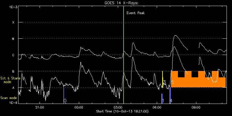 EIS Observation timeline overlay to GOES-Xray curve Code 1" 2" 40" 266" EIS Observations list for this event: STUDY ACRONYM ID DATE OBSERVED DESCRIPTION NOAA# TARGET 0 eis_eitwave_context | 36768 | 2013/10/10 22:49:54 | HOP 180 (EIT wave) on AR11861 | | Quiet Sun TIMELINE ID DATE OBSERVED FITS FILE XCEN (+W/-E) YCEN (+N/-S) DUR ----------------------------------------------------------------------------------------------------------------- 36768 | 2013/10/10 22:49:54.000 | eis_l0_20131010_224954.fits.gz | -383.27 | -147.45 | 1m32s 1 PRY_slot_contextLITE | 36737 | 2013/10/11 06:21:09 | Daily pointing monitoring | | Active Region TIMELINE ID DATE OBSERVED FITS FILE XCEN (+W/-E) YCEN (+N/-S) DUR ----------------------------------------------------------------------------------------------------------------- 36737 | 2013/10/11 06:21:09.000 | eis_l0_20131011_062109.fits.gz | -15.29 | -0.58 | 2m56s 2 Alignment_266 | 36738 | 2013/10/11 06:24:45 | Daily pointing monitoring | | Quiet Sun TIMELINE ID DATE OBSERVED FITS FILE XCEN (+W/-E) YCEN (+N/-S) DUR ----------------------------------------------------------------------------------------------------------------- 36738 | 2013/10/11 06:24:45.000 | eis_l0_20131011_062445.fits.gz | -132.49 | -0.50 | 1m22s 3 XRT_synop_AIA | 36739 | 2013/10/11 06:27:26 | Daily pointing monitoring | | Quiet Sun TIMELINE ID DATE OBSERVED FITS FILE XCEN (+W/-E) YCEN (+N/-S) DUR ----------------------------------------------------------------------------------------------------------------- 36739 | 2013/10/11 06:27:26.000 | eis_l0_20131011_062726.fits.gz | -132.41 | -0.50 | 10s 4 eis_eitwave_context | 36769 | 2013/10/11 06:57:38 | HOP 180 (EIT wave) on AR11861 | | Quiet Sun TIMELINE ID DATE OBSERVED FITS FILE XCEN (+W/-E) YCEN (+N/-S) DUR ----------------------------------------------------------------------------------------------------------------- 36769 | 2013/10/11 06:57:38.000 | eis_l0_20131011_065738.fits.gz | -315.45 | -150.23 | 1m32s 36769 | 2013/10/11 06:59:14.000 | eis_l0_20131011_065914.fits.gz | -315.29 | -150.15 | 1m32s 36769 | 2013/10/11 07:00:49.000 | eis_l0_20131011_070049.fits.gz | -315.06 | -150.38 | 1m32s 5 eis_eitwave_obssns | 36773 | 2013/10/11 07:04:22 | HOP 180 (EIT wave) on AR11861 | | Quiet Sun TIMELINE ID DATE OBSERVED FITS FILE XCEN (+W/-E) YCEN (+N/-S) DUR ----------------------------------------------------------------------------------------------------------------- 36773 | 2013/10/11 07:04:22.000 | eis_l0_20131011_070422.fits.gz | -285.56 | -126.23 | 31m15s 36773 | 2013/10/11 07:35:41.000 | eis_l0_20131011_073541.fits.gz | -281.15 | -126.23 | 31m15s 36773 | 2013/10/11 08:06:59.000 | eis_l0_20131011_080659.fits.gz | -276.75 | -126.38 | 31m15s 36773 | 2013/10/11 08:38:18.000 | eis_l0_20131011_083818.fits.gz | -272.35 | -126.61 | 31m15s 36773 | 2013/10/11 09:09:36.000 | eis_l0_20131011_090936.fits.gz | -267.87 | -126.46 | 31m15s 36773 | 2013/10/11 09:40:54.000 | eis_l0_20131011_094054.fits.gz | -263.39 | -126.61 | 31m15s 36773 | 2013/10/11 10:12:13.000 | eis_l0_20131011_101213.fits.gz | -258.91 | -127.15 | 31m14s 36773 | 2013/10/11 10:43:31.000 | eis_l0_20131011_104331.fits.gz | -254.43 | -127.23 | 31m16s : Check study information : Download file : View thumbnails For this event, also check for: