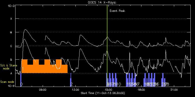 EIS Observation timeline overlay to GOES-Xray curve Code 1" 2" 40" 266" EIS Observations list for this event: STUDY ACRONYM ID DATE OBSERVED DESCRIPTION NOAA# TARGET 0 eis_eitwave_context | 36769 | 2013/10/11 06:57:38 | HOP 180 (EIT wave) on AR11861 | | Quiet Sun TIMELINE ID DATE OBSERVED FITS FILE XCEN (+W/-E) YCEN (+N/-S) DUR ----------------------------------------------------------------------------------------------------------------- 36769 | 2013/10/11 06:57:38.000 | eis_l0_20131011_065738.fits.gz | -315.45 | -150.23 | 1m32s 36769 | 2013/10/11 06:59:14.000 | eis_l0_20131011_065914.fits.gz | -315.29 | -150.15 | 1m32s 36769 | 2013/10/11 07:00:49.000 | eis_l0_20131011_070049.fits.gz | -315.06 | -150.38 | 1m32s 1 eis_eitwave_obssns | 36773 | 2013/10/11 07:04:22 | HOP 180 (EIT wave) on AR11861 | | Quiet Sun TIMELINE ID DATE OBSERVED FITS FILE XCEN (+W/-E) YCEN (+N/-S) DUR ----------------------------------------------------------------------------------------------------------------- 36773 | 2013/10/11 07:04:22.000 | eis_l0_20131011_070422.fits.gz | -285.56 | -126.23 | 31m15s 36773 | 2013/10/11 07:35:41.000 | eis_l0_20131011_073541.fits.gz | -281.15 | -126.23 | 31m15s 36773 | 2013/10/11 08:06:59.000 | eis_l0_20131011_080659.fits.gz | -276.75 | -126.38 | 31m15s 36773 | 2013/10/11 08:38:18.000 | eis_l0_20131011_083818.fits.gz | -272.35 | -126.61 | 31m15s 36773 | 2013/10/11 09:09:36.000 | eis_l0_20131011_090936.fits.gz | -267.87 | -126.46 | 31m15s 36773 | 2013/10/11 09:40:54.000 | eis_l0_20131011_094054.fits.gz | -263.39 | -126.61 | 31m15s 36773 | 2013/10/11 10:12:13.000 | eis_l0_20131011_101213.fits.gz | -258.91 | -127.15 | 31m14s 36773 | 2013/10/11 10:43:31.000 | eis_l0_20131011_104331.fits.gz | -254.43 | -127.23 | 31m16s 2 eis_eitwave_context | 36771 | 2013/10/11 11:31:11 | HOP 180 (EIT wave) on AR11861 | | Quiet Sun TIMELINE ID DATE OBSERVED FITS FILE XCEN (+W/-E) YCEN (+N/-S) DUR ----------------------------------------------------------------------------------------------------------------- 36771 | 2013/10/11 11:31:11.000 | eis_l0_20131011_113111.fits.gz | -276.59 | -151.46 | 1m32s 36771 | 2013/10/11 11:32:47.000 | eis_l0_20131011_113247.fits.gz | -276.28 | -151.46 | 1m32s 36771 | 2013/10/11 11:34:23.000 | eis_l0_20131011_113423.fits.gz | -276.05 | -151.39 | 1m32s 3 full_sun_slot_scan_2 | 36740 | 2013/10/11 14:48:13 | Joint full-sun mosaic obs. with SST/CR | | Quiet Sun TIMELINE ID DATE OBSERVED FITS FILE XCEN (+W/-E) YCEN (+N/-S) DUR ----------------------------------------------------------------------------------------------------------------- 36740 | 2013/10/11 14:48:13.000 | eis_l0_20131011_144813.fits.gz | 920.72 | 185.58 | 5m27s 4 full_sun_slot_scan_2 | 36741 | 2013/10/11 14:53:45 | Joint full-sun mosaic obs. with SST/CR | 1862 | Quiet Sun TIMELINE ID DATE OBSERVED FITS FILE XCEN (+W/-E) YCEN (+N/-S) DUR ----------------------------------------------------------------------------------------------------------------- 36741 | 2013/10/11 14:53:45.000 | eis_l0_20131011_145345.fits.gz | 920.72 | -286.50 | 5m27s 5 full_sun_slot_scan_2 | 36742 | 2013/10/11 15:04:13 | Joint full-sun mosaic obs. with SST/CR | 1856 | Quiet Sun TIMELINE ID DATE OBSERVED FITS FILE XCEN (+W/-E) YCEN (+N/-S) DUR ----------------------------------------------------------------------------------------------------------------- 36742 | 2013/10/11 15:04:13.000 | eis_l0_20131011_150413.fits.gz | 452.68 | 185.50 | 5m27s 6 full_sun_slot_scan_2 | 36743 | 2013/10/11 15:09:45 | Joint full-sun mosaic obs. with SST/CR | 1857 | Quiet Sun TIMELINE ID DATE OBSERVED FITS FILE XCEN (+W/-E) YCEN (+N/-S) DUR ----------------------------------------------------------------------------------------------------------------- 36743 | 2013/10/11 15:09:45.000 | eis_l0_20131011_150945.fits.gz | 452.75 | -286.50 | 5m27s 7 full_sun_slot_scan_2 | 36744 | 2013/10/11 15:20:13 | Joint full-sun mosaic obs. with SST/CR | 1867 | Quiet Sun TIMELINE ID DATE OBSERVED FITS FILE XCEN (+W/-E) YCEN (+N/-S) DUR ----------------------------------------------------------------------------------------------------------------- 36744 | 2013/10/11 15:20:13.000 | eis_l0_20131011_152013.fits.gz | -15.37 | 185.65 | 5m28s 8 full_sun_slot_scan_2 | 36745 | 2013/10/11 15:25:46 | Joint full-sun mosaic obs. with SST/CR | 1863 | Quiet Sun TIMELINE ID DATE OBSERVED FITS FILE XCEN (+W/-E) YCEN (+N/-S) DUR ----------------------------------------------------------------------------------------------------------------- 36745 | 2013/10/11 15:25:46.000 | eis_l0_20131011_152546.fits.gz | -15.21 | -286.42 | 5m27s 9 full_sun_slot_scan_2 | 36746 | 2013/10/11 15:36:13 | Joint full-sun mosaic obs. with SST/CR | | Quiet Sun TIMELINE ID DATE OBSERVED FITS FILE XCEN (+W/-E) YCEN (+N/-S) DUR ----------------------------------------------------------------------------------------------------------------- 36746 | 2013/10/11 15:36:13.000 | eis_l0_20131011_153613.fits.gz | -483.26 | 185.58 | 5m27s 10 full_sun_slot_scan_2 | 36747 | 2013/10/11 15:41:46 | Joint full-sun mosaic obs. with SST/CR | 1861 | Quiet Sun TIMELINE ID DATE OBSERVED FITS FILE XCEN (+W/-E) YCEN (+N/-S) DUR ----------------------------------------------------------------------------------------------------------------- 36747 | 2013/10/11 15:41:46.000 | eis_l0_20131011_154146.fits.gz | -483.18 | -286.50 | 5m26s 11 full_sun_slot_scan_2 | 36748 | 2013/10/11 16:36:13 | Joint full-sun mosaic obs. with SST/CR | | Quiet Sun TIMELINE ID DATE OBSERVED FITS FILE XCEN (+W/-E) YCEN (+N/-S) DUR ----------------------------------------------------------------------------------------------------------------- 36748 | 2013/10/11 16:36:13.000 | eis_l0_20131011_163613.fits.gz | -9884.69 | -9777.20 | 5m27s 12 full_sun_slot_scan_2 | 36749 | 2013/10/11 16:41:45 | Joint full-sun mosaic obs. with SST/CR | | Quiet Sun TIMELINE ID DATE OBSERVED FITS FILE XCEN (+W/-E) YCEN (+N/-S) DUR ---------------------------------------------------------------