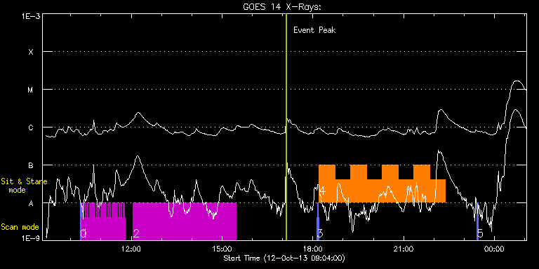 EIS Observation timeline overlay to GOES-Xray curve Code 1" 2" 40" 266" EIS Observations list for this event: STUDY ACRONYM ID DATE OBSERVED DESCRIPTION NOAA# TARGET 0 PRY_slot_contextLITE | 36774 | 2013/10/12 10:18:27 | Context for Observations of AR 11861 | 1861 | Active Region TIMELINE ID DATE OBSERVED FITS FILE XCEN (+W/-E) YCEN (+N/-S) DUR ----------------------------------------------------------------------------------------------------------------- 36774 | 2013/10/12 10:18:27.000 | eis_l0_20131012_101827.fits.gz | -74.69 | -258.74 | 2m57s 1 PRY_flare_1 | 36775 | 2013/10/12 10:21:35 | Observations of AR 11861 | | Flare TIMELINE ID DATE OBSERVED FITS FILE XCEN (+W/-E) YCEN (+N/-S) DUR ----------------------------------------------------------------------------------------------------------------- 36775 | 2013/10/12 10:21:35.000 | eis_l0_20131012_102135.fits.gz | -78.40 | -215.89 | 2m11s 36775 | 2013/10/12 10:23:49.000 | eis_l0_20131012_102349.fits.gz | -78.16 | -215.74 | 2m11s 36775 | 2013/10/12 10:26:03.000 | eis_l0_20131012_102603.fits.gz | -77.70 | -215.89 | 2m11s 36775 | 2013/10/12 10:28:16.000 | eis_l0_20131012_102816.fits.gz | -77.47 | -215.82 | 2m11s 36775 | 2013/10/12 10:30:30.000 | eis_l0_20131012_103030.fits.gz | -77.08 | -215.89 | 2m11s 36775 | 2013/10/12 10:32:44.000 | eis_l0_20131012_103244.fits.gz | -76.85 | -215.82 | 2m11s 36775 | 2013/10/12 10:34:58.000 | eis_l0_20131012_103458.fits.gz | -76.46 | -215.82 | 2m10s 36775 | 2013/10/12 10:37:11.000 | eis_l0_20131012_103711.fits.gz | -76.08 | -215.82 | 2m11s 36775 | 2013/10/12 10:39:25.000 | eis_l0_20131012_103925.fits.gz | -75.69 | -215.74 | 2m11s 36775 | 2013/10/12 10:41:39.000 | eis_l0_20131012_104139.fits.gz | -75.38 | -215.74 | 2m11s 36775 | 2013/10/12 10:43:53.000 | eis_l0_20131012_104353.fits.gz | -75.00 | -215.89 | 2m11s 36775 | 2013/10/12 10:46:07.000 | eis_l0_20131012_104607.fits.gz | -74.77 | -215.82 | 2m11s 36775 | 2013/10/12 10:48:21.000 | eis_l0_20131012_104821.fits.gz | -74.30 | -215.89 | 2m11s 36775 | 2013/10/12 10:50:35.000 | eis_l0_20131012_105035.fits.gz | -73.99 | -215.74 | 2m11s 36775 | 2013/10/12 10:52:49.000 | eis_l0_20131012_105249.fits.gz | -73.76 | -215.82 | 2m11s 36775 | 2013/10/12 10:55:03.000 | eis_l0_20131012_105503.fits.gz | -73.22 | -215.74 | 2m11s 36775 | 2013/10/12 10:57:17.000 | eis_l0_20131012_105717.fits.gz | -72.99 | -215.89 | 2m11s 36775 | 2013/10/12 10:59:31.000 | eis_l0_20131012_105931.fits.gz | -72.60 | -215.89 | 2m11s 36775 | 2013/10/12 11:01:45.000 | eis_l0_20131012_110145.fits.gz | -72.29 | -215.89 | 2m11s 36775 | 2013/10/12 11:03:59.000 | eis_l0_20131012_110359.fits.gz | -71.91 | -215.74 | 2m10s 36775 | 2013/10/12 11:06:12.000 | eis_l0_20131012_110612.fits.gz | -71.60 | -215.74 | 2m11s 36775 | 2013/10/12 11:08:26.000 | eis_l0_20131012_110826.fits.gz | -71.29 | -215.66 | 2m11s 36775 | 2013/10/12 11:10:40.000 | eis_l0_20131012_111040.fits.gz | -70.90 | -215.82 | 2m11s 36775 | 2013/10/12 11:12:54.000 | eis_l0_20131012_111254.fits.gz | -70.59 | -215.89 | 2m11s 36775 | 2013/10/12 11:15:07.000 | eis_l0_20131012_111507.fits.gz | -70.28 | -215.82 | 2m11s 36775 | 2013/10/12 11:17:21.000 | eis_l0_20131012_111721.fits.gz | -69.98 | -215.82 | 2m11s 36775 | 2013/10/12 11:19:35.000 | eis_l0_20131012_111935.fits.gz | -69.59 | -215.82 | 2m11s 36775 | 2013/10/12 11:21:49.000 | eis_l0_20131012_112149.fits.gz | -69.28 | -215.74 | 2m11s 36775 | 2013/10/12 11:24:03.000 | eis_l0_20131012_112403.fits.gz | -68.89 | -215.58 | 2m11s 36775 | 2013/10/12 11:26:16.000 | eis_l0_20131012_112616.fits.gz | -68.51 | -215.82 | 2m11s 36775 | 2013/10/12 11:28:30.000 | eis_l0_20131012_112830.fits.gz | -68.28 | -215.74 | 2m11s 36775 | 2013/10/12 11:30:44.000 | eis_l0_20131012_113044.fits.gz | -67.97 | -215.82 | 2m11s 36775 | 2013/10/12 11:32:58.000 | eis_l0_20131012_113258.fits.gz | -67.50 | -215.74 | 2m11s 36775 | 2013/10/12 11:35:12.000 | eis_l0_20131012_113512.fits.gz | -67.19 | -215.74 | 2m11s 36775 | 2013/10/12 11:37:26.000 | eis_l0_20131012_113726.fits.gz | -66.89 | -215.58 | 2m11s 36775 | 2013/10/12 11:39:39.000 | eis_l0_20131012_113939.fits.gz | -66.50 | -215.66 | 2m12s 36775 | 2013/10/12 11:41:54.000 | eis_l0_20131012_114154.fits.gz | -66.11 | -215.74 | 2m11s 36775 | 2013/10/12 11:44:07.000 | eis_l0_20131012_114407.fits.gz | -65.80 | -215.82 | 2m11s 36775 | 2013/10/12 11:46:21.000 | eis_l0_20131012_114621.fits.gz | -65.42 | -215.66 | 2m11s 2 HPW021_VEL_240x512v2 | 36776 | 2013/10/12 12:03:40 | Observations with IRIS of Coronal Hole | | Quiet Sun TIMELINE ID DATE OBSERVED FITS FILE XCEN (+W/-E) YCEN (+N/-S) DUR ----------------------------------------------------------------------------------------------------------------- 36776 | 2013/10/12 12:03:40.000 | eis_l0_20131012_120340.fits.gz | 310.38 | -127.19 | 3h23m48s 3 eis_eitwave_context | 36780 | 2013/10/12 18:07:34 | Context for HOP 180 on AR11861 | | Quiet Sun TIMELINE ID DATE OBSERVED FITS FILE XCEN (+W/-E) YCEN (+N/-S) DUR ----------------------------------------------------------------------------------------------------------------- 36780 | 2013/10/12 18:07:34.000 | eis_l0_20131012_180734.fits.gz | -25.74 | -57.74 | 1m32s 36780 | 2013/10/12 18:09:09.000 | eis_l0_20131012_180909.fits.gz | -25.35 | -57.66 | 1m32s 36780 | 2013/10/12 18:10:45.000 | eis_l0_20131012_181045.fits.gz | -25.20 | -57.66 | 1m32s 4 eis_eitwave_obssns | 36781 | 2013/10/12 18:12:43 | HOP 180 on AR11861 | | Quiet Sun TIMELINE ID DATE OBSERVED FITS FILE XCEN (+W/-E) YCEN (+N/-S) DUR ----------------------------------------------------------------------------------------------------------------- 36781 | 2013/10/12 18:12:43.000 | eis_l0_20131012_181243.fits.gz | 6.32 | -71.51 | 31m15s 36781 | 2013/10/12 18:44:01.000 | eis_l0_20131012_184401.fits.gz | 11.11 | -71.66 | 31m16s 36781 | 2013/10/12 19:15:20.000 | eis_l0_20131012_191520.fits.gz | 15.98 | -71.58 | 31m15s 36781 | 2013/10/12 19:46:39.000 | eis_l0_20131012_194639.fits.gz | 20.69 | -71.43 | 31m15s 36781 | 2013/10/12 20:17:57.000 | 
