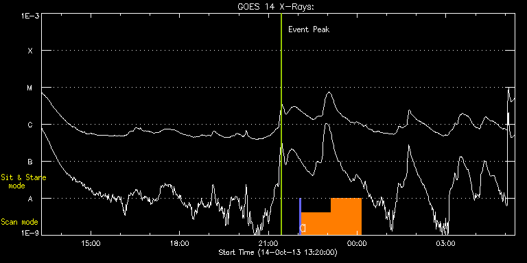 EIS Observation timeline overlay to GOES-Xray curve Code 1" 2" 40" 266" EIS Observations list for this event: STUDY ACRONYM ID DATE OBSERVED DESCRIPTION NOAA# TARGET 0 PRY_slot_contextLITE | 36777 | 2013/10/14 22:03:21 | Context for HOP 201 with IRIS | | Active Region TIMELINE ID DATE OBSERVED FITS FILE XCEN (+W/-E) YCEN (+N/-S) DUR ----------------------------------------------------------------------------------------------------------------- 36777 | 2013/10/14 22:03:21.000 | eis_l0_20131014_220321.fits.gz | 951.28 | 135.75 | 2m56s 1 EL_FULL_CCD_SINGLE | 36778 | 2013/10/14 22:06:43 | HOP 201 with IRIS | | Active Region TIMELINE ID DATE OBSERVED FITS FILE XCEN (+W/-E) YCEN (+N/-S) DUR ----------------------------------------------------------------------------------------------------------------- 36778 | 2013/10/14 22:06:43.000 | eis_l0_20131014_220643.fits.gz | 1033.16 | 130.67 | 1h0m21s 36778 | 2013/10/14 23:07:31.000 | eis_l0_20131014_230731.fits.gz | 1033.16 | 130.75 | 1h0m21s : Check study information : Download file : View thumbnails For this event, also check for: