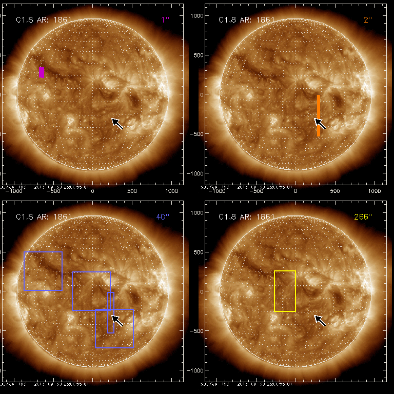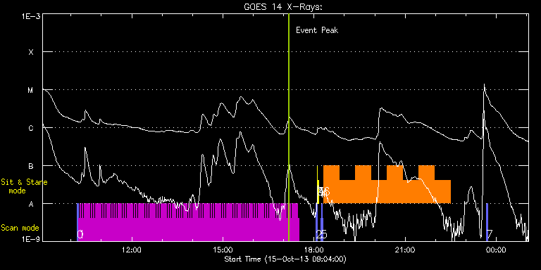 EIS Observation timeline overlay to GOES-Xray curve Code 1" 2" 40" 266" EIS Observations list for this event: STUDY ACRONYM ID DATE OBSERVED DESCRIPTION NOAA# TARGET 0 PRY_slot_contextLITE | 36799 | 2013/10/15 10:11:50 | Context for fast scan observations | 1868 | Active Region TIMELINE ID DATE OBSERVED FITS FILE XCEN (+W/-E) YCEN (+N/-S) DUR ----------------------------------------------------------------------------------------------------------------- 36799 | 2013/10/15 10:11:50.000 | eis_l0_20131015_101150.fits.gz | -627.17 | 252.87 | 2m56s 1 PRY_flare_1 | 36800 | 2013/10/15 10:14:58 | Fast scan observations on AR11868 | | Flare TIMELINE ID DATE OBSERVED FITS FILE XCEN (+W/-E) YCEN (+N/-S) DUR ----------------------------------------------------------------------------------------------------------------- 36800 | 2013/10/15 10:14:58.000 | eis_l0_20131015_101458.fits.gz | -671.38 | 276.64 | 2m11s 36800 | 2013/10/15 10:17:12.000 | eis_l0_20131015_101712.fits.gz | -671.15 | 276.87 | 2m11s 36800 | 2013/10/15 10:19:26.000 | eis_l0_20131015_101926.fits.gz | -671.00 | 276.72 | 2m11s 36800 | 2013/10/15 10:21:40.000 | eis_l0_20131015_102140.fits.gz | -670.77 | 276.72 | 2m11s 36800 | 2013/10/15 10:23:54.000 | eis_l0_20131015_102354.fits.gz | -670.46 | 276.72 | 2m10s 36800 | 2013/10/15 10:26:07.000 | eis_l0_20131015_102607.fits.gz | -670.30 | 276.56 | 2m11s 36800 | 2013/10/15 10:28:21.000 | eis_l0_20131015_102821.fits.gz | -669.99 | 276.56 | 2m11s 36800 | 2013/10/15 10:30:35.000 | eis_l0_20131015_103035.fits.gz | -669.68 | 276.49 | 2m11s 36800 | 2013/10/15 10:32:48.000 | eis_l0_20131015_103248.fits.gz | -669.53 | 276.64 | 2m12s 36800 | 2013/10/15 10:35:02.000 | eis_l0_20131015_103502.fits.gz | -669.38 | 276.56 | 2m11s 36800 | 2013/10/15 10:37:16.000 | eis_l0_20131015_103716.fits.gz | -669.14 | 276.49 | 2m12s 36800 | 2013/10/15 10:39:30.000 | eis_l0_20131015_103930.fits.gz | -668.83 | 276.49 | 2m11s 36800 | 2013/10/15 10:41:44.000 | eis_l0_20131015_104144.fits.gz | -668.60 | 276.49 | 2m11s 36800 | 2013/10/15 10:43:58.000 | eis_l0_20131015_104358.fits.gz | -668.45 | 276.41 | 2m11s 36800 | 2013/10/15 10:46:12.000 | eis_l0_20131015_104612.fits.gz | -668.14 | 276.41 | 2m11s 36800 | 2013/10/15 10:48:25.000 | eis_l0_20131015_104825.fits.gz | -667.91 | 276.41 | 2m12s 36800 | 2013/10/15 10:50:39.000 | eis_l0_20131015_105039.fits.gz | -667.67 | 276.41 | 2m11s 36800 | 2013/10/15 10:52:53.000 | eis_l0_20131015_105253.fits.gz | -667.44 | 276.18 | 2m11s 36800 | 2013/10/15 10:55:07.000 | eis_l0_20131015_105507.fits.gz | -667.14 | 276.10 | 2m11s 36800 | 2013/10/15 10:57:21.000 | eis_l0_20131015_105721.fits.gz | -666.90 | 276.18 | 2m11s 36800 | 2013/10/15 10:59:34.000 | eis_l0_20131015_105934.fits.gz | -666.75 | 276.33 | 2m12s 36800 | 2013/10/15 11:01:48.000 | eis_l0_20131015_110148.fits.gz | -666.52 | 276.25 | 2m11s 36800 | 2013/10/15 11:04:02.000 | eis_l0_20131015_110402.fits.gz | -666.21 | 276.33 | 2m11s 36800 | 2013/10/15 11:06:16.000 | eis_l0_20131015_110616.fits.gz | -665.98 | 276.18 | 2m11s 36800 | 2013/10/15 11:08:30.000 | eis_l0_20131015_110830.fits.gz | -665.67 | 276.25 | 2m11s 36800 | 2013/10/15 11:10:44.000 | eis_l0_20131015_111044.fits.gz | -665.51 | 276.10 | 2m11s 36800 | 2013/10/15 11:12:58.000 | eis_l0_20131015_111258.fits.gz | -665.36 | 276.18 | 2m11s 36800 | 2013/10/15 11:15:11.000 | eis_l0_20131015_111511.fits.gz | -664.97 | 276.10 | 2m12s 36800 | 2013/10/15 11:17:25.000 | eis_l0_20131015_111725.fits.gz | -664.82 | 276.18 | 2m11s 36800 | 2013/10/15 11:19:39.000 | eis_l0_20131015_111939.fits.gz | -664.51 | 276.18 | 2m11s 36800 | 2013/10/15 11:21:53.000 | eis_l0_20131015_112153.fits.gz | -664.28 | 275.95 | 2m11s 36800 | 2013/10/15 11:24:07.000 | eis_l0_20131015_112407.fits.gz | -664.04 | 275.95 | 2m11s 36800 | 2013/10/15 11:26:21.000 | eis_l0_20131015_112621.fits.gz | -663.89 | 276.02 | 2m11s 36800 | 2013/10/15 11:28:35.000 | eis_l0_20131015_112835.fits.gz | -663.58 | 276.10 | 2m11s 36800 | 2013/10/15 11:30:48.000 | eis_l0_20131015_113048.fits.gz | -663.35 | 275.95 | 2m11s 36800 | 2013/10/15 11:33:02.000 | eis_l0_20131015_113302.fits.gz | -663.12 | 275.95 | 2m11s 36800 | 2013/10/15 11:35:16.000 | eis_l0_20131015_113516.fits.gz | -662.81 | 276.10 | 2m11s 36800 | 2013/10/15 11:37:30.000 | eis_l0_20131015_113730.fits.gz | -662.65 | 276.02 | 2m11s 36800 | 2013/10/15 11:39:43.000 | eis_l0_20131015_113943.fits.gz | -662.42 | 275.95 | 2m12s 36800 | 2013/10/15 11:41:57.000 | eis_l0_20131015_114157.fits.gz | -662.19 | 275.95 | 2m12s 36800 | 2013/10/15 11:44:11.000 | eis_l0_20131015_114411.fits.gz | -661.88 | 275.87 | 2m11s 36800 | 2013/10/15 11:46:25.000 | eis_l0_20131015_114625.fits.gz | -661.73 | 275.95 | 2m11s 36800 | 2013/10/15 11:48:39.000 | eis_l0_20131015_114839.fits.gz | -661.42 | 276.02 | 2m11s 36800 | 2013/10/15 11:50:53.000 | eis_l0_20131015_115053.fits.gz | -661.19 | 275.79 | 2m11s 36800 | 2013/10/15 11:53:07.000 | eis_l0_20131015_115307.fits.gz | -660.96 | 275.95 | 2m11s 36800 | 2013/10/15 11:55:20.000 | eis_l0_20131015_115520.fits.gz | -660.80 | 275.79 | 2m12s 36800 | 2013/10/15 11:57:34.000 | eis_l0_20131015_115734.fits.gz | -660.41 | 275.87 | 2m11s 36800 | 2013/10/15 11:59:48.000 | eis_l0_20131015_115948.fits.gz | -660.26 | 275.95 | 2m11s 36800 | 2013/10/15 12:02:02.000 | eis_l0_20131015_120202.fits.gz | -660.03 | 275.95 | 2m11s 36800 | 2013/10/15 12:04:16.000 | eis_l0_20131015_120416.fits.gz | -659.72 | 275.79 | 2m11s 36800 | 2013/10/15 12:06:30.000 | eis_l0_20131015_120630.fits.gz | -659.56 | 275.71 | 2m11s 36800 | 2013/10/15 12:08:44.000 | eis_l0_20131015_120844.fits.gz | -659.26 | 275.71 | 2m11s 36800 | 2013/10/15 12:10:57.000 | eis_l0_20131015_121057.fits.gz | -658.95 | 275.71 | 2m11s 36800 | 2013/10/15 12:13:11.000 | eis_l0_20131015_121311.fits.gz | -658.87 | 275.64 | 2m11s 36800 | 2013/10/15 12:15:25.000 | eis_l0_20131015_121525.fits.gz | -658.56 | 275.56 | 2m11s 36800 | 2013/10/15 12:17:39.000 | eis_l0_20131015_121739.fits.gz | -658.25 | 275.64 | 2m11s 36800 | 2013/10/15 12:19:53