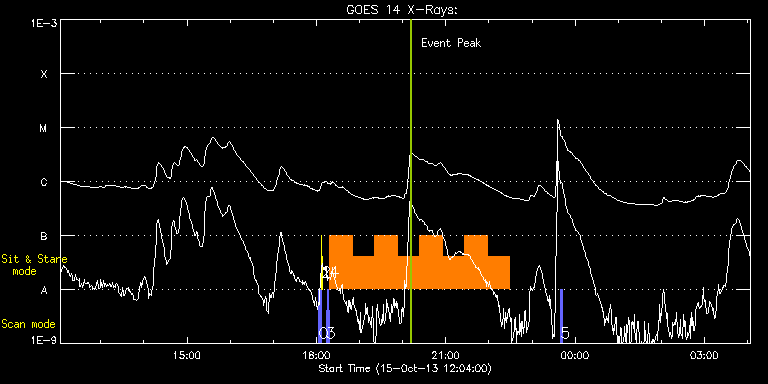 EIS Observation timeline overlay to GOES-Xray curve Code 1" 2" 40" 266" EIS Observations list for this event: STUDY ACRONYM ID DATE OBSERVED DESCRIPTION NOAA# TARGET 0 PRY_slot_contextLITE | 36801 | 2013/10/15 18:03:35 | Daily pointing monitoring | | Active Region TIMELINE ID DATE OBSERVED FITS FILE XCEN (+W/-E) YCEN (+N/-S) DUR ----------------------------------------------------------------------------------------------------------------- 36801 | 2013/10/15 18:03:35.000 | eis_l0_20131015_180335.fits.gz | -15.21 | -0.35 | 2m56s 1 XRT_synop_AIA | 36802 | 2013/10/15 18:06:49 | Daily pointing monitoring | | Quiet Sun TIMELINE ID DATE OBSERVED FITS FILE XCEN (+W/-E) YCEN (+N/-S) DUR ----------------------------------------------------------------------------------------------------------------- 36802 | 2013/10/15 18:06:49.000 | eis_l0_20131015_180649.fits.gz | -132.49 | -0.42 | 11s 2 Alignment_266 | 36803 | 2013/10/15 18:07:32 | Daily pointing monitoring | | Quiet Sun TIMELINE ID DATE OBSERVED FITS FILE XCEN (+W/-E) YCEN (+N/-S) DUR ----------------------------------------------------------------------------------------------------------------- 36803 | 2013/10/15 18:07:32.000 | eis_l0_20131015_180732.fits.gz | -132.57 | -0.42 | 1m22s 3 eis_eitwave_context | 36795 | 2013/10/15 18:13:28 | Context for HOP 180 on AR11861 | | Quiet Sun TIMELINE ID DATE OBSERVED FITS FILE XCEN (+W/-E) YCEN (+N/-S) DUR ----------------------------------------------------------------------------------------------------------------- 36795 | 2013/10/15 18:13:28.000 | eis_l0_20131015_181328.fits.gz | 232.32 | -274.81 | 1m32s 36795 | 2013/10/15 18:15:03.000 | eis_l0_20131015_181503.fits.gz | 232.48 | -274.89 | 1m32s 36795 | 2013/10/15 18:16:39.000 | eis_l0_20131015_181639.fits.gz | 232.63 | -274.65 | 1m32s 4 eis_eitwave_obssns | 36796 | 2013/10/15 18:18:37 | HOP 180 on AR11861 | 1864 | Quiet Sun TIMELINE ID DATE OBSERVED FITS FILE XCEN (+W/-E) YCEN (+N/-S) DUR ----------------------------------------------------------------------------------------------------------------- 36796 | 2013/10/15 18:18:37.000 | eis_l0_20131015_181837.fits.gz | 278.80 | -275.58 | 31m14s 36796 | 2013/10/15 18:49:55.000 | eis_l0_20131015_184955.fits.gz | 282.97 | -275.42 | 31m15s 36796 | 2013/10/15 19:21:14.000 | eis_l0_20131015_192114.fits.gz | 287.15 | -275.42 | 31m15s 36796 | 2013/10/15 19:52:33.000 | eis_l0_20131015_195233.fits.gz | 291.32 | -275.11 | 31m15s 36796 | 2013/10/15 20:23:52.000 | eis_l0_20131015_202352.fits.gz | 295.41 | -275.04 | 31m14s 36796 | 2013/10/15 20:55:10.000 | eis_l0_20131015_205510.fits.gz | 299.58 | -274.88 | 31m15s 36796 | 2013/10/15 21:26:28.000 | eis_l0_20131015_212628.fits.gz | 303.75 | -274.73 | 31m16s 36796 | 2013/10/15 21:57:47.000 | eis_l0_20131015_215747.fits.gz | 307.77 | -274.57 | 31m16s 5 PRY_slot_contextLITE | 36805 | 2013/10/15 23:39:50 | Context for fast scans on AR11861 | 1864 | Active Region TIMELINE ID DATE OBSERVED FITS FILE XCEN (+W/-E) YCEN (+N/-S) DUR ----------------------------------------------------------------------------------------------------------------- 36805 | 2013/10/15 23:39:50.000 | eis_l0_20131015_233950.fits.gz | 274.85 | -474.95 | 2m56s : Check study information : Download file : View thumbnails For this event, also check for: