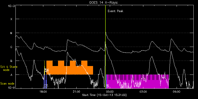 EIS Observation timeline overlay to GOES-Xray curve Code 1" 2" 40" 266" EIS Observations list for this event: STUDY ACRONYM ID DATE OBSERVED DESCRIPTION NOAA# TARGET 0 PRY_slot_contextLITE | 36801 | 2013/10/15 18:03:35 | Daily pointing monitoring | | Active Region TIMELINE ID DATE OBSERVED FITS FILE XCEN (+W/-E) YCEN (+N/-S) DUR ----------------------------------------------------------------------------------------------------------------- 36801 | 2013/10/15 18:03:35.000 | eis_l0_20131015_180335.fits.gz | -15.21 | -0.35 | 2m56s 1 XRT_synop_AIA | 36802 | 2013/10/15 18:06:49 | Daily pointing monitoring | | Quiet Sun TIMELINE ID DATE OBSERVED FITS FILE XCEN (+W/-E) YCEN (+N/-S) DUR ----------------------------------------------------------------------------------------------------------------- 36802 | 2013/10/15 18:06:49.000 | eis_l0_20131015_180649.fits.gz | -132.49 | -0.42 | 11s 2 Alignment_266 | 36803 | 2013/10/15 18:07:32 | Daily pointing monitoring | | Quiet Sun TIMELINE ID DATE OBSERVED FITS FILE XCEN (+W/-E) YCEN (+N/-S) DUR ----------------------------------------------------------------------------------------------------------------- 36803 | 2013/10/15 18:07:32.000 | eis_l0_20131015_180732.fits.gz | -132.57 | -0.42 | 1m22s 3 eis_eitwave_context | 36795 | 2013/10/15 18:13:28 | Context for HOP 180 on AR11861 | | Quiet Sun TIMELINE ID DATE OBSERVED FITS FILE XCEN (+W/-E) YCEN (+N/-S) DUR ----------------------------------------------------------------------------------------------------------------- 36795 | 2013/10/15 18:13:28.000 | eis_l0_20131015_181328.fits.gz | 232.32 | -274.81 | 1m32s 36795 | 2013/10/15 18:15:03.000 | eis_l0_20131015_181503.fits.gz | 232.48 | -274.89 | 1m32s 36795 | 2013/10/15 18:16:39.000 | eis_l0_20131015_181639.fits.gz | 232.63 | -274.65 | 1m32s 4 eis_eitwave_obssns | 36796 | 2013/10/15 18:18:37 | HOP 180 on AR11861 | 1864 | Quiet Sun TIMELINE ID DATE OBSERVED FITS FILE XCEN (+W/-E) YCEN (+N/-S) DUR ----------------------------------------------------------------------------------------------------------------- 36796 | 2013/10/15 18:18:37.000 | eis_l0_20131015_181837.fits.gz | 278.80 | -275.58 | 31m14s 36796 | 2013/10/15 18:49:55.000 | eis_l0_20131015_184955.fits.gz | 282.97 | -275.42 | 31m15s 36796 | 2013/10/15 19:21:14.000 | eis_l0_20131015_192114.fits.gz | 287.15 | -275.42 | 31m15s 36796 | 2013/10/15 19:52:33.000 | eis_l0_20131015_195233.fits.gz | 291.32 | -275.11 | 31m15s 36796 | 2013/10/15 20:23:52.000 | eis_l0_20131015_202352.fits.gz | 295.41 | -275.04 | 31m14s 36796 | 2013/10/15 20:55:10.000 | eis_l0_20131015_205510.fits.gz | 299.58 | -274.88 | 31m15s 36796 | 2013/10/15 21:26:28.000 | eis_l0_20131015_212628.fits.gz | 303.75 | -274.73 | 31m16s 36796 | 2013/10/15 21:57:47.000 | eis_l0_20131015_215747.fits.gz | 307.77 | -274.57 | 31m16s 5 PRY_slot_contextLITE | 36805 | 2013/10/15 23:39:50 | Context for fast scans on AR11861 | 1864 | Active Region TIMELINE ID DATE OBSERVED FITS FILE XCEN (+W/-E) YCEN (+N/-S) DUR ----------------------------------------------------------------------------------------------------------------- 36805 | 2013/10/15 23:39:50.000 | eis_l0_20131015_233950.fits.gz | 274.85 | -474.95 | 2m56s 6 PRY_flare_1 | 36806 | 2013/10/15 23:42:58 | Fast scans on AR1161 | 1864 | Flare TIMELINE ID DATE OBSERVED FITS FILE XCEN (+W/-E) YCEN (+N/-S) DUR ----------------------------------------------------------------------------------------------------------------- 36806 | 2013/10/15 23:42:58.000 | eis_l0_20131015_234258.fits.gz | 322.41 | -448.03 | 2m11s 36806 | 2013/10/15 23:45:12.000 | eis_l0_20131015_234512.fits.gz | 322.72 | -448.11 | 2m11s 36806 | 2013/10/15 23:47:26.000 | eis_l0_20131015_234726.fits.gz | 322.88 | -447.95 | 2m11s 36806 | 2013/10/15 23:49:40.000 | eis_l0_20131015_234940.fits.gz | 323.18 | -447.95 | 2m11s 36806 | 2013/10/15 23:51:53.000 | eis_l0_20131015_235153.fits.gz | 323.49 | -448.03 | 2m12s 36806 | 2013/10/15 23:54:07.000 | eis_l0_20131015_235407.fits.gz | 323.80 | -447.88 | 2m11s 36806 | 2013/10/15 23:56:21.000 | eis_l0_20131015_235621.fits.gz | 324.11 | -448.03 | 2m11s 36806 | 2013/10/15 23:58:35.000 | eis_l0_20131015_235835.fits.gz | 324.27 | -448.03 | 2m11s 36806 | 2013/10/16 00:00:49.000 | eis_l0_20131016_000049.fits.gz | 324.65 | -447.88 | 2m11s 36806 | 2013/10/16 00:03:03.000 | eis_l0_20131016_000303.fits.gz | 324.96 | -447.95 | 2m11s 36806 | 2013/10/16 00:05:17.000 | eis_l0_20131016_000517.fits.gz | 325.27 | -448.03 | 2m11s 36806 | 2013/10/16 00:07:31.000 | eis_l0_20131016_000731.fits.gz | 325.58 | -447.88 | 2m11s 36806 | 2013/10/16 00:09:44.000 | eis_l0_20131016_000944.fits.gz | 325.73 | -447.80 | 2m12s 36806 | 2013/10/16 00:11:59.000 | eis_l0_20131016_001159.fits.gz | 326.12 | -447.80 | 2m11s 36806 | 2013/10/16 00:14:13.000 | eis_l0_20131016_001413.fits.gz | 326.51 | -447.80 | 2m11s 36806 | 2013/10/16 00:16:27.000 | eis_l0_20131016_001627.fits.gz | 326.74 | -447.88 | 2m11s 36806 | 2013/10/16 00:18:40.000 | eis_l0_20131016_001840.fits.gz | 326.97 | -447.72 | 2m12s 36806 | 2013/10/16 00:20:54.000 | eis_l0_20131016_002054.fits.gz | 327.36 | -447.88 | 2m12s 36806 | 2013/10/16 00:23:08.000 | eis_l0_20131016_002308.fits.gz | 327.59 | -447.80 | 2m11s 36806 | 2013/10/16 00:25:22.000 | eis_l0_20131016_002522.fits.gz | 327.82 | -447.88 | 2m11s 36806 | 2013/10/16 00:27:35.000 | eis_l0_20131016_002735.fits.gz | 328.13 | -447.80 | 2m12s 36806 | 2013/10/16 00:29:49.000 | eis_l0_20131016_002949.fits.gz | 328.52 | -447.72 | 2m11s 36806 | 2013/10/16 00:32:03.000 | eis_l0_20131016_003203.fits.gz | 328.82 | -447.80 | 2m11s 36806 | 2013/10/16 00:34:17.000 | eis_l0_20131016_003417.fits.gz | 328.98 | -447.80 | 2m11s 36806 | 2013/10/16 00:36:31.000 | eis_l0_20131016_003631.fits.gz | 329.36 | -447.65 | 2m11s 36806 | 2013/10/16 00:38:44.000 | eis_l0_20131016_003844.fits.gz | 329.60 | -447.88 | 2m12s 36806 | 2013/10/16 00:40:58.000 | eis_l0_20131016_004058.fits.gz | 329.98 | -447.72 | 2m11s 36806 | 2013/10/16 00:43:12.000 | eis_l0_20131016