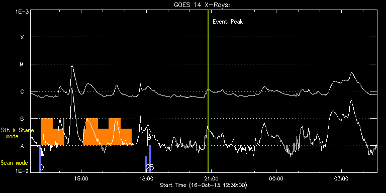 EIS Observation timeline overlay to GOES-Xray curve Code 1" 2" 40" 266" EIS Observations list for this event: STUDY ACRONYM ID DATE OBSERVED DESCRIPTION NOAA# TARGET 0 eis_eitwave_context | 36797 | 2013/10/16 13:03:41 | Context for HOP 180 on AR11861 | | Quiet Sun TIMELINE ID DATE OBSERVED FITS FILE XCEN (+W/-E) YCEN (+N/-S) DUR ----------------------------------------------------------------------------------------------------------------- 36797 | 2013/10/16 13:03:41.000 | eis_l0_20131016_130341.fits.gz | 423.61 | -275.01 | 1m32s 36797 | 2013/10/16 13:05:17.000 | eis_l0_20131016_130517.fits.gz | 423.85 | -275.01 | 1m32s 36797 | 2013/10/16 13:06:52.000 | eis_l0_20131016_130652.fits.gz | 423.92 | -275.01 | 1m33s 1 eis_eitwave_obssns | 36798 | 2013/10/16 13:08:50 | HOP 180 on AR11861 | | Quiet Sun TIMELINE ID DATE OBSERVED FITS FILE XCEN (+W/-E) YCEN (+N/-S) DUR ----------------------------------------------------------------------------------------------------------------- 36798 | 2013/10/16 13:08:50.000 | eis_l0_20131016_130850.fits.gz | 435.72 | -275.09 | 31m15s 36798 | 2013/10/16 13:40:08.000 | eis_l0_20131016_134008.fits.gz | 439.59 | -274.93 | 31m16s 36798 | 2013/10/16 14:11:27.000 | eis_l0_20131016_141127.fits.gz | 443.37 | -274.39 | 46s 36798 | 2013/10/16 15:05:28.000 | eis_l0_20131016_150528.fits.gz | 450.09 | -274.16 | 8m34s 36798 | 2013/10/16 15:14:06.000 | eis_l0_20131016_151406.fits.gz | 451.17 | -274.16 | 31m14s 36798 | 2013/10/16 15:45:24.000 | eis_l0_20131016_154524.fits.gz | 455.04 | -273.93 | 31m15s 36798 | 2013/10/16 16:16:43.000 | eis_l0_20131016_161643.fits.gz | 458.90 | -273.85 | 31m15s 36798 | 2013/10/16 16:48:01.000 | eis_l0_20131016_164801.fits.gz | 462.68 | -273.54 | 31m15s 2 PRY_slot_contextLITE | 36808 | 2013/10/16 17:57:50 | Daily pointing monitoring | | Active Region TIMELINE ID DATE OBSERVED FITS FILE XCEN (+W/-E) YCEN (+N/-S) DUR ----------------------------------------------------------------------------------------------------------------- 36808 | 2013/10/16 17:57:50.000 | eis_l0_20131016_175750.fits.gz | -15.37 | -0.50 | 2m57s 3 XRT_synop_AIA | 36809 | 2013/10/16 18:01:05 | Daily pointing monitoring | | Quiet Sun TIMELINE ID DATE OBSERVED FITS FILE XCEN (+W/-E) YCEN (+N/-S) DUR ----------------------------------------------------------------------------------------------------------------- 36809 | 2013/10/16 18:01:05.000 | eis_l0_20131016_180105.fits.gz | -132.57 | -0.50 | 10s 4 Alignment_266 | 36810 | 2013/10/16 18:01:20 | Daily pointing monitoring | | Quiet Sun TIMELINE ID DATE OBSERVED FITS FILE XCEN (+W/-E) YCEN (+N/-S) DUR ----------------------------------------------------------------------------------------------------------------- 36810 | 2013/10/16 18:01:20.000 | eis_l0_20131016_180120.fits.gz | -132.57 | -0.58 | 1m22s 5 PRY_slot_contextLITE | 36812 | 2013/10/16 18:07:56 | Context for fast scans | 1861 | Active Region TIMELINE ID DATE OBSERVED FITS FILE XCEN (+W/-E) YCEN (+N/-S) DUR ----------------------------------------------------------------------------------------------------------------- 36812 | 2013/10/16 18:07:56.000 | eis_l0_20131016_180756.fits.gz | 754.17 | -214.17 | 2m57s : Check study information : Download file : View thumbnails For this event, also check for: