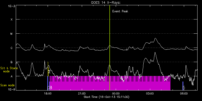 EIS Observation timeline overlay to GOES-Xray curve Code 1" 2" 40" 266" EIS Observations list for this event: STUDY ACRONYM ID DATE OBSERVED DESCRIPTION NOAA# TARGET 0 PRY_slot_contextLITE | 36808 | 2013/10/16 17:57:50 | Daily pointing monitoring | | Active Region TIMELINE ID DATE OBSERVED FITS FILE XCEN (+W/-E) YCEN (+N/-S) DUR ----------------------------------------------------------------------------------------------------------------- 36808 | 2013/10/16 17:57:50.000 | eis_l0_20131016_175750.fits.gz | -15.37 | -0.50 | 2m57s 1 XRT_synop_AIA | 36809 | 2013/10/16 18:01:05 | Daily pointing monitoring | | Quiet Sun TIMELINE ID DATE OBSERVED FITS FILE XCEN (+W/-E) YCEN (+N/-S) DUR ----------------------------------------------------------------------------------------------------------------- 36809 | 2013/10/16 18:01:05.000 | eis_l0_20131016_180105.fits.gz | -132.57 | -0.50 | 10s 2 Alignment_266 | 36810 | 2013/10/16 18:01:20 | Daily pointing monitoring | | Quiet Sun TIMELINE ID DATE OBSERVED FITS FILE XCEN (+W/-E) YCEN (+N/-S) DUR ----------------------------------------------------------------------------------------------------------------- 36810 | 2013/10/16 18:01:20.000 | eis_l0_20131016_180120.fits.gz | -132.57 | -0.58 | 1m22s 3 PRY_slot_contextLITE | 36812 | 2013/10/16 18:07:56 | Context for fast scans | 1861 | Active Region TIMELINE ID DATE OBSERVED FITS FILE XCEN (+W/-E) YCEN (+N/-S) DUR ----------------------------------------------------------------------------------------------------------------- 36812 | 2013/10/16 18:07:56.000 | eis_l0_20131016_180756.fits.gz | 754.17 | -214.17 | 2m57s 4 PRY_flare_1 | 36813 | 2013/10/16 18:11:04 | Fast scans on AR11861 | | Flare TIMELINE ID DATE OBSERVED FITS FILE XCEN (+W/-E) YCEN (+N/-S) DUR ----------------------------------------------------------------------------------------------------------------- 36813 | 2013/10/16 18:11:04.000 | eis_l0_20131016_181104.fits.gz | 768.13 | -214.17 | 2m11s 36813 | 2013/10/16 18:13:18.000 | eis_l0_20131016_181318.fits.gz | 768.36 | -214.24 | 2m11s 36813 | 2013/10/16 18:15:32.000 | eis_l0_20131016_181532.fits.gz | 768.52 | -214.17 | 2m11s 36813 | 2013/10/16 18:17:46.000 | eis_l0_20131016_181746.fits.gz | 768.75 | -214.09 | 2m11s 36813 | 2013/10/16 18:20:00.000 | eis_l0_20131016_182000.fits.gz | 768.91 | -214.01 | 2m11s 36813 | 2013/10/16 18:22:14.000 | eis_l0_20131016_182214.fits.gz | 769.22 | -214.09 | 2m11s 36813 | 2013/10/16 18:24:28.000 | eis_l0_20131016_182428.fits.gz | 769.29 | -214.01 | 2m11s 36813 | 2013/10/16 18:26:42.000 | eis_l0_20131016_182642.fits.gz | 769.52 | -213.78 | 2m11s 36813 | 2013/10/16 18:28:56.000 | eis_l0_20131016_182856.fits.gz | 769.60 | -213.93 | 2m12s 36813 | 2013/10/16 18:31:10.000 | eis_l0_20131016_183110.fits.gz | 769.99 | -213.86 | 2m12s 36813 | 2013/10/16 18:33:24.000 | eis_l0_20131016_183324.fits.gz | 770.07 | -213.86 | 2m12s 36813 | 2013/10/16 18:35:38.000 | eis_l0_20131016_183538.fits.gz | 770.37 | -213.86 | 2m12s 36813 | 2013/10/16 18:37:52.000 | eis_l0_20131016_183752.fits.gz | 770.60 | -213.86 | 2m12s 36813 | 2013/10/16 18:40:06.000 | eis_l0_20131016_184006.fits.gz | 770.68 | -213.78 | 2m12s 36813 | 2013/10/16 18:42:20.000 | eis_l0_20131016_184220.fits.gz | 770.91 | -213.70 | 2m12s 36813 | 2013/10/16 18:44:34.000 | eis_l0_20131016_184434.fits.gz | 771.07 | -213.86 | 2m12s 36813 | 2013/10/16 18:46:48.000 | eis_l0_20131016_184648.fits.gz | 771.38 | -213.86 | 2m11s 36813 | 2013/10/16 18:49:02.000 | eis_l0_20131016_184902.fits.gz | 771.53 | -213.78 | 2m11s 36813 | 2013/10/16 18:51:16.000 | eis_l0_20131016_185116.fits.gz | 771.69 | -213.55 | 2m11s 36813 | 2013/10/16 18:53:30.000 | eis_l0_20131016_185330.fits.gz | 771.92 | -213.55 | 2m11s 36813 | 2013/10/16 18:55:44.000 | eis_l0_20131016_185544.fits.gz | 772.15 | -213.63 | 2m11s 36813 | 2013/10/16 18:57:57.000 | eis_l0_20131016_185757.fits.gz | 772.38 | -213.55 | 2m11s 36813 | 2013/10/16 19:00:11.000 | eis_l0_20131016_190011.fits.gz | 772.46 | -213.47 | 2m11s 36813 | 2013/10/16 19:02:25.000 | eis_l0_20131016_190225.fits.gz | 772.69 | -213.32 | 2m11s 36813 | 2013/10/16 19:04:39.000 | eis_l0_20131016_190439.fits.gz | 772.85 | -213.32 | 2m11s 36813 | 2013/10/16 19:06:53.000 | eis_l0_20131016_190653.fits.gz | 773.15 | -213.32 | 2m11s 36813 | 2013/10/16 19:09:07.000 | eis_l0_20131016_190907.fits.gz | 773.31 | -213.32 | 2m11s 36813 | 2013/10/16 19:11:21.000 | eis_l0_20131016_191121.fits.gz | 773.62 | -213.47 | 2m11s 36813 | 2013/10/16 19:13:35.000 | eis_l0_20131016_191335.fits.gz | 773.70 | -213.32 | 2m11s 36813 | 2013/10/16 19:15:49.000 | eis_l0_20131016_191549.fits.gz | 773.93 | -213.24 | 2m12s 36813 | 2013/10/16 19:18:03.000 | eis_l0_20131016_191803.fits.gz | 774.08 | -213.24 | 2m12s 36813 | 2013/10/16 19:20:17.000 | eis_l0_20131016_192017.fits.gz | 774.31 | -213.24 | 2m12s 36813 | 2013/10/16 19:22:31.000 | eis_l0_20131016_192231.fits.gz | 774.47 | -213.39 | 2m11s 36813 | 2013/10/16 19:24:45.000 | eis_l0_20131016_192445.fits.gz | 774.70 | -213.32 | 2m12s 36813 | 2013/10/16 19:26:59.000 | eis_l0_20131016_192659.fits.gz | 774.85 | -213.09 | 2m12s 36813 | 2013/10/16 19:29:13.000 | eis_l0_20131016_192913.fits.gz | 775.09 | -213.09 | 2m12s 36813 | 2013/10/16 19:31:27.000 | eis_l0_20131016_193127.fits.gz | 775.24 | -213.09 | 2m12s 36813 | 2013/10/16 19:33:41.000 | eis_l0_20131016_193341.fits.gz | 775.40 | -213.01 | 2m11s 36813 | 2013/10/16 19:35:55.000 | eis_l0_20131016_193555.fits.gz | 775.70 | -213.01 | 2m11s 36813 | 2013/10/16 19:38:09.000 | eis_l0_20131016_193809.fits.gz | 775.93 | -213.16 | 2m11s 36813 | 2013/10/16 19:40:23.000 | eis_l0_20131016_194023.fits.gz | 776.09 | -213.09 | 2m11s 36813 | 2013/10/16 19:42:37.000 | eis_l0_20131016_194237.fits.gz | 776.32 | -212.93 | 2m11s 36813 | 2013/10/16 19:44:50.000 | eis_l0_20131016_194450.fits.gz | 776.48 | -212.85 | 2m11s 36813 | 2013/10/16 19:47:04.000 | eis_l0_20131016_194704.fits.gz | 776.63 | -212.85 | 2m11s 36813 | 2013/10/16 19:49:18.000 | eis_l0_20131016_194918.fits.gz | 776