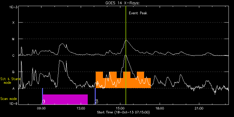 EIS Observation timeline overlay to GOES-Xray curve Code 1" 2" 40" 266" EIS Observations list for this event: STUDY ACRONYM ID DATE OBSERVED DESCRIPTION NOAA# TARGET 0 PRY_slot_contextLITE | 36820 | 2013/10/18 09:03:14 | Context for Coronal Hole Observations | | Active Region TIMELINE ID DATE OBSERVED FITS FILE XCEN (+W/-E) YCEN (+N/-S) DUR ----------------------------------------------------------------------------------------------------------------- 36820 | 2013/10/18 09:03:14.000 | eis_l0_20131018_090314.fits.gz | 170.10 | 399.26 | 2m56s 1 HPW021_VEL_240x512v2 | 36821 | 2013/10/18 09:06:21 | Coronal Hole Observations with IRIS | | Quiet Sun TIMELINE ID DATE OBSERVED FITS FILE XCEN (+W/-E) YCEN (+N/-S) DUR ----------------------------------------------------------------------------------------------------------------- 36821 | 2013/10/18 09:06:21.000 | eis_l0_20131018_090621.fits.gz | 185.70 | 398.79 | 3h23m48s 2 PRY_slot_contextLITE | 36817 | 2013/10/18 13:03:34 | Context for HOP 180 on AR11865 | 1864 | Active Region TIMELINE ID DATE OBSERVED FITS FILE XCEN (+W/-E) YCEN (+N/-S) DUR ----------------------------------------------------------------------------------------------------------------- 36817 | 2013/10/18 13:03:34.000 | eis_l0_20131018_130334.fits.gz | 683.11 | -443.05 | 2m57s 3 eis_eitwave_context | 36818 | 2013/10/18 13:06:36 | Context for HOP 180 on AR11865 | 1865 | Quiet Sun TIMELINE ID DATE OBSERVED FITS FILE XCEN (+W/-E) YCEN (+N/-S) DUR ----------------------------------------------------------------------------------------------------------------- 36818 | 2013/10/18 13:06:36.000 | eis_l0_20131018_130636.fits.gz | 679.09 | -240.05 | 45s 4 eis_eitwave_obssns | 36819 | 2013/10/18 13:08:33 | HOP180 on AR11865 | | Quiet Sun TIMELINE ID DATE OBSERVED FITS FILE XCEN (+W/-E) YCEN (+N/-S) DUR ----------------------------------------------------------------------------------------------------------------- 36819 | 2013/10/18 13:08:33.000 | eis_l0_20131018_130833.fits.gz | 698.23 | -239.97 | 31m16s 36819 | 2013/10/18 13:39:52.000 | eis_l0_20131018_133952.fits.gz | 700.86 | -239.59 | 31m15s 36819 | 2013/10/18 14:11:11.000 | eis_l0_20131018_141111.fits.gz | 703.56 | -239.36 | 31m16s 36819 | 2013/10/18 14:42:30.000 | eis_l0_20131018_144230.fits.gz | 706.11 | -238.89 | 31m16s 36819 | 2013/10/18 15:13:50.000 | eis_l0_20131018_151350.fits.gz | 708.66 | -238.58 | 31m15s 36819 | 2013/10/18 15:45:08.000 | eis_l0_20131018_154508.fits.gz | 711.21 | -238.20 | 31m15s 36819 | 2013/10/18 16:16:26.000 | eis_l0_20131018_161626.fits.gz | 713.76 | -237.81 | 31m16s 36819 | 2013/10/18 16:47:45.000 | eis_l0_20131018_164745.fits.gz | 716.23 | -237.50 | 31m16s : Check study information : Download file : View thumbnails For this event, also check for: