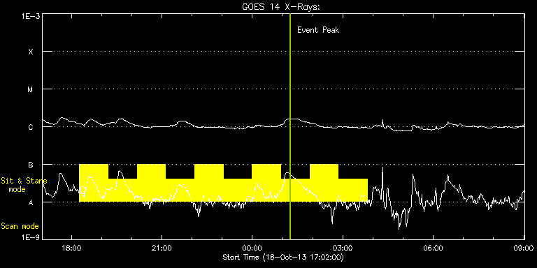 EIS Observation timeline overlay to GOES-Xray curve Code 1" 2" 40" 266" EIS Observations list for this event: STUDY ACRONYM ID DATE OBSERVED DESCRIPTION NOAA# TARGET 0 Flare266_Hunter02 | 36826 | 2013/10/18 18:15:33 | Flare Hunting on AR11865 | 1865 | Flare TIMELINE ID DATE OBSERVED FITS FILE XCEN (+W/-E) YCEN (+N/-S) DUR ----------------------------------------------------------------------------------------------------------------- 36826 | 2013/10/18 18:15:33.000 | eis_l0_20131018_181533.fits.gz | 591.40 | -439.34 | 56m53s 36826 | 2013/10/18 19:12:53.000 | eis_l0_20131018_191253.fits.gz | 595.80 | -438.73 | 56m22s 36826 | 2013/10/18 20:10:46.000 | eis_l0_20131018_201046.fits.gz | 600.28 | -438.11 | 56m21s 36826 | 2013/10/18 21:07:34.000 | eis_l0_20131018_210734.fits.gz | 604.61 | -437.49 | 56m53s 36826 | 2013/10/18 22:04:54.000 | eis_l0_20131018_220454.fits.gz | 609.01 | -436.64 | 56m54s 36826 | 2013/10/18 23:02:15.000 | eis_l0_20131018_230215.fits.gz | 613.26 | -435.95 | 56m52s 36826 | 2013/10/18 23:59:34.000 | eis_l0_20131018_235934.fits.gz | 617.43 | -435.40 | 56m54s 36826 | 2013/10/19 00:56:55.000 | eis_l0_20131019_005655.fits.gz | 621.53 | -434.71 | 56m53s 36826 | 2013/10/19 01:54:15.000 | eis_l0_20131019_015415.fits.gz | 625.62 | -433.86 | 56m53s 36826 | 2013/10/19 02:51:35.000 | eis_l0_20131019_025135.fits.gz | 629.64 | -433.32 | 56m54s : Check study information : Download file : View thumbnails For this event, also check for: