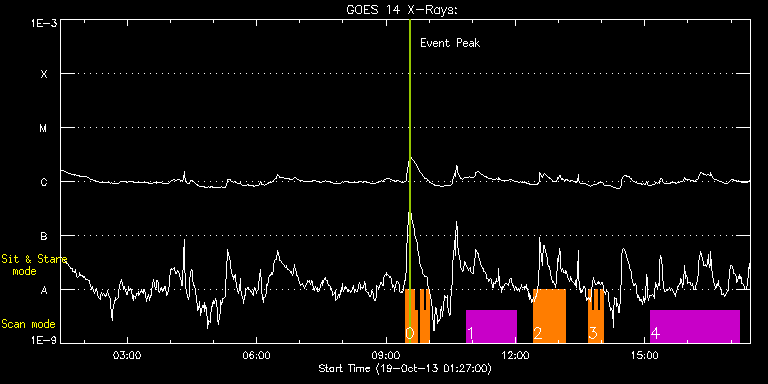 EIS Observation timeline overlay to GOES-Xray curve Code 1" 2" 40" 266" EIS Observations list for this event: STUDY ACRONYM ID DATE OBSERVED DESCRIPTION NOAA# TARGET 0 HH_Flare_162x152 | 36848 | 2013/10/19 09:26:20 | Prominence obs, near AR 11861/65 near | | Flare TIMELINE ID DATE OBSERVED FITS FILE XCEN (+W/-E) YCEN (+N/-S) DUR ----------------------------------------------------------------------------------------------------------------- 36848 | 2013/10/19 09:26:20.000 | eis_l0_20131019_092620.fits.gz | -896.52 | -432.23 | 4m11s 36848 | 2013/10/19 09:30:34.000 | eis_l0_20131019_093034.fits.gz | -896.52 | -432.23 | 4m10s 36848 | 2013/10/19 09:34:47.000 | eis_l0_20131019_093447.fits.gz | -896.44 | -432.46 | 4m11s 36848 | 2013/10/19 09:39:00.000 | eis_l0_20131019_093900.fits.gz | -896.52 | -432.39 | 4m11s 36848 | 2013/10/19 09:47:27.000 | eis_l0_20131019_094727.fits.gz | -896.60 | -432.23 | 4m11s 36848 | 2013/10/19 09:51:41.000 | eis_l0_20131019_095141.fits.gz | -896.52 | -432.31 | 4m11s 36848 | 2013/10/19 09:55:54.000 | eis_l0_20131019_095554.fits.gz | -896.52 | -432.31 | 4m11s 1 prom_rast_v1 | 36849 | 2013/10/19 10:51:27 | Prominence obs, near AR 11861/65 near | | Eruptive Filame TIMELINE ID DATE OBSERVED FITS FILE XCEN (+W/-E) YCEN (+N/-S) DUR ----------------------------------------------------------------------------------------------------------------- 36849 | 2013/10/19 10:51:27.000 | eis_l0_20131019_105127.fits.gz | -895.53 | -432.46 | 1h9m44s 2 prom_rast_small_v2 | 36850 | 2013/10/19 12:24:26 | Prominence obs, near AR 11861/65 near | | Filament TIMELINE ID DATE OBSERVED FITS FILE XCEN (+W/-E) YCEN (+N/-S) DUR ----------------------------------------------------------------------------------------------------------------- 36850 | 2013/10/19 12:24:26.000 | eis_l0_20131019_122426.fits.gz | -896.19 | -432.31 | 52s 36850 | 2013/10/19 12:25:20.000 | eis_l0_20131019_122520.fits.gz | -896.27 | -432.39 | 52s 36850 | 2013/10/19 12:26:15.000 | eis_l0_20131019_122615.fits.gz | -896.27 | -432.39 | 52s 36850 | 2013/10/19 12:27:10.000 | eis_l0_20131019_122710.fits.gz | -896.27 | -432.15 | 51s 36850 | 2013/10/19 12:28:04.000 | eis_l0_20131019_122804.fits.gz | -896.27 | -432.31 | 52s 36850 | 2013/10/19 12:28:58.000 | eis_l0_20131019_122858.fits.gz | -896.27 | -432.31 | 52s 36850 | 2013/10/19 12:29:53.000 | eis_l0_20131019_122953.fits.gz | -896.27 | -432.39 | 52s 36850 | 2013/10/19 12:30:48.000 | eis_l0_20131019_123048.fits.gz | -896.19 | -432.39 | 51s 36850 | 2013/10/19 12:31:42.000 | eis_l0_20131019_123142.fits.gz | -896.19 | -432.31 | 52s 36850 | 2013/10/19 12:32:37.000 | eis_l0_20131019_123237.fits.gz | -896.27 | -432.39 | 52s 36850 | 2013/10/19 12:33:31.000 | eis_l0_20131019_123331.fits.gz | -896.27 | -432.39 | 52s 36850 | 2013/10/19 12:34:26.000 | eis_l0_20131019_123426.fits.gz | -896.27 | -432.31 | 52s 36850 | 2013/10/19 12:35:21.000 | eis_l0_20131019_123521.fits.gz | -896.27 | -432.39 | 51s 36850 | 2013/10/19 12:36:15.000 | eis_l0_20131019_123615.fits.gz | -896.35 | -432.23 | 52s 36850 | 2013/10/19 12:37:09.000 | eis_l0_20131019_123709.fits.gz | -896.27 | -432.54 | 52s 36850 | 2013/10/19 12:38:04.000 | eis_l0_20131019_123804.fits.gz | -896.27 | -432.46 | 52s 36850 | 2013/10/19 12:38:58.000 | eis_l0_20131019_123858.fits.gz | -896.19 | -432.46 | 52s 36850 | 2013/10/19 12:39:53.000 | eis_l0_20131019_123953.fits.gz | -896.27 | -432.31 | 52s 36850 | 2013/10/19 12:40:47.000 | eis_l0_20131019_124047.fits.gz | -896.35 | -432.46 | 52s 36850 | 2013/10/19 12:41:42.000 | eis_l0_20131019_124142.fits.gz | -896.19 | -432.39 | 52s 36850 | 2013/10/19 12:42:37.000 | eis_l0_20131019_124237.fits.gz | -896.35 | -432.46 | 52s 36850 | 2013/10/19 12:43:31.000 | eis_l0_20131019_124331.fits.gz | -896.27 | -432.31 | 52s 36850 | 2013/10/19 12:44:26.000 | eis_l0_20131019_124426.fits.gz | -896.27 | -432.54 | 51s 36850 | 2013/10/19 12:45:20.000 | eis_l0_20131019_124520.fits.gz | -896.27 | -432.39 | 52s 36850 | 2013/10/19 12:46:15.000 | eis_l0_20131019_124615.fits.gz | -896.27 | -432.39 | 51s 36850 | 2013/10/19 12:47:09.000 | eis_l0_20131019_124709.fits.gz | -896.35 | -432.15 | 52s 36850 | 2013/10/19 12:48:04.000 | eis_l0_20131019_124804.fits.gz | -896.35 | -432.31 | 51s 36850 | 2013/10/19 12:48:58.000 | eis_l0_20131019_124858.fits.gz | -896.27 | -432.31 | 52s 36850 | 2013/10/19 12:49:53.000 | eis_l0_20131019_124953.fits.gz | -896.27 | -432.31 | 51s 36850 | 2013/10/19 12:50:47.000 | eis_l0_20131019_125047.fits.gz | -896.27 | -432.23 | 52s 36850 | 2013/10/19 12:51:42.000 | eis_l0_20131019_125142.fits.gz | -896.19 | -432.31 | 52s 36850 | 2013/10/19 12:52:36.000 | eis_l0_20131019_125236.fits.gz | -896.27 | -432.31 | 52s 36850 | 2013/10/19 12:53:31.000 | eis_l0_20131019_125331.fits.gz | -896.27 | -432.31 | 52s 36850 | 2013/10/19 12:54:26.000 | eis_l0_20131019_125426.fits.gz | -896.27 | -432.31 | 51s 36850 | 2013/10/19 12:55:20.000 | eis_l0_20131019_125520.fits.gz | -896.27 | -432.39 | 52s 36850 | 2013/10/19 12:56:15.000 | eis_l0_20131019_125615.fits.gz | -896.27 | -432.39 | 52s 36850 | 2013/10/19 12:57:09.000 | eis_l0_20131019_125709.fits.gz | -896.19 | -432.39 | 52s 36850 | 2013/10/19 12:58:04.000 | eis_l0_20131019_125804.fits.gz | -896.35 | -432.39 | 52s 36850 | 2013/10/19 12:58:59.000 | eis_l0_20131019_125859.fits.gz | -896.27 | -432.46 | 51s 36850 | 2013/10/19 12:59:53.000 | eis_l0_20131019_125953.fits.gz | -896.19 | -432.54 | 52s 36850 | 2013/10/19 13:00:47.000 | eis_l0_20131019_130047.fits.gz | -896.27 | -432.39 | 52s 36850 | 2013/10/19 13:01:42.000 | eis_l0_20131019_130142.fits.gz | -896.27 | -432.39 | 52s 36850 | 2013/10/19 13:02:37.000 | eis_l0_20131019_130237.fits.gz | -896.27 | -432.46 | 51s 36850 | 2013/10/19 13:03:31.000 | eis_l0_20131019_130331.fits.gz | -896.35 | -432.39 | 52s 36850 | 2013/10/19 13:04:26.000 | eis_l0_20131019_130426.fits.gz | -896.27 | -432.46 | 52s 36850 | 2013/10/19 13:05:20.000 | eis_l0_20131019_130520.fits.gz | -896.27 | -432.39 | 52s 36850 | 2013/10/19 13:06:15.000 | eis_l0_20131019_1306
