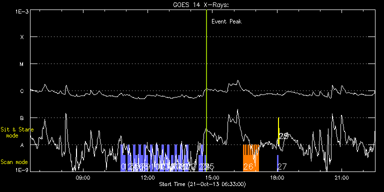 EIS Observation timeline overlay to GOES-Xray curve Code 1" 2" 40" 266" EIS Observations list for this event: STUDY ACRONYM ID DATE OBSERVED DESCRIPTION NOAA# TARGET 0 full_sun_slot_scan_1 | 36870 | 2013/10/21 10:45:20 | HOP130 (EVE roaket launch) #1t | | Quiet Sun TIMELINE ID DATE OBSERVED FITS FILE XCEN (+W/-E) YCEN (+N/-S) DUR ----------------------------------------------------------------------------------------------------------------- 36870 | 2013/10/21 10:45:20.000 | eis_l0_20131021_104520.fits.gz | 920.72 | 185.42 | 5m28s 1 full_sun_slot_scan_1 | 36871 | 2013/10/21 10:51:20 | HOP130 (EVE roaket launch) #1b | 1878 | Quiet Sun TIMELINE ID DATE OBSERVED FITS FILE XCEN (+W/-E) YCEN (+N/-S) DUR ----------------------------------------------------------------------------------------------------------------- 36871 | 2013/10/21 10:51:20.000 | eis_l0_20131021_105120.fits.gz | 920.72 | -286.50 | 5m27s 2 full_sun_slot_scan_1 | 36872 | 2013/10/21 11:03:41 | HOP130 (EVE roaket launch) #2t | | Quiet Sun TIMELINE ID DATE OBSERVED FITS FILE XCEN (+W/-E) YCEN (+N/-S) DUR ----------------------------------------------------------------------------------------------------------------- 36872 | 2013/10/21 11:03:41.000 | eis_l0_20131021_110341.fits.gz | 452.68 | 185.35 | 5m27s 3 full_sun_slot_scan_1 | 36873 | 2013/10/21 11:09:13 | HOP130 (EVE roaket launch) #2b | 1874 | Quiet Sun TIMELINE ID DATE OBSERVED FITS FILE XCEN (+W/-E) YCEN (+N/-S) DUR ----------------------------------------------------------------------------------------------------------------- 36873 | 2013/10/21 11:09:13.000 | eis_l0_20131021_110913.fits.gz | 452.68 | -286.58 | 5m27s 4 full_sun_slot_scan_1 | 36874 | 2013/10/21 11:19:14 | HOP130 (EVE roaket launch) #3t | 1873 | Quiet Sun TIMELINE ID DATE OBSERVED FITS FILE XCEN (+W/-E) YCEN (+N/-S) DUR ----------------------------------------------------------------------------------------------------------------- 36874 | 2013/10/21 11:19:14.000 | eis_l0_20131021_111914.fits.gz | -15.29 | 185.58 | 5m27s 5 full_sun_slot_scan_1 | 36875 | 2013/10/21 11:24:46 | HOP130 (EVE roaket launch) #3b | 1872 | Quiet Sun TIMELINE ID DATE OBSERVED FITS FILE XCEN (+W/-E) YCEN (+N/-S) DUR ----------------------------------------------------------------------------------------------------------------- 36875 | 2013/10/21 11:24:46.000 | eis_l0_20131021_112446.fits.gz | -15.29 | -286.42 | 5m26s 6 full_sun_slot_scan_1 | 36876 | 2013/10/21 11:35:14 | HOP130 (EVE roaket launch) #4t | 1875 | Quiet Sun TIMELINE ID DATE OBSERVED FITS FILE XCEN (+W/-E) YCEN (+N/-S) DUR ----------------------------------------------------------------------------------------------------------------- 36876 | 2013/10/21 11:35:14.000 | eis_l0_20131021_113514.fits.gz | -483.26 | 185.50 | 5m27s 7 full_sun_slot_scan_1 | 36877 | 2013/10/21 11:40:46 | HOP130 (EVE roaket launch) #4b | | Quiet Sun TIMELINE ID DATE OBSERVED FITS FILE XCEN (+W/-E) YCEN (+N/-S) DUR ----------------------------------------------------------------------------------------------------------------- 36877 | 2013/10/21 11:40:46.000 | eis_l0_20131021_114046.fits.gz | -483.26 | -286.42 | 5m27s 8 full_sun_slot_scan_1 | 36878 | 2013/10/21 11:49:14 | HOP130 (EVE roaket launch) #5t | 1875 | Quiet Sun TIMELINE ID DATE OBSERVED FITS FILE XCEN (+W/-E) YCEN (+N/-S) DUR ----------------------------------------------------------------------------------------------------------------- 36878 | 2013/10/21 11:49:14.000 | eis_l0_20131021_114914.fits.gz | -623.38 | 185.50 | 5m28s 9 full_sun_slot_scan_1 | 36879 | 2013/10/21 11:54:47 | HOP130 (EVE roaket launch) #5b | | Quiet Sun TIMELINE ID DATE OBSERVED FITS FILE XCEN (+W/-E) YCEN (+N/-S) DUR ----------------------------------------------------------------------------------------------------------------- 36879 | 2013/10/21 11:54:47.000 | eis_l0_20131021_115447.fits.gz | -9884.69 | -10249.20 | 5m26s 10 full_sun_slot_scan_1 | 36880 | 2013/10/21 12:07:14 | HOP130 (EVE roaket launch) #6 | | Quiet Sun TIMELINE ID DATE OBSERVED FITS FILE XCEN (+W/-E) YCEN (+N/-S) DUR ----------------------------------------------------------------------------------------------------------------- 36880 | 2013/10/21 12:07:14.000 | eis_l0_20131021_120714.fits.gz | 751.08 | 655.63 | 5m27s 11 full_sun_slot_scan_1 | 36881 | 2013/10/21 12:17:14 | HOP130 (EVE roaket launch) #7t | | Quiet Sun TIMELINE ID DATE OBSERVED FITS FILE XCEN (+W/-E) YCEN (+N/-S) DUR ----------------------------------------------------------------------------------------------------------------- 36881 | 2013/10/21 12:17:14.000 | eis_l0_20131021_121714.fits.gz | 395.82 | 1032.67 | 5m27s 12 full_sun_slot_scan_1 | 36882 | 2013/10/21 12:22:46 | HOP130 (EVE roaket launch) #7b | | Quiet Sun TIMELINE ID DATE OBSERVED FITS FILE XCEN (+W/-E) YCEN (+N/-S) DUR ----------------------------------------------------------------------------------------------------------------- 36882 | 2013/10/21 12:22:46.000 | eis_l0_20131021_122246.fits.gz | 395.82 | 560.60 | 5m26s 13 full_sun_slot_scan_1 | 36883 | 2013/10/21 12:33:14 | HOP130 (EVE roaket launch) #8t | | Quiet Sun TIMELINE ID DATE OBSERVED FITS FILE XCEN (+W/-E) YCEN (+N/-S) DUR ----------------------------------------------------------------------------------------------------------------- 36883 | 2013/10/21 12:33:14.000 | eis_l0_20131021_123314.fits.gz | -15.29 | 1126.61 | 5m27s 14 full_sun_slot_scan_1 | 36884 | 2013/10/21 12:38:46 | HOP130 (EVE roaket launch) #8b | | Quiet Sun TIMELINE ID DATE OBSERVED FITS FILE XCEN (+W/-E) YCEN (+N/-S) DUR ----------------------------------------------------------------------------------------------------------------- 36884 | 2013/10/21 12:38:46.000 | eis_l0_20131021_123846.fits.gz | -15.21 | 654.53 | 5m27s 15 full_sun_slot_scan_1 | 36885 | 2013/10/21 12:49:14 | HOP130 (EVE roaket launch) #9t | | Quiet Sun TIMELINE ID DATE OBSERVED FITS FILE XCEN (+W/-E) YCEN (+N/-S) DUR ------------------------------------------------------