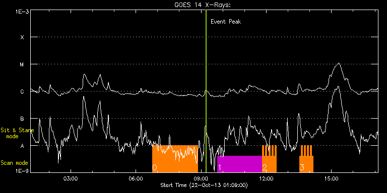 EIS Observation timeline overlay to GOES-Xray curve Code 1" 2" 40" 266" EIS Observations list for this event: STUDY ACRONYM ID DATE OBSERVED DESCRIPTION NOAA# TARGET 0 cam_ar_limb_lite_v2 | 36942 | 2013/10/22 06:45:14 | AR obs at SE-limb (Temperature diag.) | | Active Region TIMELINE ID DATE OBSERVED FITS FILE XCEN (+W/-E) YCEN (+N/-S) DUR ----------------------------------------------------------------------------------------------------------------- 36942 | 2013/10/22 06:45:14.000 | eis_l0_20131022_064514.fits.gz | -9929.61 | -9963.20 | 2h6m 1 HPW021_VEL_240x512v1 | 36943 | 2013/10/22 09:45:27 | AR11875 obs | 1875 | Active Region TIMELINE ID DATE OBSERVED FITS FILE XCEN (+W/-E) YCEN (+N/-S) DUR ----------------------------------------------------------------------------------------------------------------- 36943 | 2013/10/22 09:45:27.000 | eis_l0_20131022_094527.fits.gz | -287.07 | -24.29 | 2h3m47s 2 HH_Flare_162x152 | 36949 | 2013/10/22 11:49:33 | AR11875 obs | 1875 | Flare TIMELINE ID DATE OBSERVED FITS FILE XCEN (+W/-E) YCEN (+N/-S) DUR ----------------------------------------------------------------------------------------------------------------- 36949 | 2013/10/22 11:49:33.000 | eis_l0_20131022_114933.fits.gz | -238.99 | 28.25 | 4m10s 36949 | 2013/10/22 11:53:46.000 | eis_l0_20131022_115346.fits.gz | -238.37 | 28.17 | 4m11s 36949 | 2013/10/22 11:58:00.000 | eis_l0_20131022_115800.fits.gz | -237.68 | 28.01 | 4m10s 36949 | 2013/10/22 12:02:13.000 | eis_l0_20131022_120213.fits.gz | -236.98 | 27.94 | 4m10s 36949 | 2013/10/22 12:06:26.000 | eis_l0_20131022_120626.fits.gz | -236.44 | 28.01 | 4m11s 36949 | 2013/10/22 12:10:40.000 | eis_l0_20131022_121040.fits.gz | -235.74 | 28.09 | 4m11s 36949 | 2013/10/22 12:14:53.000 | eis_l0_20131022_121453.fits.gz | -235.13 | 28.09 | 4m11s 36949 | 2013/10/22 12:19:07.000 | eis_l0_20131022_121907.fits.gz | -234.51 | 27.86 | 4m10s 36949 | 2013/10/22 12:23:20.000 | eis_l0_20131022_122320.fits.gz | -233.89 | 27.94 | 4m11s 3 HH_Flare_162x152 | 36950 | 2013/10/22 13:32:09 | AR11875 obs | | Flare TIMELINE ID DATE OBSERVED FITS FILE XCEN (+W/-E) YCEN (+N/-S) DUR ----------------------------------------------------------------------------------------------------------------- 36950 | 2013/10/22 13:32:09.000 | eis_l0_20131022_133209.fits.gz | -223.54 | 28.71 | 4m11s 36950 | 2013/10/22 13:36:23.000 | eis_l0_20131022_133623.fits.gz | -222.84 | 28.94 | 4m10s 36950 | 2013/10/22 13:40:36.000 | eis_l0_20131022_134036.fits.gz | -222.23 | 28.71 | 4m11s 36950 | 2013/10/22 13:44:50.000 | eis_l0_20131022_134450.fits.gz | -221.53 | 28.71 | 4m10s 36950 | 2013/10/22 13:49:03.000 | eis_l0_20131022_134903.fits.gz | -221.07 | 28.78 | 4m11s 36950 | 2013/10/22 13:53:16.000 | eis_l0_20131022_135316.fits.gz | -220.37 | 28.86 | 4m11s 36950 | 2013/10/22 13:57:30.000 | eis_l0_20131022_135730.fits.gz | -219.76 | 28.71 | 4m10s 36950 | 2013/10/22 14:01:43.000 | eis_l0_20131022_140143.fits.gz | -219.06 | 28.86 | 4m11s 36950 | 2013/10/22 14:05:57.000 | eis_l0_20131022_140557.fits.gz | -218.44 | 28.86 | 4m11s : Check study information : Download file : View thumbnails For this event, also check for: