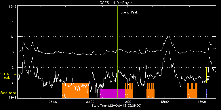 EIS Observation timeline overlay to GOES-Xray curve Code 1" 2" 40" 266" EIS Observations list for this event: STUDY ACRONYM ID DATE OBSERVED DESCRIPTION NOAA# TARGET 0 cam_ar_limb_lite_v2 | 36942 | 2013/10/22 06:45:14 | AR obs at SE-limb (Temperature diag.) | | Active Region TIMELINE ID DATE OBSERVED FITS FILE XCEN (+W/-E) YCEN (+N/-S) DUR ----------------------------------------------------------------------------------------------------------------- 36942 | 2013/10/22 06:45:14.000 | eis_l0_20131022_064514.fits.gz | -9929.61 | -9963.20 | 2h6m 1 HPW021_VEL_240x512v1 | 36943 | 2013/10/22 09:45:27 | AR11875 obs | 1875 | Active Region TIMELINE ID DATE OBSERVED FITS FILE XCEN (+W/-E) YCEN (+N/-S) DUR ----------------------------------------------------------------------------------------------------------------- 36943 | 2013/10/22 09:45:27.000 | eis_l0_20131022_094527.fits.gz | -287.07 | -24.29 | 2h3m47s 2 HH_Flare_162x152 | 36949 | 2013/10/22 11:49:33 | AR11875 obs | 1875 | Flare TIMELINE ID DATE OBSERVED FITS FILE XCEN (+W/-E) YCEN (+N/-S) DUR ----------------------------------------------------------------------------------------------------------------- 36949 | 2013/10/22 11:49:33.000 | eis_l0_20131022_114933.fits.gz | -238.99 | 28.25 | 4m10s 36949 | 2013/10/22 11:53:46.000 | eis_l0_20131022_115346.fits.gz | -238.37 | 28.17 | 4m11s 36949 | 2013/10/22 11:58:00.000 | eis_l0_20131022_115800.fits.gz | -237.68 | 28.01 | 4m10s 36949 | 2013/10/22 12:02:13.000 | eis_l0_20131022_120213.fits.gz | -236.98 | 27.94 | 4m10s 36949 | 2013/10/22 12:06:26.000 | eis_l0_20131022_120626.fits.gz | -236.44 | 28.01 | 4m11s 36949 | 2013/10/22 12:10:40.000 | eis_l0_20131022_121040.fits.gz | -235.74 | 28.09 | 4m11s 36949 | 2013/10/22 12:14:53.000 | eis_l0_20131022_121453.fits.gz | -235.13 | 28.09 | 4m11s 36949 | 2013/10/22 12:19:07.000 | eis_l0_20131022_121907.fits.gz | -234.51 | 27.86 | 4m10s 36949 | 2013/10/22 12:23:20.000 | eis_l0_20131022_122320.fits.gz | -233.89 | 27.94 | 4m11s 3 HH_Flare_162x152 | 36950 | 2013/10/22 13:32:09 | AR11875 obs | | Flare TIMELINE ID DATE OBSERVED FITS FILE XCEN (+W/-E) YCEN (+N/-S) DUR ----------------------------------------------------------------------------------------------------------------- 36950 | 2013/10/22 13:32:09.000 | eis_l0_20131022_133209.fits.gz | -223.54 | 28.71 | 4m11s 36950 | 2013/10/22 13:36:23.000 | eis_l0_20131022_133623.fits.gz | -222.84 | 28.94 | 4m10s 36950 | 2013/10/22 13:40:36.000 | eis_l0_20131022_134036.fits.gz | -222.23 | 28.71 | 4m11s 36950 | 2013/10/22 13:44:50.000 | eis_l0_20131022_134450.fits.gz | -221.53 | 28.71 | 4m10s 36950 | 2013/10/22 13:49:03.000 | eis_l0_20131022_134903.fits.gz | -221.07 | 28.78 | 4m11s 36950 | 2013/10/22 13:53:16.000 | eis_l0_20131022_135316.fits.gz | -220.37 | 28.86 | 4m11s 36950 | 2013/10/22 13:57:30.000 | eis_l0_20131022_135730.fits.gz | -219.76 | 28.71 | 4m10s 36950 | 2013/10/22 14:01:43.000 | eis_l0_20131022_140143.fits.gz | -219.06 | 28.86 | 4m11s 36950 | 2013/10/22 14:05:57.000 | eis_l0_20131022_140557.fits.gz | -218.44 | 28.86 | 4m11s 4 madj_ar | 36975 | 2013/10/22 16:48:42 | AR11875 obs | | Active Region TIMELINE ID DATE OBSERVED FITS FILE XCEN (+W/-E) YCEN (+N/-S) DUR ----------------------------------------------------------------------------------------------------------------- 36975 | 2013/10/22 16:48:42.000 | eis_l0_20131022_164842.fits.gz | -223.25 | 28.40 | 9m42s 36975 | 2013/10/22 16:58:27.000 | eis_l0_20131022_165827.fits.gz | -221.71 | 28.32 | 9m42s 36975 | 2013/10/22 17:08:12.000 | eis_l0_20131022_170812.fits.gz | -220.32 | 28.40 | 9m42s 36975 | 2013/10/22 17:17:57.000 | eis_l0_20131022_171757.fits.gz | -218.70 | 28.40 | 9m42s 36975 | 2013/10/22 17:27:42.000 | eis_l0_20131022_172742.fits.gz | -217.30 | 28.32 | 9m42s 5 PRY_slot_contextLITE | 36899 | 2013/10/22 18:19:20 | EIS-AIA alignment | 1873 | Active Region TIMELINE ID DATE OBSERVED FITS FILE XCEN (+W/-E) YCEN (+N/-S) DUR ----------------------------------------------------------------------------------------------------------------- 36899 | 2013/10/22 18:19:20.000 | eis_l0_20131022_181920.fits.gz | -15.21 | -0.58 | 2m56s 6 Alignment_266 | 36900 | 2013/10/22 18:22:34 | EIS-AIA alignment | | Quiet Sun TIMELINE ID DATE OBSERVED FITS FILE XCEN (+W/-E) YCEN (+N/-S) DUR ----------------------------------------------------------------------------------------------------------------- 36900 | 2013/10/22 18:22:34.000 | eis_l0_20131022_182234.fits.gz | -132.49 | -0.35 | 1m22s 7 XRT_synop_AIA | 36901 | 2013/10/22 18:25:09 | EIS-AIA alignment | | Quiet Sun TIMELINE ID DATE OBSERVED FITS FILE XCEN (+W/-E) YCEN (+N/-S) DUR ----------------------------------------------------------------------------------------------------------------- 36901 | 2013/10/22 18:25:09.000 | eis_l0_20131022_182509.fits.gz | -132.49 | -0.58 | 10s : Check study information : Download file : View thumbnails For this event, also check for: