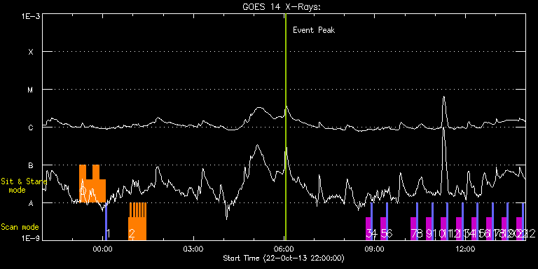 EIS Observation timeline overlay to GOES-Xray curve Code 1" 2" 40" 266" EIS Observations list for this event: STUDY ACRONYM ID DATE OBSERVED DESCRIPTION NOAA# TARGET 0 madj_ar_sns_15m | 36955 | 2013/10/22 23:14:19 | AR11875 obs (sit-and-stare) | | Active Region TIMELINE ID DATE OBSERVED FITS FILE XCEN (+W/-E) YCEN (+N/-S) DUR ----------------------------------------------------------------------------------------------------------------- 36955 | 2013/10/22 23:14:19.000 | eis_l0_20131022_231419.fits.gz | -164.49 | 26.93 | 12m36s 36955 | 2013/10/22 23:26:58.000 | eis_l0_20131022_232658.fits.gz | -162.55 | 26.78 | 12m36s 36955 | 2013/10/22 23:39:37.000 | eis_l0_20131022_233937.fits.gz | -160.55 | 26.70 | 12m37s 36955 | 2013/10/22 23:52:16.000 | eis_l0_20131022_235216.fits.gz | -158.62 | 26.86 | 12m36s 1 PRY_slot_context_v3 | 36961 | 2013/10/23 00:05:03 | AR11875 obs | 1875 | Active Region TIMELINE ID DATE OBSERVED FITS FILE XCEN (+W/-E) YCEN (+N/-S) DUR ----------------------------------------------------------------------------------------------------------------- 36961 | 2013/10/23 00:05:03.000 | eis_l0_20131023_000503.fits.gz | -141.07 | 26.70 | 2m56s 2 HH_Flare_180x152f | 36964 | 2013/10/23 00:51:41 | AR11875 obs | 1875 | Flare TIMELINE ID DATE OBSERVED FITS FILE XCEN (+W/-E) YCEN (+N/-S) DUR ----------------------------------------------------------------------------------------------------------------- 36964 | 2013/10/23 00:51:41.000 | eis_l0_20131023_005141.fits.gz | -121.22 | 27.78 | 2m48s 36964 | 2013/10/23 00:54:32.000 | eis_l0_20131023_005432.fits.gz | -120.75 | 27.55 | 2m47s 36964 | 2013/10/23 00:57:22.000 | eis_l0_20131023_005722.fits.gz | -120.52 | 27.78 | 2m48s 36964 | 2013/10/23 01:00:13.000 | eis_l0_20131023_010013.fits.gz | -119.98 | 27.62 | 2m48s 36964 | 2013/10/23 01:03:04.000 | eis_l0_20131023_010304.fits.gz | -119.59 | 27.78 | 2m48s 36964 | 2013/10/23 01:05:55.000 | eis_l0_20131023_010555.fits.gz | -119.05 | 27.55 | 2m48s 36964 | 2013/10/23 01:08:46.000 | eis_l0_20131023_010846.fits.gz | -118.59 | 27.62 | 2m48s 36964 | 2013/10/23 01:11:37.000 | eis_l0_20131023_011137.fits.gz | -118.13 | 27.86 | 2m47s 36964 | 2013/10/23 01:14:27.000 | eis_l0_20131023_011427.fits.gz | -117.74 | 27.62 | 2m48s 36964 | 2013/10/23 01:17:18.000 | eis_l0_20131023_011718.fits.gz | -117.35 | 27.78 | 2m48s 36964 | 2013/10/23 01:20:09.000 | eis_l0_20131023_012009.fits.gz | -116.89 | 27.55 | 2m47s 36964 | 2013/10/23 01:22:59.000 | eis_l0_20131023_012259.fits.gz | -116.43 | 27.70 | 2m48s 3 SK_DEEP_5x512_SLIT1 | 36902 | 2013/10/23 08:42:26 | HOP79 SOT irradiance scan #1 | | Quiet Sun TIMELINE ID DATE OBSERVED FITS FILE XCEN (+W/-E) YCEN (+N/-S) DUR ----------------------------------------------------------------------------------------------------------------- 36902 | 2013/10/23 08:42:26.000 | eis_l0_20131023_084226.fits.gz | -9869.46 | -9963.20 | 10m8s 4 PRY_slot_contextLITE | 36903 | 2013/10/23 08:53:00 | HOP79 SOT irradiance scan #1 | | Active Region TIMELINE ID DATE OBSERVED FITS FILE XCEN (+W/-E) YCEN (+N/-S) DUR ----------------------------------------------------------------------------------------------------------------- 36903 | 2013/10/23 08:53:00.000 | eis_l0_20131023_085300.fits.gz | -9884.69 | -9963.20 | 2m56s 5 SK_DEEP_5x512_SLIT1 | 36904 | 2013/10/23 09:12:19 | HOP79 SOT irradiance scan #2 | | Quiet Sun TIMELINE ID DATE OBSERVED FITS FILE XCEN (+W/-E) YCEN (+N/-S) DUR ----------------------------------------------------------------------------------------------------------------- 36904 | 2013/10/23 09:12:19.000 | eis_l0_20131023_091219.fits.gz | -15.20 | -865.44 | 10m8s 6 PRY_slot_contextLITE | 36905 | 2013/10/23 09:22:52 | HOP79 SOT irradiance scan #2 | | Active Region TIMELINE ID DATE OBSERVED FITS FILE XCEN (+W/-E) YCEN (+N/-S) DUR ----------------------------------------------------------------------------------------------------------------- 36905 | 2013/10/23 09:22:52.000 | eis_l0_20131023_092252.fits.gz | -30.35 | -865.52 | 2m57s 7 SK_DEEP_5x512_SLIT1 | 36906 | 2013/10/23 10:12:19 | HOP79 SOT irradiance scan #3 | | Quiet Sun TIMELINE ID DATE OBSERVED FITS FILE XCEN (+W/-E) YCEN (+N/-S) DUR ----------------------------------------------------------------------------------------------------------------- 36906 | 2013/10/23 10:12:19.000 | eis_l0_20131023_101219.fits.gz | -15.20 | -765.25 | 10m8s 8 PRY_slot_contextLITE | 36907 | 2013/10/23 10:22:52 | HOP79 SOT irradiance scan #3 | | Active Region TIMELINE ID DATE OBSERVED FITS FILE XCEN (+W/-E) YCEN (+N/-S) DUR ----------------------------------------------------------------------------------------------------------------- 36907 | 2013/10/23 10:22:52.000 | eis_l0_20131023_102252.fits.gz | -30.28 | -765.56 | 2m57s 9 SK_DEEP_5x512_SLIT1 | 36908 | 2013/10/23 10:42:19 | HOP79 SOT irradiance scan #4 | | Quiet Sun TIMELINE ID DATE OBSERVED FITS FILE XCEN (+W/-E) YCEN (+N/-S) DUR ----------------------------------------------------------------------------------------------------------------- 36908 | 2013/10/23 10:42:19.000 | eis_l0_20131023_104219.fits.gz | -15.13 | -665.37 | 10m8s 10 PRY_slot_contextLITE | 36909 | 2013/10/23 10:52:52 | HOP79 SOT irradiance scan #4 | | Active Region TIMELINE ID DATE OBSERVED FITS FILE XCEN (+W/-E) YCEN (+N/-S) DUR ----------------------------------------------------------------------------------------------------------------- 36909 | 2013/10/23 10:52:52.000 | eis_l0_20131023_105252.fits.gz | -30.43 | -665.22 | 2m57s 11 SK_DEEP_5x512_SLIT1 | 36910 | 2013/10/23 11:12:19 | HOP79 SOT irradiance scan #5 | | Quiet Sun TIMELINE ID DATE OBSERVED FITS FILE XCEN (+W/-E) YCEN (+N/-S) DUR ----------------------------------------------------------------------------------------------------------------- 36910 | 2013/10/23 11:12:19.000 | eis_l0_20131023_111219.fits.gz | -15.05 | -565.34 | 10m8s 12 PRY_slot_contextLITE | 36911 | 2013/10/23 11:22:52 | HOP79 SOT irradiance scan #5 | | Active Region TIMELINE ID DATE OBSERVED F