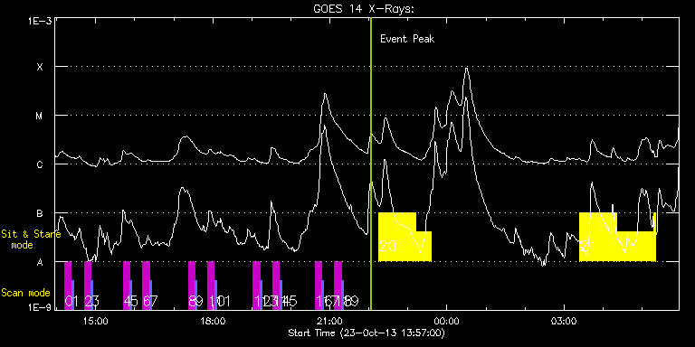 EIS Observation timeline overlay to GOES-Xray curve Code 1" 2" 40" 266" EIS Observations list for this event: STUDY ACRONYM ID DATE OBSERVED DESCRIPTION NOAA# TARGET 0 SK_DEEP_5x512_SLIT1 | 36922 | 2013/10/23 14:12:19 | HOP79 SOT irradiance scan #11 | | Quiet Sun TIMELINE ID DATE OBSERVED FITS FILE XCEN (+W/-E) YCEN (+N/-S) DUR ----------------------------------------------------------------------------------------------------------------- 36922 | 2013/10/23 14:12:19.000 | eis_l0_20131023_141219.fits.gz | -15.13 | 24.53 | 10m8s 1 PRY_slot_contextLITE | 36923 | 2013/10/23 14:22:52 | HOP79 SOT irradiance scan #11 | 1875 | Active Region TIMELINE ID DATE OBSERVED FITS FILE XCEN (+W/-E) YCEN (+N/-S) DUR ----------------------------------------------------------------------------------------------------------------- 36923 | 2013/10/23 14:22:52.000 | eis_l0_20131023_142252.fits.gz | -30.35 | 24.37 | 2m56s 2 SK_DEEP_5x512_SLIT1 | 36924 | 2013/10/23 14:42:19 | HOP79 SOT irradiance scan #12 | | Quiet Sun TIMELINE ID DATE OBSERVED FITS FILE XCEN (+W/-E) YCEN (+N/-S) DUR ----------------------------------------------------------------------------------------------------------------- 36924 | 2013/10/23 14:42:19.000 | eis_l0_20131023_144219.fits.gz | -15.05 | 124.49 | 10m7s 3 PRY_slot_contextLITE | 36925 | 2013/10/23 14:52:52 | HOP79 SOT irradiance scan #12 | 1875 | Active Region TIMELINE ID DATE OBSERVED FITS FILE XCEN (+W/-E) YCEN (+N/-S) DUR ----------------------------------------------------------------------------------------------------------------- 36925 | 2013/10/23 14:52:52.000 | eis_l0_20131023_145252.fits.gz | -30.35 | 124.33 | 2m56s 4 SK_DEEP_5x512_SLIT1 | 36926 | 2013/10/23 15:42:19 | HOP79 SOT irradiance scan #13 | | Quiet Sun TIMELINE ID DATE OBSERVED FITS FILE XCEN (+W/-E) YCEN (+N/-S) DUR ----------------------------------------------------------------------------------------------------------------- 36926 | 2013/10/23 15:42:19.000 | eis_l0_20131023_154219.fits.gz | -15.20 | 224.68 | 10m8s 5 PRY_slot_contextLITE | 36927 | 2013/10/23 15:52:52 | HOP79 SOT irradiance scan #13 | 1875 | Active Region TIMELINE ID DATE OBSERVED FITS FILE XCEN (+W/-E) YCEN (+N/-S) DUR ----------------------------------------------------------------------------------------------------------------- 36927 | 2013/10/23 15:52:52.000 | eis_l0_20131023_155252.fits.gz | -30.35 | 224.52 | 2m56s 6 SK_DEEP_5x512_SLIT1 | 36928 | 2013/10/23 16:12:19 | HOP79 SOT irradiance scan #14 | | Quiet Sun TIMELINE ID DATE OBSERVED FITS FILE XCEN (+W/-E) YCEN (+N/-S) DUR ----------------------------------------------------------------------------------------------------------------- 36928 | 2013/10/23 16:12:19.000 | eis_l0_20131023_161219.fits.gz | -15.13 | 324.79 | 10m8s 7 PRY_slot_contextLITE | 36929 | 2013/10/23 16:22:52 | HOP79 SOT irradiance scan #14 | | Active Region TIMELINE ID DATE OBSERVED FITS FILE XCEN (+W/-E) YCEN (+N/-S) DUR ----------------------------------------------------------------------------------------------------------------- 36929 | 2013/10/23 16:22:52.000 | eis_l0_20131023_162252.fits.gz | -30.35 | 324.64 | 2m56s 8 SK_DEEP_5x512_SLIT1 | 36930 | 2013/10/23 17:22:19 | HOP79 SOT irradiance scan #15 | | Quiet Sun TIMELINE ID DATE OBSERVED FITS FILE XCEN (+W/-E) YCEN (+N/-S) DUR ----------------------------------------------------------------------------------------------------------------- 36930 | 2013/10/23 17:22:19.000 | eis_l0_20131023_172219.fits.gz | -15.13 | 424.83 | 10m8s 9 PRY_slot_contextLITE | 36931 | 2013/10/23 17:32:52 | HOP79 SOT irradiance scan #15 | | Active Region TIMELINE ID DATE OBSERVED FITS FILE XCEN (+W/-E) YCEN (+N/-S) DUR ----------------------------------------------------------------------------------------------------------------- 36931 | 2013/10/23 17:32:52.000 | eis_l0_20131023_173252.fits.gz | -30.43 | 424.75 | 2m56s 10 SK_DEEP_5x512_SLIT1 | 36932 | 2013/10/23 17:52:19 | HOP79 SOT irradiance scan #16 | | Quiet Sun TIMELINE ID DATE OBSERVED FITS FILE XCEN (+W/-E) YCEN (+N/-S) DUR ----------------------------------------------------------------------------------------------------------------- 36932 | 2013/10/23 17:52:19.000 | eis_l0_20131023_175219.fits.gz | -15.13 | 524.47 | 10m7s 11 PRY_slot_contextLITE | 36933 | 2013/10/23 18:02:52 | HOP79 SOT irradiance scan #16 | | Active Region TIMELINE ID DATE OBSERVED FITS FILE XCEN (+W/-E) YCEN (+N/-S) DUR ----------------------------------------------------------------------------------------------------------------- 36933 | 2013/10/23 18:02:52.000 | eis_l0_20131023_180252.fits.gz | -30.43 | 524.32 | 2m56s 12 SK_DEEP_5x512_SLIT1 | 36934 | 2013/10/23 19:02:19 | HOP79 SOT irradiance scan #17 | | Quiet Sun TIMELINE ID DATE OBSERVED FITS FILE XCEN (+W/-E) YCEN (+N/-S) DUR ----------------------------------------------------------------------------------------------------------------- 36934 | 2013/10/23 19:02:19.000 | eis_l0_20131023_190219.fits.gz | -15.13 | 624.59 | 10m7s 13 PRY_slot_contextLITE | 36935 | 2013/10/23 19:12:52 | HOP79 SOT irradiance scan #17 | | Active Region TIMELINE ID DATE OBSERVED FITS FILE XCEN (+W/-E) YCEN (+N/-S) DUR ----------------------------------------------------------------------------------------------------------------- 36935 | 2013/10/23 19:12:52.000 | eis_l0_20131023_191252.fits.gz | -30.43 | 624.43 | 2m56s 14 SK_DEEP_5x512_SLIT1 | 36936 | 2013/10/23 19:32:19 | HOP79 SOT irradiance scan #18 | | Quiet Sun TIMELINE ID DATE OBSERVED FITS FILE XCEN (+W/-E) YCEN (+N/-S) DUR ----------------------------------------------------------------------------------------------------------------- 36936 | 2013/10/23 19:32:19.000 | eis_l0_20131023_193219.fits.gz | -15.13 | 724.62 | 10m8s 15 PRY_slot_contextLITE | 36937 | 2013/10/23 19:42:52 | HOP79 SOT irradiance scan #18 | | Active Region TIMELINE ID DATE OBSERVED FITS FILE XCEN (+W/-E) YCEN (+N/-S) DUR ----------------------------------------------------------------------------