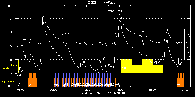 EIS Observation timeline overlay to GOES-Xray curve Code 1" 2" 40" 266" EIS Observations list for this event: STUDY ACRONYM ID DATE OBSERVED DESCRIPTION NOAA# TARGET 0 PRY_slot_contextLITE | 36979 | 2013/10/25 05:42:20 | EIS-AIA alignment | | Active Region TIMELINE ID DATE OBSERVED FITS FILE XCEN (+W/-E) YCEN (+N/-S) DUR ----------------------------------------------------------------------------------------------------------------- 36979 | 2013/10/25 05:42:20.000 | eis_l0_20131025_054220.fits.gz | -15.21 | -0.65 | 2m56s 1 Alignment_266 | 36980 | 2013/10/25 05:45:35 | EIS-AIA alignment | | Quiet Sun TIMELINE ID DATE OBSERVED FITS FILE XCEN (+W/-E) YCEN (+N/-S) DUR ----------------------------------------------------------------------------------------------------------------- 36980 | 2013/10/25 05:45:35.000 | eis_l0_20131025_054535.fits.gz | -132.57 | -0.50 | 1m22s 2 XRT_synop_AIA | 36981 | 2013/10/25 05:47:42 | EIS-AIA alignment | | Quiet Sun TIMELINE ID DATE OBSERVED FITS FILE XCEN (+W/-E) YCEN (+N/-S) DUR ----------------------------------------------------------------------------------------------------------------- 36981 | 2013/10/25 05:47:42.000 | eis_l0_20131025_054742.fits.gz | -132.57 | -0.27 | 10s 3 madj_ar_small | 37049 | 2013/10/25 06:42:36 | AR 11875 obs | | Active Region TIMELINE ID DATE OBSERVED FITS FILE XCEN (+W/-E) YCEN (+N/-S) DUR ----------------------------------------------------------------------------------------------------------------- 37049 | 2013/10/25 06:42:36.000 | eis_l0_20131025_064236.fits.gz | 405.72 | 39.21 | 3m18s 37049 | 2013/10/25 06:45:57.000 | eis_l0_20131025_064557.fits.gz | 406.11 | 39.44 | 3m19s 37049 | 2013/10/25 06:49:19.000 | eis_l0_20131025_064919.fits.gz | 406.65 | 39.36 | 3m18s 37049 | 2013/10/25 06:52:41.000 | eis_l0_20131025_065241.fits.gz | 407.03 | 39.44 | 3m18s 37049 | 2013/10/25 06:56:02.000 | eis_l0_20131025_065602.fits.gz | 407.49 | 39.36 | 3m19s 37049 | 2013/10/25 06:59:24.000 | eis_l0_20131025_065924.fits.gz | 408.04 | 39.44 | 3m19s 37049 | 2013/10/25 07:02:46.000 | eis_l0_20131025_070246.fits.gz | 408.42 | 39.44 | 3m18s 37049 | 2013/10/25 07:06:07.000 | eis_l0_20131025_070607.fits.gz | 408.89 | 39.52 | 3m18s 37049 | 2013/10/25 07:09:28.000 | eis_l0_20131025_070928.fits.gz | 409.35 | 39.52 | 3m19s 37049 | 2013/10/25 07:12:50.000 | eis_l0_20131025_071250.fits.gz | 409.97 | 39.36 | 3m18s 37049 | 2013/10/25 07:16:11.000 | eis_l0_20131025_071611.fits.gz | 410.43 | 39.59 | 3m19s 37049 | 2013/10/25 07:19:33.000 | eis_l0_20131025_071933.fits.gz | 410.82 | 39.59 | 3m18s 37049 | 2013/10/25 07:22:54.000 | eis_l0_20131025_072254.fits.gz | 411.36 | 39.59 | 3m19s 37049 | 2013/10/25 07:26:16.000 | eis_l0_20131025_072616.fits.gz | 411.74 | 39.67 | 3m18s 4 SK_DEEP_10x512_SLIT2 | 36982 | 2013/10/25 09:03:14 | HOP79 SOT irradiance scan (SE-scan), # | | Quiet Sun TIMELINE ID DATE OBSERVED FITS FILE XCEN (+W/-E) YCEN (+N/-S) DUR ----------------------------------------------------------------------------------------------------------------- 36982 | 2013/10/25 09:03:14.000 | eis_l0_20131025_090314.fits.gz | -9869.95 | -9963.20 | 5m8s 5 PRY_slot_contextLITE | 36983 | 2013/10/25 09:08:33 | HOP79 SOT irradiance scan (SE-scan), # | | Active Region TIMELINE ID DATE OBSERVED FITS FILE XCEN (+W/-E) YCEN (+N/-S) DUR ----------------------------------------------------------------------------------------------------------------- 36983 | 2013/10/25 09:08:33.000 | eis_l0_20131025_090833.fits.gz | -9884.69 | -9963.20 | 2m57s 6 SK_DEEP_10x512_SLIT2 | 36984 | 2013/10/25 09:19:02 | HOP79 SOT irradiance scan (SE-scan), # | | Quiet Sun TIMELINE ID DATE OBSERVED FITS FILE XCEN (+W/-E) YCEN (+N/-S) DUR ----------------------------------------------------------------------------------------------------------------- 36984 | 2013/10/25 09:19:02.000 | eis_l0_20131025_091902.fits.gz | -756.50 | 177.32 | 5m8s 7 PRY_slot_contextLITE | 36985 | 2013/10/25 09:24:21 | HOP79 SOT irradiance scan (SE-scan), # | | Active Region TIMELINE ID DATE OBSERVED FITS FILE XCEN (+W/-E) YCEN (+N/-S) DUR ----------------------------------------------------------------------------------------------------------------- 36985 | 2013/10/25 09:24:21.000 | eis_l0_20131025_092421.fits.gz | -771.23 | 177.40 | 2m56s 8 SK_DEEP_10x512_SLIT2 | 36986 | 2013/10/25 09:48:33 | HOP79 SOT irradiance scan (SE-scan), # | | Quiet Sun TIMELINE ID DATE OBSERVED FITS FILE XCEN (+W/-E) YCEN (+N/-S) DUR ----------------------------------------------------------------------------------------------------------------- 36986 | 2013/10/25 09:48:33.000 | eis_l0_20131025_094833.fits.gz | -577.59 | 162.57 | 5m8s 9 PRY_slot_contextLITE | 36987 | 2013/10/25 09:53:52 | HOP79 SOT irradiance scan (SE-scan), # | | Active Region TIMELINE ID DATE OBSERVED FITS FILE XCEN (+W/-E) YCEN (+N/-S) DUR ----------------------------------------------------------------------------------------------------------------- 36987 | 2013/10/25 09:53:52.000 | eis_l0_20131025_095352.fits.gz | -592.41 | 162.57 | 2m57s 10 SK_DEEP_10x512_SLIT2 | 36988 | 2013/10/25 10:03:33 | HOP79 SOT irradiance scan (SE-scan), # | | Quiet Sun TIMELINE ID DATE OBSERVED FITS FILE XCEN (+W/-E) YCEN (+N/-S) DUR ----------------------------------------------------------------------------------------------------------------- 36988 | 2013/10/25 10:03:33.000 | eis_l0_20131025_100333.fits.gz | -393.59 | 152.60 | 5m8s 11 PRY_slot_contextLITE | 36989 | 2013/10/25 10:08:52 | HOP79 SOT irradiance scan (SE-scan), # | | Active Region TIMELINE ID DATE OBSERVED FITS FILE XCEN (+W/-E) YCEN (+N/-S) DUR ----------------------------------------------------------------------------------------------------------------- 36989 | 2013/10/25 10:08:52.000 | eis_l0_20131025_100852.fits.gz | -408.33 | 152.45 | 2m56s 12 SK_DEEP_10x512_SLIT2 | 36990 | 2013/10/25 10:18:33 | HOP79 SOT irradiance scan (SE-scan), # | | Quiet Sun TIMELINE ID DATE OBSERVED FITS FILE XCEN (+W/-E) YCEN (+N/-S) DUR -------------------
