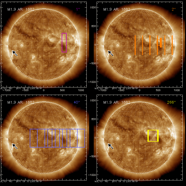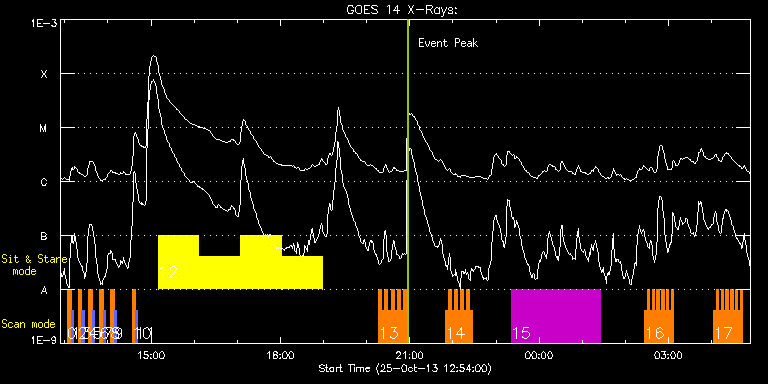EIS Observation timeline overlay to GOES-Xray curve Code 1" 2" 40" 266" EIS Observations list for this event: STUDY ACRONYM ID DATE OBSERVED DESCRIPTION NOAA# TARGET 0 SK_DEEP_10x512_SLIT2 | 37012 | 2013/10/25 13:03:33 | HOP79 SOT irradiance scan (SE-scan), # | | Quiet Sun TIMELINE ID DATE OBSERVED FITS FILE XCEN (+W/-E) YCEN (+N/-S) DUR ----------------------------------------------------------------------------------------------------------------- 37012 | 2013/10/25 13:03:33.000 | eis_l0_20131025_130333.fits.gz | -116.42 | -20.58 | 5m8s 1 PRY_slot_contextLITE | 37013 | 2013/10/25 13:08:52 | HOP79 SOT irradiance scan (SE-scan), # | | Active Region TIMELINE ID DATE OBSERVED FITS FILE XCEN (+W/-E) YCEN (+N/-S) DUR ----------------------------------------------------------------------------------------------------------------- 37013 | 2013/10/25 13:08:52.000 | eis_l0_20131025_130852.fits.gz | -131.08 | -20.58 | 2m57s 2 SK_DEEP_10x512_SLIT2 | 37014 | 2013/10/25 13:18:33 | HOP79 SOT irradiance scan (SE-scan), # | | Quiet Sun TIMELINE ID DATE OBSERVED FITS FILE XCEN (+W/-E) YCEN (+N/-S) DUR ----------------------------------------------------------------------------------------------------------------- 37014 | 2013/10/25 13:18:33.000 | eis_l0_20131025_131833.fits.gz | 82.64 | -20.58 | 5m8s 3 PRY_slot_contextLITE | 37015 | 2013/10/25 13:23:52 | HOP79 SOT irradiance scan (SE-scan), # | | Active Region TIMELINE ID DATE OBSERVED FITS FILE XCEN (+W/-E) YCEN (+N/-S) DUR ----------------------------------------------------------------------------------------------------------------- 37015 | 2013/10/25 13:23:52.000 | eis_l0_20131025_132352.fits.gz | 67.83 | -20.66 | 2m57s 4 SK_DEEP_10x512_SLIT2 | 37016 | 2013/10/25 13:33:33 | HOP79 SOT irradiance scan (SE-scan), # | | Quiet Sun TIMELINE ID DATE OBSERVED FITS FILE XCEN (+W/-E) YCEN (+N/-S) DUR ----------------------------------------------------------------------------------------------------------------- 37016 | 2013/10/25 13:33:33.000 | eis_l0_20131025_133333.fits.gz | 281.40 | -20.66 | 5m8s 5 PRY_slot_contextLITE | 37017 | 2013/10/25 13:38:52 | HOP79 SOT irradiance scan (SE-scan), # | 1875 | Active Region TIMELINE ID DATE OBSERVED FITS FILE XCEN (+W/-E) YCEN (+N/-S) DUR ----------------------------------------------------------------------------------------------------------------- 37017 | 2013/10/25 13:38:52.000 | eis_l0_20131025_133852.fits.gz | 266.59 | -20.58 | 2m56s 6 SK_DEEP_10x512_SLIT2 | 37018 | 2013/10/25 13:48:33 | HOP79 SOT irradiance scan (SE-scan), # | | Quiet Sun TIMELINE ID DATE OBSERVED FITS FILE XCEN (+W/-E) YCEN (+N/-S) DUR ----------------------------------------------------------------------------------------------------------------- 37018 | 2013/10/25 13:48:33.000 | eis_l0_20131025_134833.fits.gz | 480.39 | -20.66 | 5m7s 7 PRY_slot_contextLITE | 37019 | 2013/10/25 13:53:52 | HOP79 SOT irradiance scan (SE-scan), # | 1875 | Active Region TIMELINE ID DATE OBSERVED FITS FILE XCEN (+W/-E) YCEN (+N/-S) DUR ----------------------------------------------------------------------------------------------------------------- 37019 | 2013/10/25 13:53:52.000 | eis_l0_20131025_135352.fits.gz | 465.73 | -20.51 | 2m57s 8 SK_DEEP_10x512_SLIT2 | 37020 | 2013/10/25 14:03:33 | HOP79 SOT irradiance scan (SE-scan), # | | Quiet Sun TIMELINE ID DATE OBSERVED FITS FILE XCEN (+W/-E) YCEN (+N/-S) DUR ----------------------------------------------------------------------------------------------------------------- 37020 | 2013/10/25 14:03:33.000 | eis_l0_20131025_140333.fits.gz | 679.54 | -20.58 | 5m8s 9 PRY_slot_contextLITE | 37021 | 2013/10/25 14:08:52 | HOP79 SOT irradiance scan (SE-scan), # | | Active Region TIMELINE ID DATE OBSERVED FITS FILE XCEN (+W/-E) YCEN (+N/-S) DUR ----------------------------------------------------------------------------------------------------------------- 37021 | 2013/10/25 14:08:52.000 | eis_l0_20131025_140852.fits.gz | 664.72 | -20.58 | 2m56s 10 SK_DEEP_10x512_SLIT2 | 37022 | 2013/10/25 14:33:33 | HOP79 SOT irradiance scan (SE-scan), # | | Quiet Sun TIMELINE ID DATE OBSERVED FITS FILE XCEN (+W/-E) YCEN (+N/-S) DUR ----------------------------------------------------------------------------------------------------------------- 37022 | 2013/10/25 14:33:33.000 | eis_l0_20131025_143333.fits.gz | 878.60 | -20.58 | 5m8s 11 PRY_slot_contextLITE | 37023 | 2013/10/25 14:38:52 | HOP79 SOT irradiance scan (SE-scan), # | | Active Region TIMELINE ID DATE OBSERVED FITS FILE XCEN (+W/-E) YCEN (+N/-S) DUR ----------------------------------------------------------------------------------------------------------------- 37023 | 2013/10/25 14:38:52.000 | eis_l0_20131025_143852.fits.gz | 863.79 | -20.66 | 2m56s 12 Flare266_Hunter01 | 37036 | 2013/10/25 15:10:14 | AR 11875 obs (EIS-FT obs) | 1875 | Flare TIMELINE ID DATE OBSERVED FITS FILE XCEN (+W/-E) YCEN (+N/-S) DUR ----------------------------------------------------------------------------------------------------------------- 37036 | 2013/10/25 15:10:14.000 | eis_l0_20131025_151014.fits.gz | 351.83 | 43.07 | 56m22s 37036 | 2013/10/25 16:07:28.000 | eis_l0_20131025_160728.fits.gz | 359.71 | 43.53 | 56m23s 37036 | 2013/10/25 17:04:43.000 | eis_l0_20131025_170443.fits.gz | 367.36 | 43.84 | 56m22s 37036 | 2013/10/25 18:01:57.000 | eis_l0_20131025_180157.fits.gz | 374.85 | 44.38 | 56m23s 13 HH_Flare_162x152 | 37039 | 2013/10/25 20:16:58 | AR 11875 obs | | Flare TIMELINE ID DATE OBSERVED FITS FILE XCEN (+W/-E) YCEN (+N/-S) DUR ----------------------------------------------------------------------------------------------------------------- 37039 | 2013/10/25 20:16:58.000 | eis_l0_20131025_201658.fits.gz | 524.29 | 45.31 | 4m11s 37039 | 2013/10/25 20:21:12.000 | eis_l0_20131025_202112.fits.gz | 524.83 | 45.46 | 4m10s 37039 | 2013/10/25 20:25:25.000 | eis_l0_20131025_202525.fits.gz | 525.45 | 45.46 | 4m11s 37039 | 2013/10/25 20:29:39.000 | eis_l0_20131025_202939.fits.gz | 525.99 | 45.39 | 4m10s 370