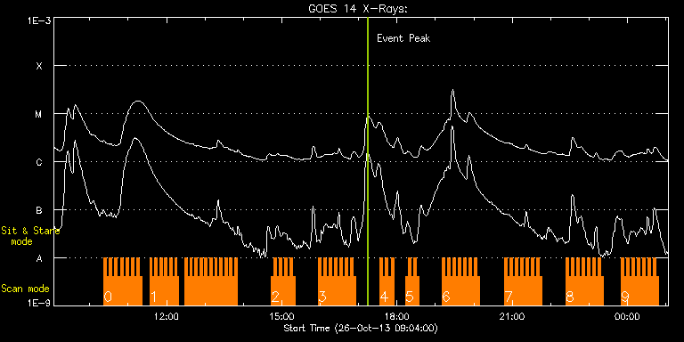 EIS Observation timeline overlay to GOES-Xray curve Code 1" 2" 40" 266" EIS Observations list for this event: STUDY ACRONYM ID DATE OBSERVED DESCRIPTION NOAA# TARGET 0 HH_Flare_162x152 | 37057 | 2013/10/26 10:22:20 | Active Region Observation | 1882 | Flare TIMELINE ID DATE OBSERVED FITS FILE XCEN (+W/-E) YCEN (+N/-S) DUR ----------------------------------------------------------------------------------------------------------------- 37057 | 2013/10/26 10:22:20.000 | eis_l0_20131026_102220.fits.gz | -827.45 | -205.51 | 4m10s 37057 | 2013/10/26 10:26:33.000 | eis_l0_20131026_102633.fits.gz | -827.06 | -205.59 | 4m11s 37057 | 2013/10/26 10:30:47.000 | eis_l0_20131026_103047.fits.gz | -826.75 | -205.75 | 4m10s 37057 | 2013/10/26 10:35:00.000 | eis_l0_20131026_103500.fits.gz | -826.36 | -205.82 | 4m11s 37057 | 2013/10/26 10:39:13.000 | eis_l0_20131026_103913.fits.gz | -826.13 | -205.67 | 4m11s 37057 | 2013/10/26 10:43:27.000 | eis_l0_20131026_104327.fits.gz | -825.74 | -205.90 | 4m10s 37057 | 2013/10/26 10:47:40.000 | eis_l0_20131026_104740.fits.gz | -825.51 | -205.98 | 4m11s 37057 | 2013/10/26 10:51:54.000 | eis_l0_20131026_105154.fits.gz | -825.13 | -205.98 | 4m10s 37057 | 2013/10/26 10:56:07.000 | eis_l0_20131026_105607.fits.gz | -824.82 | -205.98 | 4m11s 37057 | 2013/10/26 11:00:20.000 | eis_l0_20131026_110020.fits.gz | -824.51 | -206.13 | 4m11s 37057 | 2013/10/26 11:04:34.000 | eis_l0_20131026_110434.fits.gz | -824.20 | -206.06 | 4m10s 37057 | 2013/10/26 11:08:47.000 | eis_l0_20131026_110847.fits.gz | -823.74 | -206.37 | 4m11s 37057 | 2013/10/26 11:13:01.000 | eis_l0_20131026_111301.fits.gz | -823.51 | -206.21 | 4m10s 37057 | 2013/10/26 11:17:14.000 | eis_l0_20131026_111714.fits.gz | -823.20 | -206.21 | 4m11s 1 cam_artb_lite_v2 | 37083 | 2013/10/26 11:33:40 | AR Obs - High cadence | | Active Region TIMELINE ID DATE OBSERVED FITS FILE XCEN (+W/-E) YCEN (+N/-S) DUR ----------------------------------------------------------------------------------------------------------------- 37083 | 2013/10/26 11:33:40.000 | eis_l0_20131026_113340.fits.gz | 694.48 | 36.98 | 3m52s 37083 | 2013/10/26 11:37:34.000 | eis_l0_20131026_113734.fits.gz | 694.79 | 37.06 | 3m52s 37083 | 2013/10/26 11:41:29.000 | eis_l0_20131026_114129.fits.gz | 695.09 | 37.13 | 3m52s 37083 | 2013/10/26 11:45:23.000 | eis_l0_20131026_114523.fits.gz | 695.71 | 37.13 | 3m52s 37083 | 2013/10/26 11:49:18.000 | eis_l0_20131026_114918.fits.gz | 696.02 | 37.13 | 3m51s 37083 | 2013/10/26 11:53:12.000 | eis_l0_20131026_115312.fits.gz | 696.48 | 37.13 | 3m52s 37083 | 2013/10/26 11:57:07.000 | eis_l0_20131026_115707.fits.gz | 696.87 | 37.29 | 3m52s 37083 | 2013/10/26 12:01:01.000 | eis_l0_20131026_120101.fits.gz | 697.34 | 37.21 | 3m52s 37083 | 2013/10/26 12:04:56.000 | eis_l0_20131026_120456.fits.gz | 697.72 | 37.37 | 3m52s 37083 | 2013/10/26 12:08:50.000 | eis_l0_20131026_120850.fits.gz | 698.18 | 37.21 | 3m52s 37083 | 2013/10/26 12:12:45.000 | eis_l0_20131026_121245.fits.gz | 698.57 | 37.44 | 3m52s 37083 | 2013/10/26 12:16:39.000 | eis_l0_20131026_121639.fits.gz | 699.11 | 37.44 | 1m32s 37083 | 2013/10/26 12:28:58.000 | eis_l0_20131026_122858.fits.gz | 700.35 | 37.60 | 3m17s 37083 | 2013/10/26 12:32:18.000 | eis_l0_20131026_123218.fits.gz | 700.73 | 37.60 | 3m51s 37083 | 2013/10/26 12:36:12.000 | eis_l0_20131026_123612.fits.gz | 701.20 | 37.60 | 3m52s 37083 | 2013/10/26 12:40:06.000 | eis_l0_20131026_124006.fits.gz | 701.58 | 37.60 | 3m52s 37083 | 2013/10/26 12:44:01.000 | eis_l0_20131026_124401.fits.gz | 702.05 | 37.75 | 3m51s 37083 | 2013/10/26 12:47:55.000 | eis_l0_20131026_124755.fits.gz | 702.43 | 37.83 | 3m51s 37083 | 2013/10/26 12:51:49.000 | eis_l0_20131026_125149.fits.gz | 702.82 | 37.75 | 3m52s 37083 | 2013/10/26 12:55:44.000 | eis_l0_20131026_125544.fits.gz | 703.28 | 37.91 | 3m52s 37083 | 2013/10/26 12:59:38.000 | eis_l0_20131026_125938.fits.gz | 703.67 | 37.75 | 3m52s 37083 | 2013/10/26 13:03:33.000 | eis_l0_20131026_130333.fits.gz | 704.13 | 37.91 | 3m51s 37083 | 2013/10/26 13:07:27.000 | eis_l0_20131026_130727.fits.gz | 704.60 | 37.98 | 3m52s 37083 | 2013/10/26 13:11:22.000 | eis_l0_20131026_131122.fits.gz | 704.91 | 38.06 | 3m52s 37083 | 2013/10/26 13:15:16.000 | eis_l0_20131026_131516.fits.gz | 705.37 | 38.14 | 3m52s 37083 | 2013/10/26 13:19:11.000 | eis_l0_20131026_131911.fits.gz | 705.76 | 38.14 | 3m52s 37083 | 2013/10/26 13:23:05.000 | eis_l0_20131026_132305.fits.gz | 706.14 | 38.29 | 3m52s 37083 | 2013/10/26 13:27:00.000 | eis_l0_20131026_132700.fits.gz | 706.60 | 38.06 | 3m51s 37083 | 2013/10/26 13:30:54.000 | eis_l0_20131026_133054.fits.gz | 707.07 | 38.22 | 3m52s 37083 | 2013/10/26 13:34:49.000 | eis_l0_20131026_133449.fits.gz | 707.45 | 38.29 | 3m52s 37083 | 2013/10/26 13:38:43.000 | eis_l0_20131026_133843.fits.gz | 707.99 | 38.37 | 3m52s 37083 | 2013/10/26 13:42:37.000 | eis_l0_20131026_134237.fits.gz | 708.38 | 38.29 | 3m52s 37083 | 2013/10/26 13:46:32.000 | eis_l0_20131026_134632.fits.gz | 708.69 | 38.60 | 3m51s 2 HH_Flare_162x152 | 37085 | 2013/10/26 14:43:42 | Active Region Observation | 1882 | Flare TIMELINE ID DATE OBSERVED FITS FILE XCEN (+W/-E) YCEN (+N/-S) DUR ----------------------------------------------------------------------------------------------------------------- 37085 | 2013/10/26 14:43:42.000 | eis_l0_20131026_144342.fits.gz | -806.82 | -208.60 | 4m10s 37085 | 2013/10/26 14:47:55.000 | eis_l0_20131026_144755.fits.gz | -806.51 | -208.60 | 4m11s 37085 | 2013/10/26 14:52:08.000 | eis_l0_20131026_145208.fits.gz | -806.12 | -208.68 | 4m11s 37085 | 2013/10/26 14:56:22.000 | eis_l0_20131026_145622.fits.gz | -805.82 | -208.60 | 4m10s 37085 | 2013/10/26 15:00:35.000 | eis_l0_20131026_150035.fits.gz | -805.43 | -208.76 | 4m11s 37085 | 2013/10/26 15:04:49.000 | eis_l0_20131026_150449.fits.gz | -805.04 | -208.60 | 4m10s 37085 | 2013/10/26 15:09:02.000 | eis_l0_20131026_150902.fits.gz | -804.73 | -208.99 | 4m11s 37085 | 2013/10/26 15:13:15.000 | eis_l0_20131026_151315.fits.gz | -804.42 | -208.91 | 4m11s 370