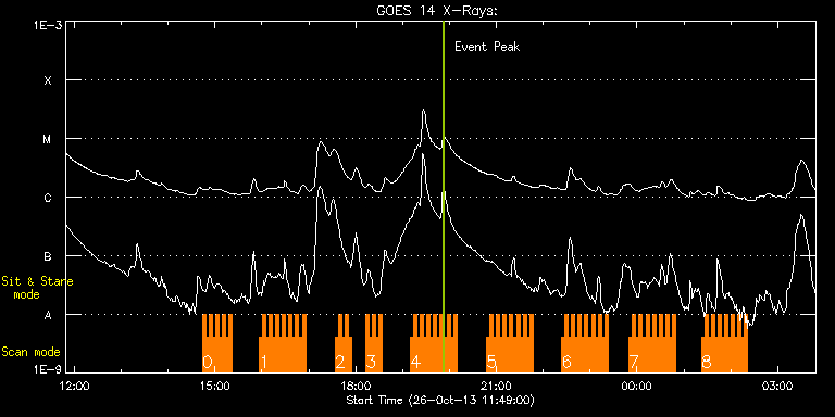 EIS Observation timeline overlay to GOES-Xray curve Code 1" 2" 40" 266" EIS Observations list for this event: STUDY ACRONYM ID DATE OBSERVED DESCRIPTION NOAA# TARGET 0 HH_Flare_162x152 | 37085 | 2013/10/26 14:43:42 | Active Region Observation | 1882 | Flare TIMELINE ID DATE OBSERVED FITS FILE XCEN (+W/-E) YCEN (+N/-S) DUR ----------------------------------------------------------------------------------------------------------------- 37085 | 2013/10/26 14:43:42.000 | eis_l0_20131026_144342.fits.gz | -806.82 | -208.60 | 4m10s 37085 | 2013/10/26 14:47:55.000 | eis_l0_20131026_144755.fits.gz | -806.51 | -208.60 | 4m11s 37085 | 2013/10/26 14:52:08.000 | eis_l0_20131026_145208.fits.gz | -806.12 | -208.68 | 4m11s 37085 | 2013/10/26 14:56:22.000 | eis_l0_20131026_145622.fits.gz | -805.82 | -208.60 | 4m10s 37085 | 2013/10/26 15:00:35.000 | eis_l0_20131026_150035.fits.gz | -805.43 | -208.76 | 4m11s 37085 | 2013/10/26 15:04:49.000 | eis_l0_20131026_150449.fits.gz | -805.04 | -208.60 | 4m10s 37085 | 2013/10/26 15:09:02.000 | eis_l0_20131026_150902.fits.gz | -804.73 | -208.99 | 4m11s 37085 | 2013/10/26 15:13:15.000 | eis_l0_20131026_151315.fits.gz | -804.42 | -208.91 | 4m11s 37085 | 2013/10/26 15:17:29.000 | eis_l0_20131026_151729.fits.gz | -804.12 | -208.91 | 4m10s 1 HH_Flare_162x152 | 37058 | 2013/10/26 15:56:43 | Active Region Observation | 1882 | Flare TIMELINE ID DATE OBSERVED FITS FILE XCEN (+W/-E) YCEN (+N/-S) DUR ----------------------------------------------------------------------------------------------------------------- 37058 | 2013/10/26 15:56:43.000 | eis_l0_20131026_155643.fits.gz | -800.79 | -209.38 | 4m11s 37058 | 2013/10/26 16:00:57.000 | eis_l0_20131026_160057.fits.gz | -800.41 | -209.46 | 4m11s 37058 | 2013/10/26 16:05:10.000 | eis_l0_20131026_160510.fits.gz | -800.10 | -209.38 | 4m11s 37058 | 2013/10/26 16:09:24.000 | eis_l0_20131026_160924.fits.gz | -799.79 | -209.38 | 4m10s 37058 | 2013/10/26 16:13:37.000 | eis_l0_20131026_161337.fits.gz | -799.40 | -209.61 | 4m11s 37058 | 2013/10/26 16:17:51.000 | eis_l0_20131026_161751.fits.gz | -799.02 | -209.69 | 4m10s 37058 | 2013/10/26 16:22:04.000 | eis_l0_20131026_162204.fits.gz | -798.63 | -209.53 | 4m11s 37058 | 2013/10/26 16:26:18.000 | eis_l0_20131026_162618.fits.gz | -798.24 | -209.69 | 4m11s 37058 | 2013/10/26 16:30:31.000 | eis_l0_20131026_163031.fits.gz | -798.01 | -209.76 | 4m11s 37058 | 2013/10/26 16:34:45.000 | eis_l0_20131026_163445.fits.gz | -797.63 | -209.76 | 4m11s 37058 | 2013/10/26 16:38:59.000 | eis_l0_20131026_163859.fits.gz | -797.32 | -209.76 | 4m10s 37058 | 2013/10/26 16:43:12.000 | eis_l0_20131026_164312.fits.gz | -796.93 | -209.76 | 4m11s 37058 | 2013/10/26 16:47:25.000 | eis_l0_20131026_164725.fits.gz | -796.55 | -209.84 | 4m11s 37058 | 2013/10/26 16:51:39.000 | eis_l0_20131026_165139.fits.gz | -796.31 | -209.84 | 4m10s 2 HH_Flare_162x152 | 37086 | 2013/10/26 17:33:44 | Active Region Observation | 1882 | Flare TIMELINE ID DATE OBSERVED FITS FILE XCEN (+W/-E) YCEN (+N/-S) DUR ----------------------------------------------------------------------------------------------------------------- 37086 | 2013/10/26 17:33:44.000 | eis_l0_20131026_173344.fits.gz | -792.68 | -210.30 | 4m10s 37086 | 2013/10/26 17:37:57.000 | eis_l0_20131026_173757.fits.gz | -792.30 | -210.46 | 4m11s 37086 | 2013/10/26 17:42:10.000 | eis_l0_20131026_174210.fits.gz | -791.91 | -210.30 | 4m11s 37086 | 2013/10/26 17:46:24.000 | eis_l0_20131026_174624.fits.gz | -791.53 | -210.54 | 4m11s 37086 | 2013/10/26 17:50:37.000 | eis_l0_20131026_175037.fits.gz | -791.22 | -210.54 | 4m11s 3 HH_Flare_162x152 | 37059 | 2013/10/26 18:13:14 | Active Region Observation | 1882 | Flare TIMELINE ID DATE OBSERVED FITS FILE XCEN (+W/-E) YCEN (+N/-S) DUR ----------------------------------------------------------------------------------------------------------------- 37059 | 2013/10/26 18:13:14.000 | eis_l0_20131026_181314.fits.gz | -789.28 | -210.92 | 4m11s 37059 | 2013/10/26 18:17:28.000 | eis_l0_20131026_181728.fits.gz | -788.90 | -210.92 | 4m10s 37059 | 2013/10/26 18:21:41.000 | eis_l0_20131026_182141.fits.gz | -788.59 | -210.77 | 4m11s 37059 | 2013/10/26 18:25:55.000 | eis_l0_20131026_182555.fits.gz | -788.28 | -210.85 | 4m10s 37059 | 2013/10/26 18:30:08.000 | eis_l0_20131026_183008.fits.gz | -787.74 | -211.00 | 4m11s 4 HH_Flare_162x152 | 37060 | 2013/10/26 19:10:13 | Active Region Observation | 1882 | Flare TIMELINE ID DATE OBSERVED FITS FILE XCEN (+W/-E) YCEN (+N/-S) DUR ----------------------------------------------------------------------------------------------------------------- 37060 | 2013/10/26 19:10:13.000 | eis_l0_20131026_191013.fits.gz | -784.42 | -211.31 | 4m11s 37060 | 2013/10/26 19:14:27.000 | eis_l0_20131026_191427.fits.gz | -783.96 | -211.31 | 4m10s 37060 | 2013/10/26 19:18:40.000 | eis_l0_20131026_191840.fits.gz | -783.65 | -211.54 | 4m11s 37060 | 2013/10/26 19:22:54.000 | eis_l0_20131026_192254.fits.gz | -783.26 | -211.46 | 4m10s 37060 | 2013/10/26 19:27:07.000 | eis_l0_20131026_192707.fits.gz | -782.95 | -211.54 | 4m11s 37060 | 2013/10/26 19:31:20.000 | eis_l0_20131026_193120.fits.gz | -782.49 | -211.54 | 4m11s 37060 | 2013/10/26 19:35:34.000 | eis_l0_20131026_193534.fits.gz | -782.10 | -211.62 | 4m11s 37060 | 2013/10/26 19:39:47.000 | eis_l0_20131026_193947.fits.gz | -781.87 | -211.62 | 4m11s 37060 | 2013/10/26 19:44:01.000 | eis_l0_20131026_194401.fits.gz | -781.48 | -211.77 | 4m11s 37060 | 2013/10/26 19:48:15.000 | eis_l0_20131026_194815.fits.gz | -781.02 | -211.70 | 4m10s 37060 | 2013/10/26 19:52:28.000 | eis_l0_20131026_195228.fits.gz | -780.71 | -211.77 | 4m11s 37060 | 2013/10/26 19:56:42.000 | eis_l0_20131026_195642.fits.gz | -780.32 | -212.08 | 4m10s 37060 | 2013/10/26 20:00:55.000 | eis_l0_20131026_200055.fits.gz | -779.94 | -211.77 | 4m11s 37060 | 2013/10/26 20:05:09.000 | eis_l0_20131026_200509.fits.gz | -779.47 | -211.93 | 4m10s 5 HH_Flare_162x152 | 37061 | 2013/10/26 20:47:43 | Active Region Observation | 1882 | Flare TIMELINE ID
