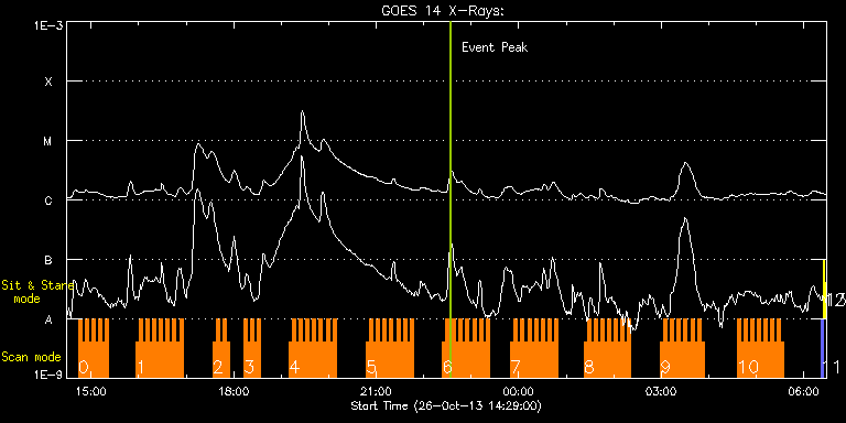 EIS Observation timeline overlay to GOES-Xray curve Code 1" 2" 40" 266" EIS Observations list for this event: STUDY ACRONYM ID DATE OBSERVED DESCRIPTION NOAA# TARGET 0 HH_Flare_162x152 | 37085 | 2013/10/26 14:43:42 | Active Region Observation | 1882 | Flare TIMELINE ID DATE OBSERVED FITS FILE XCEN (+W/-E) YCEN (+N/-S) DUR ----------------------------------------------------------------------------------------------------------------- 37085 | 2013/10/26 14:43:42.000 | eis_l0_20131026_144342.fits.gz | -806.82 | -208.60 | 4m10s 37085 | 2013/10/26 14:47:55.000 | eis_l0_20131026_144755.fits.gz | -806.51 | -208.60 | 4m11s 37085 | 2013/10/26 14:52:08.000 | eis_l0_20131026_145208.fits.gz | -806.12 | -208.68 | 4m11s 37085 | 2013/10/26 14:56:22.000 | eis_l0_20131026_145622.fits.gz | -805.82 | -208.60 | 4m10s 37085 | 2013/10/26 15:00:35.000 | eis_l0_20131026_150035.fits.gz | -805.43 | -208.76 | 4m11s 37085 | 2013/10/26 15:04:49.000 | eis_l0_20131026_150449.fits.gz | -805.04 | -208.60 | 4m10s 37085 | 2013/10/26 15:09:02.000 | eis_l0_20131026_150902.fits.gz | -804.73 | -208.99 | 4m11s 37085 | 2013/10/26 15:13:15.000 | eis_l0_20131026_151315.fits.gz | -804.42 | -208.91 | 4m11s 37085 | 2013/10/26 15:17:29.000 | eis_l0_20131026_151729.fits.gz | -804.12 | -208.91 | 4m10s 1 HH_Flare_162x152 | 37058 | 2013/10/26 15:56:43 | Active Region Observation | 1882 | Flare TIMELINE ID DATE OBSERVED FITS FILE XCEN (+W/-E) YCEN (+N/-S) DUR ----------------------------------------------------------------------------------------------------------------- 37058 | 2013/10/26 15:56:43.000 | eis_l0_20131026_155643.fits.gz | -800.79 | -209.38 | 4m11s 37058 | 2013/10/26 16:00:57.000 | eis_l0_20131026_160057.fits.gz | -800.41 | -209.46 | 4m11s 37058 | 2013/10/26 16:05:10.000 | eis_l0_20131026_160510.fits.gz | -800.10 | -209.38 | 4m11s 37058 | 2013/10/26 16:09:24.000 | eis_l0_20131026_160924.fits.gz | -799.79 | -209.38 | 4m10s 37058 | 2013/10/26 16:13:37.000 | eis_l0_20131026_161337.fits.gz | -799.40 | -209.61 | 4m11s 37058 | 2013/10/26 16:17:51.000 | eis_l0_20131026_161751.fits.gz | -799.02 | -209.69 | 4m10s 37058 | 2013/10/26 16:22:04.000 | eis_l0_20131026_162204.fits.gz | -798.63 | -209.53 | 4m11s 37058 | 2013/10/26 16:26:18.000 | eis_l0_20131026_162618.fits.gz | -798.24 | -209.69 | 4m11s 37058 | 2013/10/26 16:30:31.000 | eis_l0_20131026_163031.fits.gz | -798.01 | -209.76 | 4m11s 37058 | 2013/10/26 16:34:45.000 | eis_l0_20131026_163445.fits.gz | -797.63 | -209.76 | 4m11s 37058 | 2013/10/26 16:38:59.000 | eis_l0_20131026_163859.fits.gz | -797.32 | -209.76 | 4m10s 37058 | 2013/10/26 16:43:12.000 | eis_l0_20131026_164312.fits.gz | -796.93 | -209.76 | 4m11s 37058 | 2013/10/26 16:47:25.000 | eis_l0_20131026_164725.fits.gz | -796.55 | -209.84 | 4m11s 37058 | 2013/10/26 16:51:39.000 | eis_l0_20131026_165139.fits.gz | -796.31 | -209.84 | 4m10s 2 HH_Flare_162x152 | 37086 | 2013/10/26 17:33:44 | Active Region Observation | 1882 | Flare TIMELINE ID DATE OBSERVED FITS FILE XCEN (+W/-E) YCEN (+N/-S) DUR ----------------------------------------------------------------------------------------------------------------- 37086 | 2013/10/26 17:33:44.000 | eis_l0_20131026_173344.fits.gz | -792.68 | -210.30 | 4m10s 37086 | 2013/10/26 17:37:57.000 | eis_l0_20131026_173757.fits.gz | -792.30 | -210.46 | 4m11s 37086 | 2013/10/26 17:42:10.000 | eis_l0_20131026_174210.fits.gz | -791.91 | -210.30 | 4m11s 37086 | 2013/10/26 17:46:24.000 | eis_l0_20131026_174624.fits.gz | -791.53 | -210.54 | 4m11s 37086 | 2013/10/26 17:50:37.000 | eis_l0_20131026_175037.fits.gz | -791.22 | -210.54 | 4m11s 3 HH_Flare_162x152 | 37059 | 2013/10/26 18:13:14 | Active Region Observation | 1882 | Flare TIMELINE ID DATE OBSERVED FITS FILE XCEN (+W/-E) YCEN (+N/-S) DUR ----------------------------------------------------------------------------------------------------------------- 37059 | 2013/10/26 18:13:14.000 | eis_l0_20131026_181314.fits.gz | -789.28 | -210.92 | 4m11s 37059 | 2013/10/26 18:17:28.000 | eis_l0_20131026_181728.fits.gz | -788.90 | -210.92 | 4m10s 37059 | 2013/10/26 18:21:41.000 | eis_l0_20131026_182141.fits.gz | -788.59 | -210.77 | 4m11s 37059 | 2013/10/26 18:25:55.000 | eis_l0_20131026_182555.fits.gz | -788.28 | -210.85 | 4m10s 37059 | 2013/10/26 18:30:08.000 | eis_l0_20131026_183008.fits.gz | -787.74 | -211.00 | 4m11s 4 HH_Flare_162x152 | 37060 | 2013/10/26 19:10:13 | Active Region Observation | 1882 | Flare TIMELINE ID DATE OBSERVED FITS FILE XCEN (+W/-E) YCEN (+N/-S) DUR ----------------------------------------------------------------------------------------------------------------- 37060 | 2013/10/26 19:10:13.000 | eis_l0_20131026_191013.fits.gz | -784.42 | -211.31 | 4m11s 37060 | 2013/10/26 19:14:27.000 | eis_l0_20131026_191427.fits.gz | -783.96 | -211.31 | 4m10s 37060 | 2013/10/26 19:18:40.000 | eis_l0_20131026_191840.fits.gz | -783.65 | -211.54 | 4m11s 37060 | 2013/10/26 19:22:54.000 | eis_l0_20131026_192254.fits.gz | -783.26 | -211.46 | 4m10s 37060 | 2013/10/26 19:27:07.000 | eis_l0_20131026_192707.fits.gz | -782.95 | -211.54 | 4m11s 37060 | 2013/10/26 19:31:20.000 | eis_l0_20131026_193120.fits.gz | -782.49 | -211.54 | 4m11s 37060 | 2013/10/26 19:35:34.000 | eis_l0_20131026_193534.fits.gz | -782.10 | -211.62 | 4m11s 37060 | 2013/10/26 19:39:47.000 | eis_l0_20131026_193947.fits.gz | -781.87 | -211.62 | 4m11s 37060 | 2013/10/26 19:44:01.000 | eis_l0_20131026_194401.fits.gz | -781.48 | -211.77 | 4m11s 37060 | 2013/10/26 19:48:15.000 | eis_l0_20131026_194815.fits.gz | -781.02 | -211.70 | 4m10s 37060 | 2013/10/26 19:52:28.000 | eis_l0_20131026_195228.fits.gz | -780.71 | -211.77 | 4m11s 37060 | 2013/10/26 19:56:42.000 | eis_l0_20131026_195642.fits.gz | -780.32 | -212.08 | 4m10s 37060 | 2013/10/26 20:00:55.000 | eis_l0_20131026_200055.fits.gz | -779.94 | -211.77 | 4m11s 37060 | 2013/10/26 20:05:09.000 | eis_l0_20131026_200509.fits.gz | -779.47 | -211.93 | 4m10s 5 HH_Flare_162x152 | 37061 | 2013/10/26 20:47:43 | Active Region Observation | 1882 | Flare TIMELINE ID