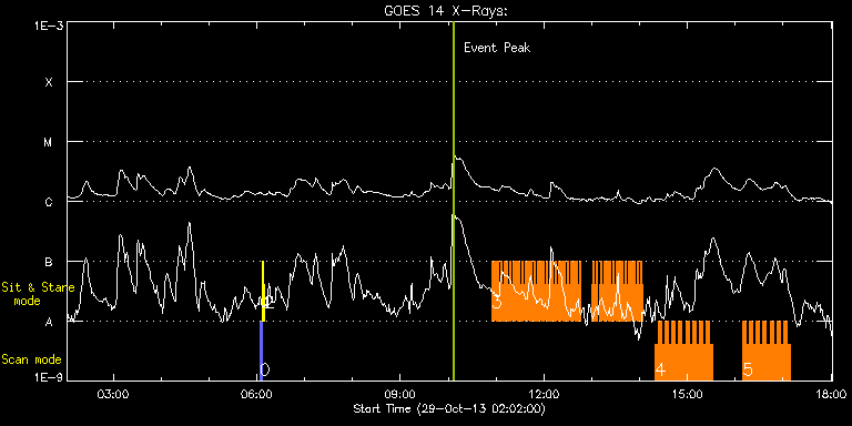 EIS Observation timeline overlay to GOES-Xray curve