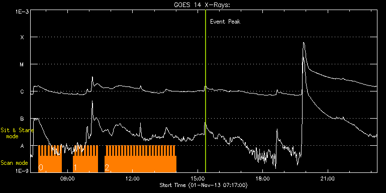 EIS Observation timeline overlay to GOES-Xray curve Code 1" 2" 40" 266" EIS Observations list for this event: STUDY ACRONYM ID DATE OBSERVED DESCRIPTION NOAA# TARGET 0 HH_Flare_162x152 | 37124 | 2013/11/01 07:39:40 | Active Region Observation | 1884 | Flare TIMELINE ID DATE OBSERVED FITS FILE XCEN (+W/-E) YCEN (+N/-S) DUR ----------------------------------------------------------------------------------------------------------------- 37124 | 2013/11/01 07:39:40.000 | eis_l0_20131101_073940.fits.gz | -175.86 | -321.15 | 4m11s 37124 | 2013/11/01 07:43:54.000 | eis_l0_20131101_074354.fits.gz | -175.24 | -321.23 | 4m10s 37124 | 2013/11/01 07:48:07.000 | eis_l0_20131101_074807.fits.gz | -174.55 | -321.39 | 4m11s 37124 | 2013/11/01 07:52:20.000 | eis_l0_20131101_075220.fits.gz | -173.93 | -321.39 | 4m11s 37124 | 2013/11/01 07:56:34.000 | eis_l0_20131101_075634.fits.gz | -173.39 | -321.39 | 4m10s 37124 | 2013/11/01 08:00:47.000 | eis_l0_20131101_080047.fits.gz | -172.69 | -321.39 | 4m11s 37124 | 2013/11/01 08:05:01.000 | eis_l0_20131101_080501.fits.gz | -172.15 | -321.31 | 4m10s 37124 | 2013/11/01 08:09:14.000 | eis_l0_20131101_080914.fits.gz | -171.46 | -321.31 | 4m11s 37124 | 2013/11/01 08:13:28.000 | eis_l0_20131101_081328.fits.gz | -170.84 | -321.31 | 4m10s 37124 | 2013/11/01 08:17:41.000 | eis_l0_20131101_081741.fits.gz | -170.22 | -321.39 | 4m11s 37124 | 2013/11/01 08:21:54.000 | eis_l0_20131101_082154.fits.gz | -169.68 | -321.23 | 4m11s 37124 | 2013/11/01 08:26:08.000 | eis_l0_20131101_082608.fits.gz | -168.99 | -321.15 | 4m10s 37124 | 2013/11/01 08:30:21.000 | eis_l0_20131101_083021.fits.gz | -168.37 | -321.31 | 4m11s 37124 | 2013/11/01 08:34:35.000 | eis_l0_20131101_083435.fits.gz | -167.75 | -321.23 | 4m10s 37124 | 2013/11/01 08:38:48.000 | eis_l0_20131101_083848.fits.gz | -167.21 | -321.31 | 4m11s 1 HH_Flare_162x152 | 37125 | 2013/11/01 09:15:40 | Active Region Observation | 1884 | Flare TIMELINE ID DATE OBSERVED FITS FILE XCEN (+W/-E) YCEN (+N/-S) DUR ----------------------------------------------------------------------------------------------------------------- 37125 | 2013/11/01 09:15:40.000 | eis_l0_20131101_091540.fits.gz | -161.73 | -321.23 | 4m11s 37125 | 2013/11/01 09:19:54.000 | eis_l0_20131101_091954.fits.gz | -160.95 | -321.46 | 4m10s 37125 | 2013/11/01 09:24:07.000 | eis_l0_20131101_092407.fits.gz | -160.49 | -321.39 | 4m11s 37125 | 2013/11/01 09:28:20.000 | eis_l0_20131101_092820.fits.gz | -159.79 | -321.31 | 4m11s 37125 | 2013/11/01 09:32:34.000 | eis_l0_20131101_093234.fits.gz | -159.18 | -321.54 | 4m10s 37125 | 2013/11/01 09:36:47.000 | eis_l0_20131101_093647.fits.gz | -158.56 | -321.31 | 4m11s 37125 | 2013/11/01 09:41:01.000 | eis_l0_20131101_094101.fits.gz | -157.86 | -321.39 | 4m10s 37125 | 2013/11/01 09:45:14.000 | eis_l0_20131101_094514.fits.gz | -157.32 | -321.39 | 4m11s 37125 | 2013/11/01 09:49:27.000 | eis_l0_20131101_094927.fits.gz | -156.70 | -321.39 | 4m11s 37125 | 2013/11/01 09:53:41.000 | eis_l0_20131101_095341.fits.gz | -156.09 | -321.54 | 4m10s 37125 | 2013/11/01 09:57:54.000 | eis_l0_20131101_095754.fits.gz | -155.39 | -321.39 | 4m11s 37125 | 2013/11/01 10:02:08.000 | eis_l0_20131101_100208.fits.gz | -154.85 | -321.54 | 4m10s 37125 | 2013/11/01 10:06:21.000 | eis_l0_20131101_100621.fits.gz | -154.15 | -321.54 | 4m11s 37125 | 2013/11/01 10:10:35.000 | eis_l0_20131101_101035.fits.gz | -153.54 | -321.39 | 4m10s 37125 | 2013/11/01 10:14:48.000 | eis_l0_20131101_101448.fits.gz | -152.92 | -321.46 | 4m11s 37125 | 2013/11/01 10:19:01.000 | eis_l0_20131101_101901.fits.gz | -152.30 | -321.54 | 4m11s 2 HH_Flare_162x152 | 37126 | 2013/11/01 10:42:13 | Active Region Observation | 1884 | Flare TIMELINE ID DATE OBSERVED FITS FILE XCEN (+W/-E) YCEN (+N/-S) DUR ----------------------------------------------------------------------------------------------------------------- 37126 | 2013/11/01 10:42:13.000 | eis_l0_20131101_104213.fits.gz | -148.75 | -321.39 | 4m10s 37126 | 2013/11/01 10:46:26.000 | eis_l0_20131101_104626.fits.gz | -148.36 | -321.39 | 4m10s 37126 | 2013/11/01 10:50:39.000 | eis_l0_20131101_105039.fits.gz | -147.67 | -321.31 | 4m11s 37126 | 2013/11/01 10:54:53.000 | eis_l0_20131101_105453.fits.gz | -147.05 | -321.39 | 4m10s 37126 | 2013/11/01 10:59:06.000 | eis_l0_20131101_105906.fits.gz | -146.35 | -321.46 | 4m11s 37126 | 2013/11/01 11:03:20.000 | eis_l0_20131101_110320.fits.gz | -145.81 | -321.46 | 4m11s 37126 | 2013/11/01 11:07:34.000 | eis_l0_20131101_110734.fits.gz | -145.12 | -321.39 | 4m10s 37126 | 2013/11/01 11:11:47.000 | eis_l0_20131101_111147.fits.gz | -144.58 | -321.39 | 4m11s 37126 | 2013/11/01 11:16:01.000 | eis_l0_20131101_111601.fits.gz | -143.80 | -321.54 | 4m10s 37126 | 2013/11/01 11:20:14.000 | eis_l0_20131101_112014.fits.gz | -143.26 | -321.46 | 4m11s 37126 | 2013/11/01 11:24:27.000 | eis_l0_20131101_112427.fits.gz | -142.65 | -321.54 | 4m11s 37126 | 2013/11/01 11:28:41.000 | eis_l0_20131101_112841.fits.gz | -142.03 | -321.62 | 4m10s 37126 | 2013/11/01 11:32:54.000 | eis_l0_20131101_113254.fits.gz | -141.33 | -321.62 | 4m11s 37126 | 2013/11/01 11:37:07.000 | eis_l0_20131101_113707.fits.gz | -140.79 | -321.46 | 4m11s 37126 | 2013/11/01 11:41:21.000 | eis_l0_20131101_114121.fits.gz | -140.10 | -321.46 | 4m11s 37126 | 2013/11/01 11:45:35.000 | eis_l0_20131101_114535.fits.gz | -139.48 | -321.46 | 4m10s 37126 | 2013/11/01 11:49:48.000 | eis_l0_20131101_114948.fits.gz | -138.86 | -321.62 | 4m10s 37126 | 2013/11/01 11:54:01.000 | eis_l0_20131101_115401.fits.gz | -138.24 | -321.54 | 4m11s 37126 | 2013/11/01 11:58:15.000 | eis_l0_20131101_115815.fits.gz | -137.62 | -321.46 | 4m10s 37126 | 2013/11/01 12:02:28.000 | eis_l0_20131101_120228.fits.gz | -137.01 | -321.54 | 4m11s 37126 | 2013/11/01 12:06:42.000 | eis_l0_20131101_120642.fits.gz | -136.31 | -321.46 | 4m10s 37126 | 2013/11/01 12:10:55.000 | eis_l0_20131101_121055.fits.gz | -135.77 | -321.54 | 4m11s 37126 | 2013/11/01 12:15:09.000 | eis_l0_20131101_121509.fits.gz | -135.07 | -321.46 | 4m