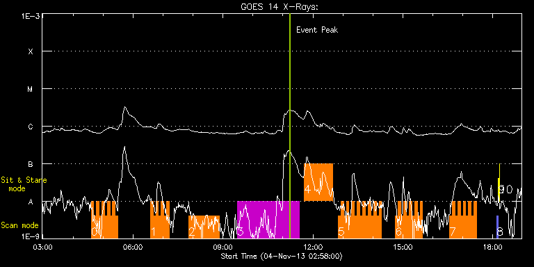 EIS Observation timeline overlay to GOES-Xray curve
