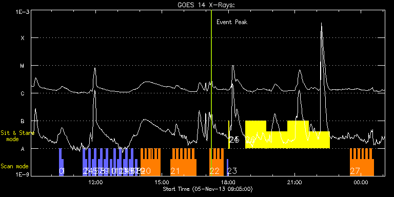 EIS Observation timeline overlay to GOES-Xray curve Code 1" 2" 40" 266" EIS Observations list for this event: STUDY ACRONYM ID DATE OBSERVED DESCRIPTION NOAA# TARGET 0 full_sun_slot_scan_1 | 37198 | 2013/11/05 10:21:20 | HOP130 full_sun_scan #1t | | Quiet Sun TIMELINE ID DATE OBSERVED FITS FILE XCEN (+W/-E) YCEN (+N/-S) DUR ----------------------------------------------------------------------------------------------------------------- 37198 | 2013/11/05 10:21:20.000 | eis_l0_20131105_102120.fits.gz | 920.72 | 185.58 | 5m28s 1 full_sun_slot_scan_1 | 37199 | 2013/11/05 10:26:53 | HOP130 full_sun_scan #1b | 1882 | Quiet Sun TIMELINE ID DATE OBSERVED FITS FILE XCEN (+W/-E) YCEN (+N/-S) DUR ----------------------------------------------------------------------------------------------------------------- 37199 | 2013/11/05 10:26:53.000 | eis_l0_20131105_102653.fits.gz | 920.80 | -286.35 | 5m27s 2 full_sun_slot_scan_1 | 37206 | 2013/11/05 11:25:14 | HOP130 full_sun_scan #5t | | Quiet Sun TIMELINE ID DATE OBSERVED FITS FILE XCEN (+W/-E) YCEN (+N/-S) DUR ----------------------------------------------------------------------------------------------------------------- 37206 | 2013/11/05 11:25:14.000 | eis_l0_20131105_112514.fits.gz | -9884.69 | -9777.20 | 5m27s 3 full_sun_slot_scan_1 | 37207 | 2013/11/05 11:30:46 | HOP130 full_sun_scan #5b | | Quiet Sun TIMELINE ID DATE OBSERVED FITS FILE XCEN (+W/-E) YCEN (+N/-S) DUR ----------------------------------------------------------------------------------------------------------------- 37207 | 2013/11/05 11:30:46.000 | eis_l0_20131105_113046.fits.gz | -9884.69 | -10249.20 | 5m27s 4 full_sun_slot_scan_1 | 37208 | 2013/11/05 11:41:14 | HOP130 full_sun_scan #6 | | Quiet Sun TIMELINE ID DATE OBSERVED FITS FILE XCEN (+W/-E) YCEN (+N/-S) DUR ----------------------------------------------------------------------------------------------------------------- 37208 | 2013/11/05 11:41:14.000 | eis_l0_20131105_114114.fits.gz | 761.05 | 655.55 | 5m27s 5 full_sun_slot_scan_1 | 37209 | 2013/11/05 11:51:14 | HOP130 full_sun_scan #7t | | Quiet Sun TIMELINE ID DATE OBSERVED FITS FILE XCEN (+W/-E) YCEN (+N/-S) DUR ----------------------------------------------------------------------------------------------------------------- 37209 | 2013/11/05 11:51:14.000 | eis_l0_20131105_115114.fits.gz | 395.82 | 1032.75 | 5m27s 6 full_sun_slot_scan_1 | 37210 | 2013/11/05 11:56:46 | HOP130 full_sun_scan #7b | | Quiet Sun TIMELINE ID DATE OBSERVED FITS FILE XCEN (+W/-E) YCEN (+N/-S) DUR ----------------------------------------------------------------------------------------------------------------- 37210 | 2013/11/05 11:56:46.000 | eis_l0_20131105_115646.fits.gz | 395.90 | 560.60 | 5m27s 7 full_sun_slot_scan_1 | 37211 | 2013/11/05 12:07:14 | HOP130 full_sun_scan #8t | | Quiet Sun TIMELINE ID DATE OBSERVED FITS FILE XCEN (+W/-E) YCEN (+N/-S) DUR ----------------------------------------------------------------------------------------------------------------- 37211 | 2013/11/05 12:07:14.000 | eis_l0_20131105_120714.fits.gz | -15.21 | 1126.69 | 5m27s 8 full_sun_slot_scan_1 | 37212 | 2013/11/05 12:12:46 | HOP130 full_sun_scan #8b | | Quiet Sun TIMELINE ID DATE OBSERVED FITS FILE XCEN (+W/-E) YCEN (+N/-S) DUR ----------------------------------------------------------------------------------------------------------------- 37212 | 2013/11/05 12:12:46.000 | eis_l0_20131105_121246.fits.gz | -15.29 | 654.61 | 5m27s 9 full_sun_slot_scan_1 | 37213 | 2013/11/05 12:23:14 | HOP130 full_sun_scan #9t | | Quiet Sun TIMELINE ID DATE OBSERVED FITS FILE XCEN (+W/-E) YCEN (+N/-S) DUR ----------------------------------------------------------------------------------------------------------------- 37213 | 2013/11/05 12:23:14.000 | eis_l0_20131105_122314.fits.gz | -426.15 | 1032.44 | 5m27s 10 full_sun_slot_scan_1 | 37214 | 2013/11/05 12:28:46 | HOP130 full_sun_scan #9b | | Quiet Sun TIMELINE ID DATE OBSERVED FITS FILE XCEN (+W/-E) YCEN (+N/-S) DUR ----------------------------------------------------------------------------------------------------------------- 37214 | 2013/11/05 12:28:46.000 | eis_l0_20131105_122846.fits.gz | -426.08 | 560.52 | 5m27s 11 full_sun_slot_scan_1 | 37215 | 2013/11/05 12:39:14 | HOP130 full_sun_scan #10 | | Quiet Sun TIMELINE ID DATE OBSERVED FITS FILE XCEN (+W/-E) YCEN (+N/-S) DUR ----------------------------------------------------------------------------------------------------------------- 37215 | 2013/11/05 12:39:14.000 | eis_l0_20131105_123914.fits.gz | -830.08 | 655.47 | 5m27s 12 full_sun_slot_scan_1 | 37216 | 2013/11/05 12:49:14 | HOP130 full_sun_scan #11 | | Quiet Sun TIMELINE ID DATE OBSERVED FITS FILE XCEN (+W/-E) YCEN (+N/-S) DUR ----------------------------------------------------------------------------------------------------------------- 37216 | 2013/11/05 12:49:14.000 | eis_l0_20131105_124914.fits.gz | 800.14 | -757.02 | 5m26s 13 full_sun_slot_scan_1 | 37217 | 2013/11/05 12:59:14 | HOP130 full_sun_scan #12t | | Quiet Sun TIMELINE ID DATE OBSERVED FITS FILE XCEN (+W/-E) YCEN (+N/-S) DUR ----------------------------------------------------------------------------------------------------------------- 37217 | 2013/11/05 12:59:14.000 | eis_l0_20131105_125914.fits.gz | 395.82 | -661.44 | 5m27s 14 full_sun_slot_scan_1 | 37218 | 2013/11/05 13:04:46 | HOP130 full_sun_scan #12b | | Quiet Sun TIMELINE ID DATE OBSERVED FITS FILE XCEN (+W/-E) YCEN (+N/-S) DUR ----------------------------------------------------------------------------------------------------------------- 37218 | 2013/11/05 13:04:46.000 | eis_l0_20131105_130446.fits.gz | 395.82 | -1133.52 | 5m27s 15 full_sun_slot_scan_1 | 37219 | 2013/11/05 13:15:14 | HOP130 full_sun_scan #13t | | Quiet Sun TIMELINE ID DATE OBSERVED FITS FILE XCEN (+W/-E) YCEN (+N/-S) DUR ----------------------------------------------------------------------------------------------------------------- 37219 | 2013/11/05 13:15:14.000 | eis_l0_20131105_13