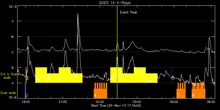 EIS Observation timeline overlay to GOES-Xray curve