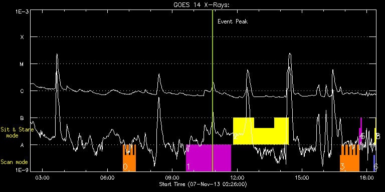 EIS Observation timeline overlay to GOES-Xray curve