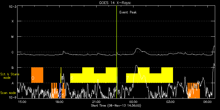 EIS Observation timeline overlay to GOES-Xray curve Code 1" 2" 40" 266" EIS Observations list for this event: STUDY ACRONYM ID DATE OBSERVED DESCRIPTION NOAA# TARGET 0 FLAREDOP_EIS | 37291 | 2013/11/08 15:44:49 | AR 11890 obs | | Flare TIMELINE ID DATE OBSERVED FITS FILE XCEN (+W/-E) YCEN (+N/-S) DUR ----------------------------------------------------------------------------------------------------------------- 37291 | 2013/11/08 15:44:49.000 | eis_l0_20131108_154449.fits.gz | -75.76 | -252.10 | 55m52s 1 HH_Flare+AR_180x152 | 37289 | 2013/11/08 17:21:40 | AR 11890 obs | | Flare TIMELINE ID DATE OBSERVED FITS FILE XCEN (+W/-E) YCEN (+N/-S) DUR ----------------------------------------------------------------------------------------------------------------- 37289 | 2013/11/08 17:21:40.000 | eis_l0_20131108_172140.fits.gz | -63.00 | -253.56 | 5m18s 37289 | 2013/11/08 17:27:01.000 | eis_l0_20131108_172701.fits.gz | -62.15 | -253.33 | 5m18s 37289 | 2013/11/08 17:32:22.000 | eis_l0_20131108_173222.fits.gz | -61.22 | -253.49 | 5m18s 37289 | 2013/11/08 17:37:43.000 | eis_l0_20131108_173743.fits.gz | -60.52 | -253.49 | 5m18s 37289 | 2013/11/08 17:43:04.000 | eis_l0_20131108_174304.fits.gz | -59.75 | -253.41 | 5m17s 37289 | 2013/11/08 17:48:24.000 | eis_l0_20131108_174824.fits.gz | -58.90 | -253.41 | 5m17s 2 PRY_slot_contextLITE | 37272 | 2013/11/08 18:02:20 | EIS-AIA alignment | | Active Region TIMELINE ID DATE OBSERVED FITS FILE XCEN (+W/-E) YCEN (+N/-S) DUR ----------------------------------------------------------------------------------------------------------------- 37272 | 2013/11/08 18:02:20.000 | eis_l0_20131108_180220.fits.gz | -15.14 | -0.27 | 2m56s 3 Alignment_266 | 37273 | 2013/11/08 18:05:34 | EIS-AIA alignment | 1890 | Quiet Sun TIMELINE ID DATE OBSERVED FITS FILE XCEN (+W/-E) YCEN (+N/-S) DUR ----------------------------------------------------------------------------------------------------------------- 37273 | 2013/11/08 18:05:34.000 | eis_l0_20131108_180534.fits.gz | -132.49 | -0.50 | 1m22s 4 XRT_synop_AIA | 37274 | 2013/11/08 18:08:08 | EIS-AIA alignment | 1890 | Quiet Sun TIMELINE ID DATE OBSERVED FITS FILE XCEN (+W/-E) YCEN (+N/-S) DUR ----------------------------------------------------------------------------------------------------------------- 37274 | 2013/11/08 18:08:08.000 | eis_l0_20131108_180808.fits.gz | -132.57 | -0.35 | 11s 5 HH_Flare+AR_180x152 | 37290 | 2013/11/08 18:12:19 | AR 11890 obs | | Flare TIMELINE ID DATE OBSERVED FITS FILE XCEN (+W/-E) YCEN (+N/-S) DUR ----------------------------------------------------------------------------------------------------------------- 37290 | 2013/11/08 18:12:19.000 | eis_l0_20131108_181219.fits.gz | -55.27 | -253.41 | 5m18s 37290 | 2013/11/08 18:17:39.000 | eis_l0_20131108_181739.fits.gz | -54.50 | -253.18 | 5m18s 37290 | 2013/11/08 18:22:59.000 | eis_l0_20131108_182259.fits.gz | -53.73 | -253.33 | 5m18s 6 Flare266_Hunter01 | 37297 | 2013/11/08 18:53:59 | AR 11890 obs (EIS-FT) | 1890 | Flare TIMELINE ID DATE OBSERVED FITS FILE XCEN (+W/-E) YCEN (+N/-S) DUR ----------------------------------------------------------------------------------------------------------------- 37297 | 2013/11/08 18:53:59.000 | eis_l0_20131108_185359.fits.gz | -178.88 | -253.41 | 56m22s 37297 | 2013/11/08 19:51:13.000 | eis_l0_20131108_195113.fits.gz | -170.15 | -253.33 | 56m23s 37297 | 2013/11/08 20:48:28.000 | eis_l0_20131108_204828.fits.gz | -161.57 | -253.25 | 56m22s 37297 | 2013/11/08 21:45:42.000 | eis_l0_20131108_214542.fits.gz | -152.85 | -253.18 | 56m23s 7 Flare266_Hunter01 | 37298 | 2013/11/08 23:24:00 | AR 11890 obs (EIS-FT) | 1890 | Flare TIMELINE ID DATE OBSERVED FITS FILE XCEN (+W/-E) YCEN (+N/-S) DUR ----------------------------------------------------------------------------------------------------------------- 37298 | 2013/11/08 23:24:00.000 | eis_l0_20131108_232400.fits.gz | -137.86 | -252.94 | 56m22s 37298 | 2013/11/09 00:21:14.000 | eis_l0_20131109_002114.fits.gz | -129.13 | -253.10 | 56m23s 37298 | 2013/11/09 01:18:29.000 | eis_l0_20131109_011829.fits.gz | -120.40 | -252.87 | 56m22s 37298 | 2013/11/09 02:15:43.000 | eis_l0_20131109_021543.fits.gz | -111.60 | -252.94 | 56m23s 8 HH_Flare_162x152 | 37292 | 2013/11/09 04:23:49 | AR 11890 obs | 1890 | Flare TIMELINE ID DATE OBSERVED FITS FILE XCEN (+W/-E) YCEN (+N/-S) DUR ----------------------------------------------------------------------------------------------------------------- 37292 | 2013/11/09 04:23:49.000 | eis_l0_20131109_042349.fits.gz | 32.07 | -251.56 | 4m10s 37292 | 2013/11/09 04:28:02.000 | eis_l0_20131109_042802.fits.gz | 32.77 | -251.71 | 4m11s 37292 | 2013/11/09 04:32:15.000 | eis_l0_20131109_043215.fits.gz | 33.38 | -251.56 | 4m11s 37292 | 2013/11/09 04:36:29.000 | eis_l0_20131109_043629.fits.gz | 34.16 | -251.79 | 4m10s 37292 | 2013/11/09 04:40:42.000 | eis_l0_20131109_044042.fits.gz | 34.77 | -251.63 | 4m11s 37292 | 2013/11/09 04:44:56.000 | eis_l0_20131109_044456.fits.gz | 35.32 | -251.71 | 4m10s 37292 | 2013/11/09 04:49:09.000 | eis_l0_20131109_044909.fits.gz | 36.01 | -251.63 | 4m11s 37292 | 2013/11/09 04:53:22.000 | eis_l0_20131109_045322.fits.gz | 36.71 | -251.79 | 4m11s 37292 | 2013/11/09 04:57:36.000 | eis_l0_20131109_045736.fits.gz | 37.25 | -251.71 | 4m11s 37292 | 2013/11/09 05:01:50.000 | eis_l0_20131109_050150.fits.gz | 37.86 | -251.71 | 4m10s 37292 | 2013/11/09 05:06:03.000 | eis_l0_20131109_050603.fits.gz | 38.71 | -251.71 | 4m10s 37292 | 2013/11/09 05:10:16.000 | eis_l0_20131109_051016.fits.gz | 39.26 | -251.79 | 4m11s 37292 | 2013/11/09 05:14:30.000 | eis_l0_20131109_051430.fits.gz | 39.87 | -251.71 | 4m10s 37292 | 2013/11/09 05:18:43.000 | eis_l0_20131109_051843.fits.gz | 40.49 | -251.56 | 4m10s : Check study information : Download file : View thumbnails For this event, also check for: