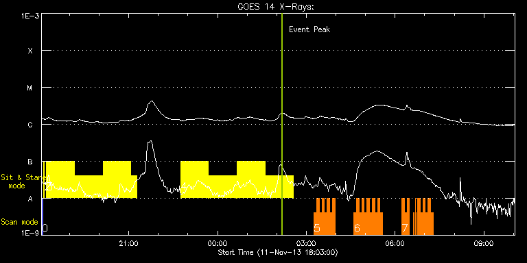 EIS Observation timeline overlay to GOES-Xray curve Code 1" 2" 40" 266" EIS Observations list for this event: STUDY ACRONYM ID DATE OBSERVED DESCRIPTION NOAA# TARGET 0 PRY_slot_contextLITE | 37312 | 2013/11/11 18:03:19 | EIS-AIA alignment | | Active Region TIMELINE ID DATE OBSERVED FITS FILE XCEN (+W/-E) YCEN (+N/-S) DUR ----------------------------------------------------------------------------------------------------------------- 37312 | 2013/11/11 18:03:19.000 | eis_l0_20131111_180319.fits.gz | -15.14 | -0.58 | 2m57s 1 Alignment_266 | 37313 | 2013/11/11 18:06:34 | EIS-AIA alignment | | Quiet Sun TIMELINE ID DATE OBSERVED FITS FILE XCEN (+W/-E) YCEN (+N/-S) DUR ----------------------------------------------------------------------------------------------------------------- 37313 | 2013/11/11 18:06:34.000 | eis_l0_20131111_180634.fits.gz | -132.49 | -0.50 | 1m22s 2 XRT_synop_AIA | 37314 | 2013/11/11 18:08:41 | EIS-AIA alignment | | Quiet Sun TIMELINE ID DATE OBSERVED FITS FILE XCEN (+W/-E) YCEN (+N/-S) DUR ----------------------------------------------------------------------------------------------------------------- 37314 | 2013/11/11 18:08:41.000 | eis_l0_20131111_180841.fits.gz | -132.49 | -0.35 | 10s 3 Flare266_Hunter01 | 37333 | 2013/11/11 18:13:13 | AR 11890 obs (EIS-FT) | 1890 | Flare TIMELINE ID DATE OBSERVED FITS FILE XCEN (+W/-E) YCEN (+N/-S) DUR ----------------------------------------------------------------------------------------------------------------- 37333 | 2013/11/11 18:13:13.000 | eis_l0_20131111_181313.fits.gz | 395.27 | -267.93 | 56m22s 37333 | 2013/11/11 19:10:28.000 | eis_l0_20131111_191028.fits.gz | 402.38 | -267.55 | 56m22s 37333 | 2013/11/11 20:07:42.000 | eis_l0_20131111_200742.fits.gz | 409.56 | -267.16 | 56m22s 37333 | 2013/11/11 21:04:56.000 | eis_l0_20131111_210456.fits.gz | 416.67 | -266.77 | 11m33s 4 Flare266_Hunter01 | 37334 | 2013/11/11 22:45:12 | AR 11890 obs (EIS-FT) | 1890 | Flare TIMELINE ID DATE OBSERVED FITS FILE XCEN (+W/-E) YCEN (+N/-S) DUR ----------------------------------------------------------------------------------------------------------------- 37334 | 2013/11/11 22:45:12.000 | eis_l0_20131111_224512.fits.gz | 428.95 | -266.15 | 56m23s 37334 | 2013/11/11 23:42:27.000 | eis_l0_20131111_234227.fits.gz | -10002.00 | -9963.20 | 56m22s 37334 | 2013/11/12 00:39:41.000 | eis_l0_20131112_003941.fits.gz | -10002.00 | -9963.20 | 56m23s 37334 | 2013/11/12 01:36:56.000 | eis_l0_20131112_013656.fits.gz | -10002.00 | -9963.20 | 56m22s 5 HH_Flare+AR_180x152 | 37342 | 2013/11/12 03:15:19 | AR11890 obs | 1890 | Flare TIMELINE ID DATE OBSERVED FITS FILE XCEN (+W/-E) YCEN (+N/-S) DUR ----------------------------------------------------------------------------------------------------------------- 37342 | 2013/11/12 03:15:19.000 | eis_l0_20131112_031519.fits.gz | -9871.70 | -9963.20 | 5m17s 37342 | 2013/11/12 03:20:39.000 | eis_l0_20131112_032039.fits.gz | -9871.70 | -9963.20 | 5m19s 37342 | 2013/11/12 03:26:00.000 | eis_l0_20131112_032600.fits.gz | -9871.70 | -9963.20 | 5m18s 37342 | 2013/11/12 03:31:21.000 | eis_l0_20131112_033121.fits.gz | -9871.70 | -9963.20 | 5m18s 37342 | 2013/11/12 03:36:42.000 | eis_l0_20131112_033642.fits.gz | -9871.70 | -9963.20 | 5m18s 37342 | 2013/11/12 03:42:03.000 | eis_l0_20131112_034203.fits.gz | -9871.70 | -9963.20 | 5m17s 37342 | 2013/11/12 03:47:23.000 | eis_l0_20131112_034723.fits.gz | -9871.70 | -9963.20 | 5m18s 37342 | 2013/11/12 03:52:43.000 | eis_l0_20131112_035243.fits.gz | -9871.70 | -9963.20 | 5m18s 6 HH_Flare+AR_180x152 | 37343 | 2013/11/12 04:36:09 | AR11890 obs | 1890 | Flare TIMELINE ID DATE OBSERVED FITS FILE XCEN (+W/-E) YCEN (+N/-S) DUR ----------------------------------------------------------------------------------------------------------------- 37343 | 2013/11/12 04:36:09.000 | eis_l0_20131112_043609.fits.gz | -9871.70 | -9963.20 | 5m19s 37343 | 2013/11/12 04:41:31.000 | eis_l0_20131112_044131.fits.gz | -9871.70 | -9963.20 | 5m17s 37343 | 2013/11/12 04:46:51.000 | eis_l0_20131112_044651.fits.gz | -9871.70 | -9963.20 | 5m17s 37343 | 2013/11/12 04:52:11.000 | eis_l0_20131112_045211.fits.gz | -9871.70 | -9963.20 | 5m18s 37343 | 2013/11/12 04:57:32.000 | eis_l0_20131112_045732.fits.gz | -9871.70 | -9963.20 | 5m18s 37343 | 2013/11/12 05:02:52.000 | eis_l0_20131112_050252.fits.gz | -9871.70 | -9963.20 | 5m18s 37343 | 2013/11/12 05:08:13.000 | eis_l0_20131112_050813.fits.gz | -9871.70 | -9963.20 | 5m17s 37343 | 2013/11/12 05:13:33.000 | eis_l0_20131112_051333.fits.gz | -9871.70 | -9963.20 | 5m18s 37343 | 2013/11/12 05:18:54.000 | eis_l0_20131112_051854.fits.gz | -9871.70 | -9963.20 | 5m18s 37343 | 2013/11/12 05:24:14.000 | eis_l0_20131112_052414.fits.gz | -9871.70 | -9963.20 | 5m18s 37343 | 2013/11/12 05:29:35.000 | eis_l0_20131112_052935.fits.gz | -9871.70 | -9963.20 | 5m19s 7 HH_Flare+AR_180x152 | 37344 | 2013/11/12 06:13:12 | AR11890 obs | 1890 | Flare TIMELINE ID DATE OBSERVED FITS FILE XCEN (+W/-E) YCEN (+N/-S) DUR ----------------------------------------------------------------------------------------------------------------- 37344 | 2013/11/12 06:13:12.000 | eis_l0_20131112_061312.fits.gz | -9871.70 | -9963.20 | 5m18s 37344 | 2013/11/12 06:18:33.000 | eis_l0_20131112_061833.fits.gz | -9871.70 | -9963.20 | 5m19s 37344 | 2013/11/12 06:23:54.000 | eis_l0_20131112_062354.fits.gz | -9871.70 | -9963.20 | 4m46s 37344 | 2013/11/12 06:36:43.000 | eis_l0_20131112_063643.fits.gz | -9871.70 | -9963.20 | 2m7s 37344 | 2013/11/12 06:40:39.000 | eis_l0_20131112_064039.fits.gz | -9871.70 | -9963.20 | 9s 37344 | 2013/11/12 06:41:11.000 | eis_l0_20131112_064111.fits.gz | -9871.70 | -9963.20 | 1m34s 37344 | 2013/11/12 06:45:29.000 | eis_l0_20131112_064529.fits.gz | -9871.70 | -9963.20 | 5m7s 37344 | 2013/11/12 06:50:39.000 | eis_l0_20131112_065039.fits.gz | -9871.70 | -9963.20 | 5m17s 37344 | 2013/11/12 06:55:59.000 | eis_l0_20131112_065559.fits.gz | -9871.70 | -9963.20 | 5m18s 37344 | 2013/11/12 07:01:19.000 | eis_l0_